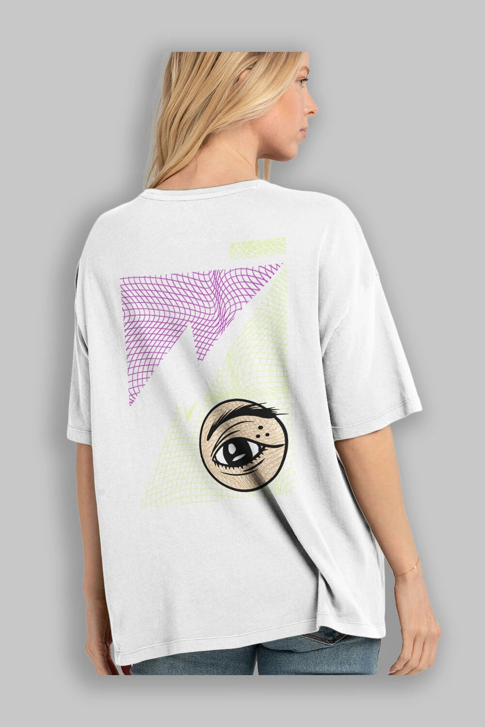 Hem erkekler hem de kadınlar için uygun, taze, modern bir baskıya sahip baskılı oversize t-shirt.