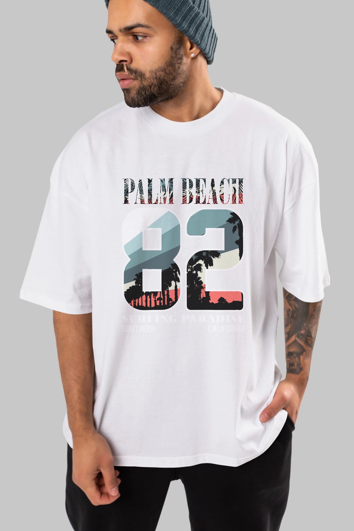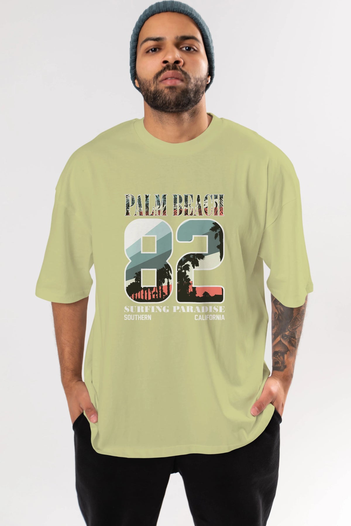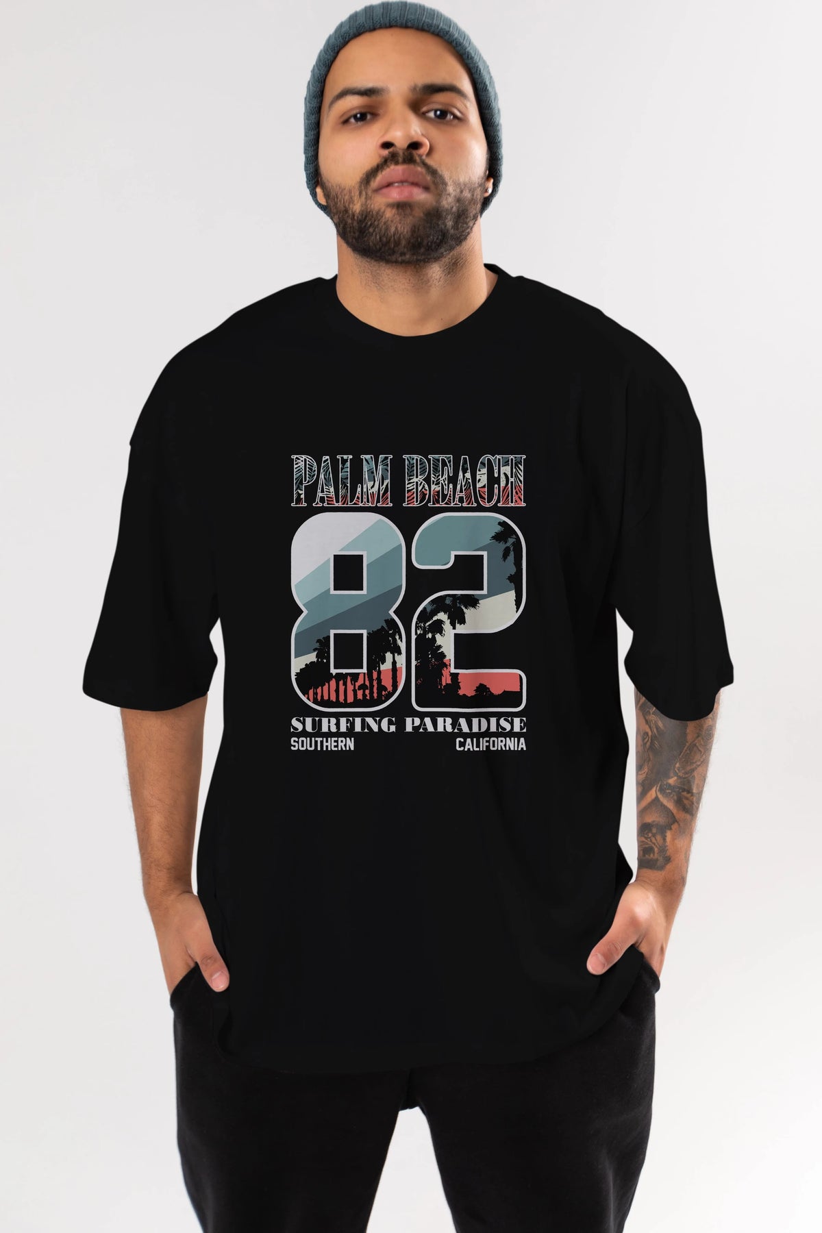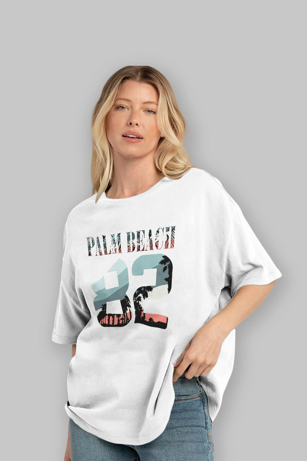 Palm Beach 82 Ön Baskılı Oversize t-shirt Erkek Kadın Unisex
