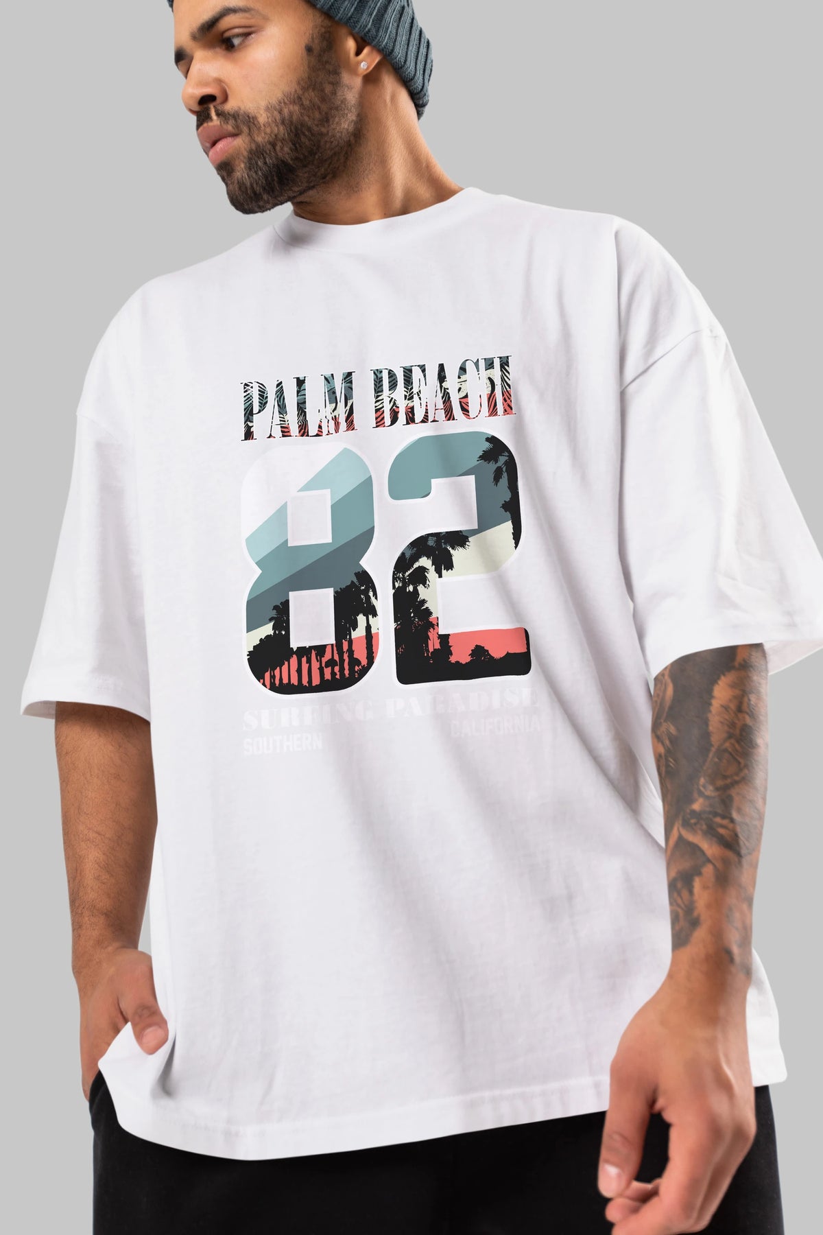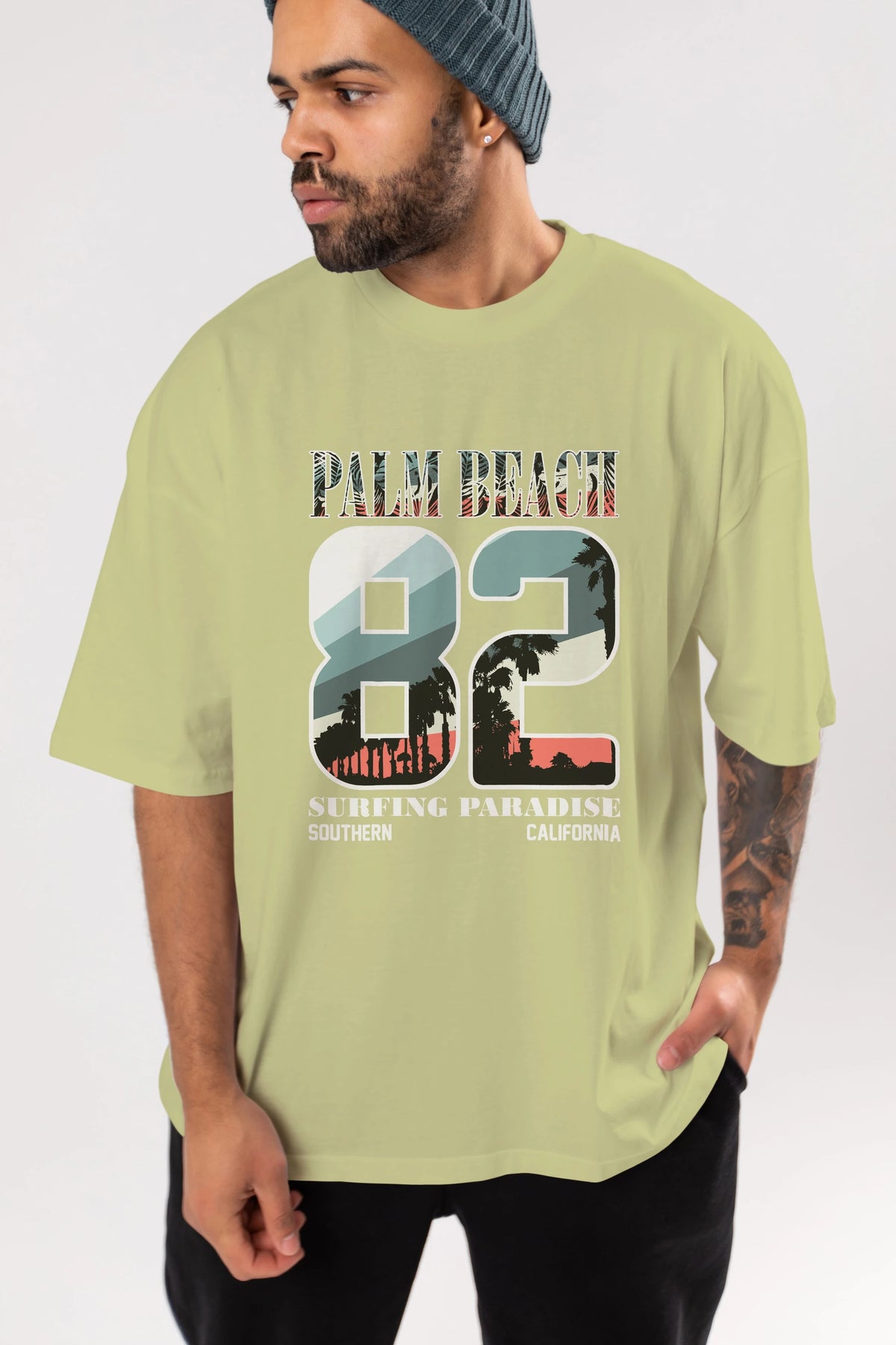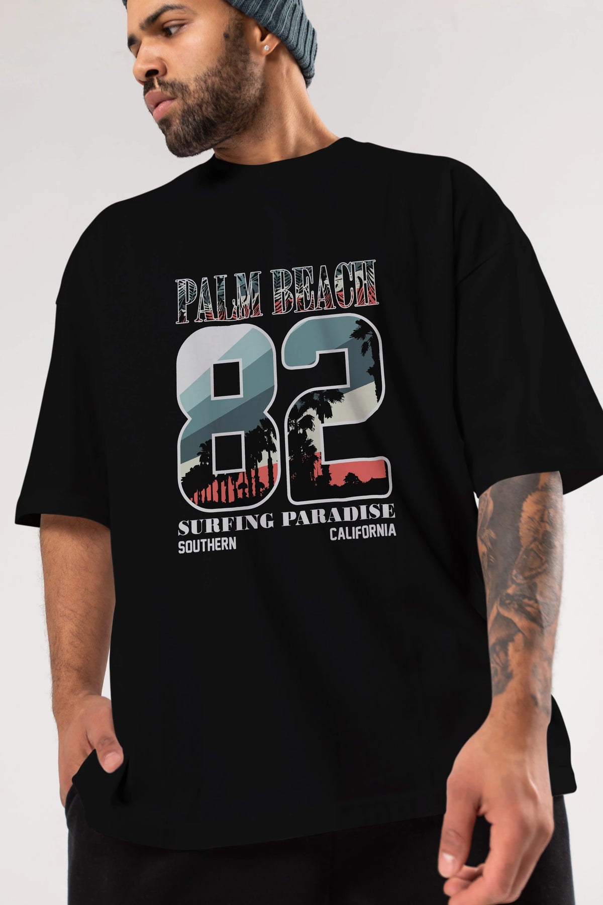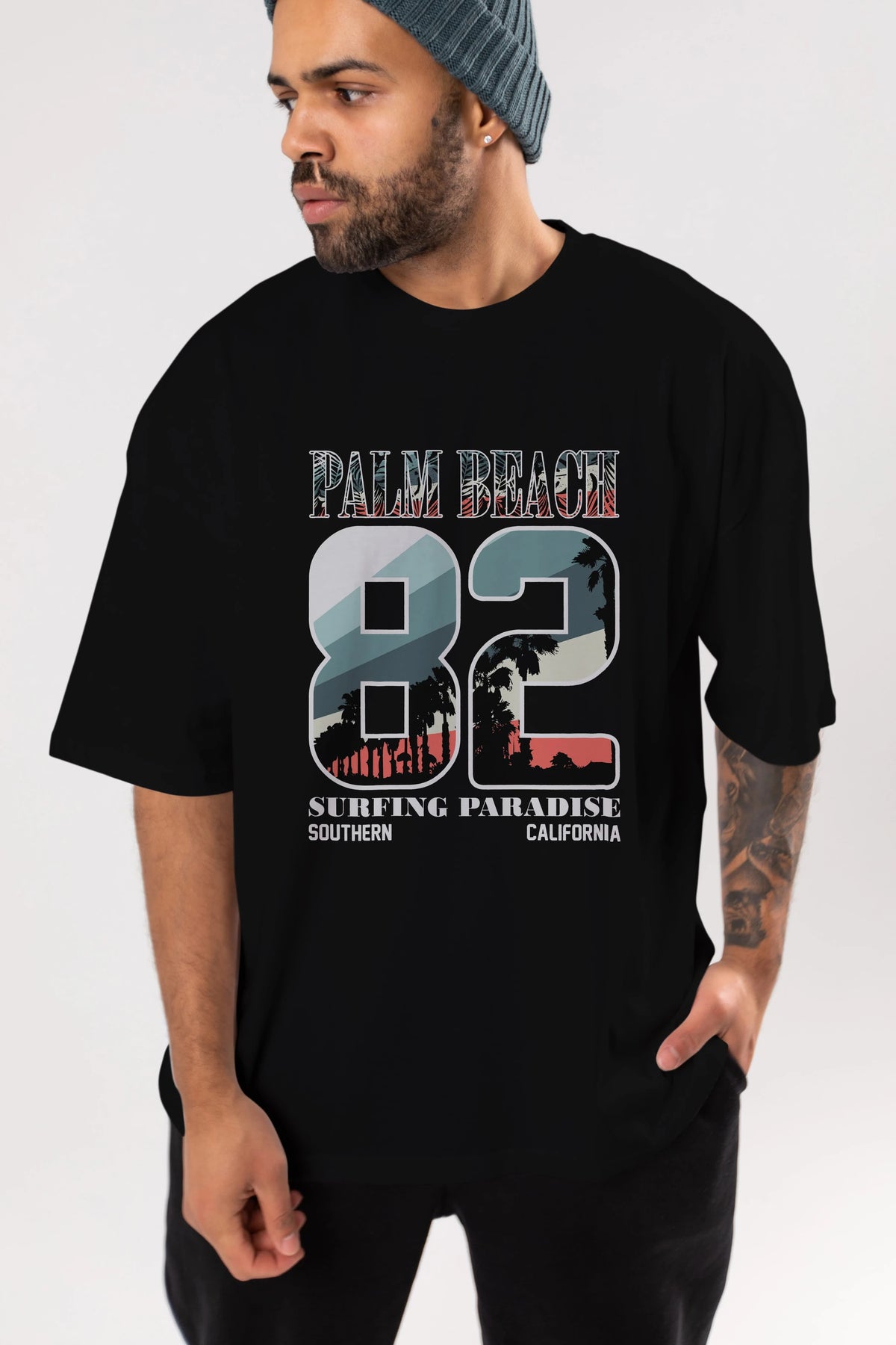 Palm Beach 82 Ön Baskılı Oversize t-shirt Erkek Kadın Unisex