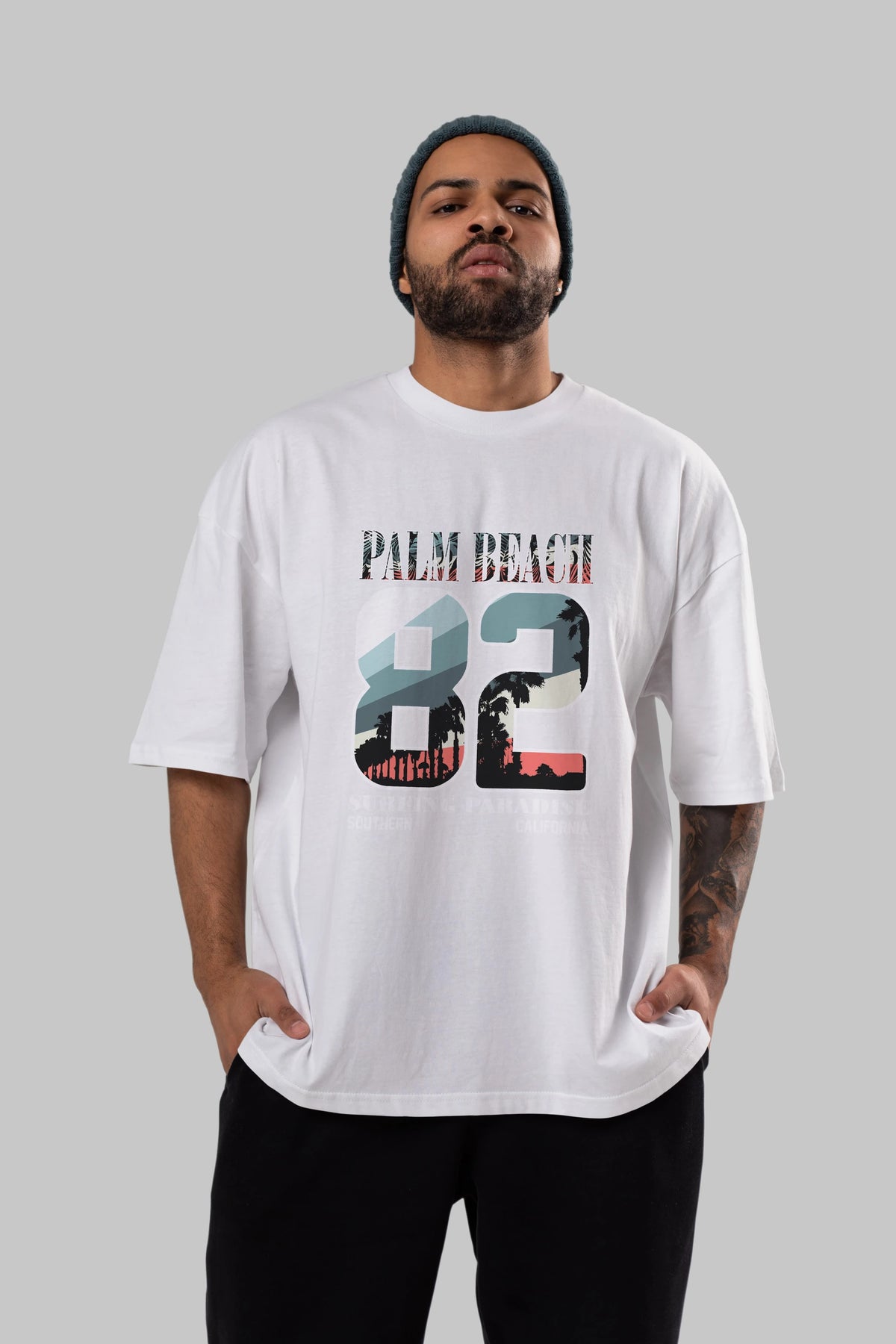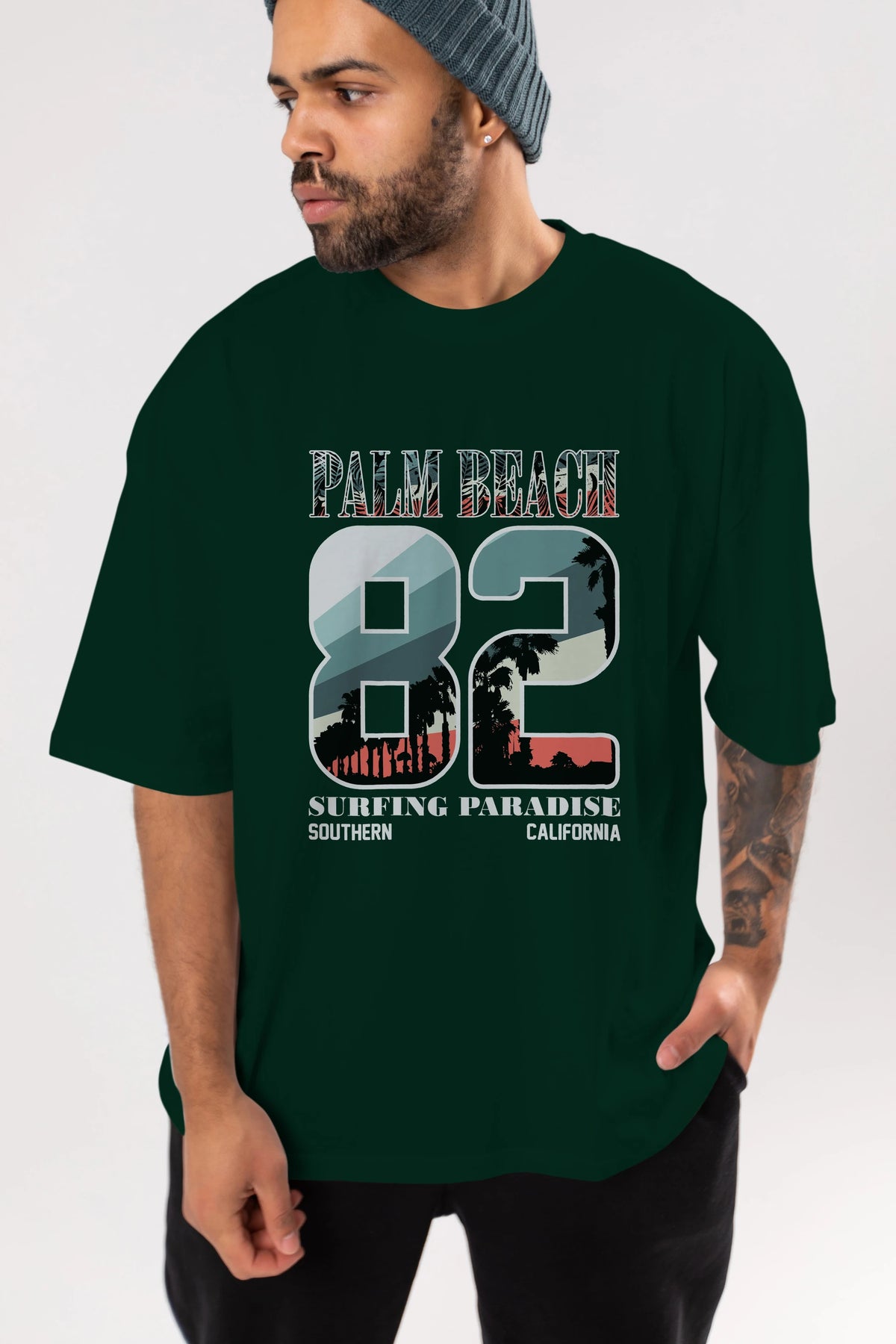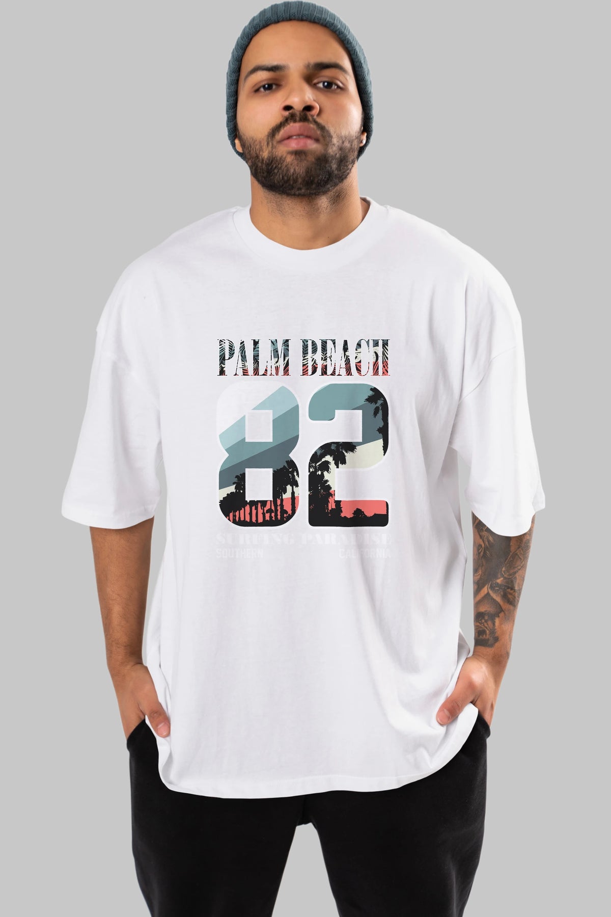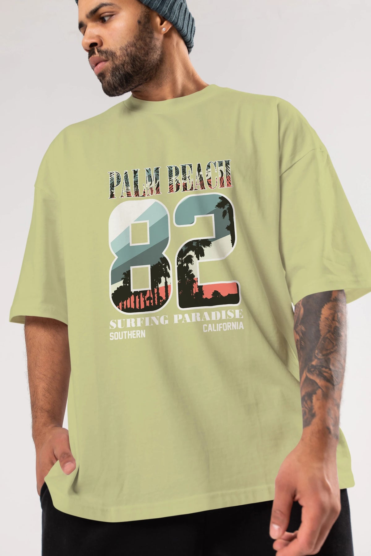 Palm Beach 82 Ön Baskılı Oversize t-shirt Erkek Kadın Unisex