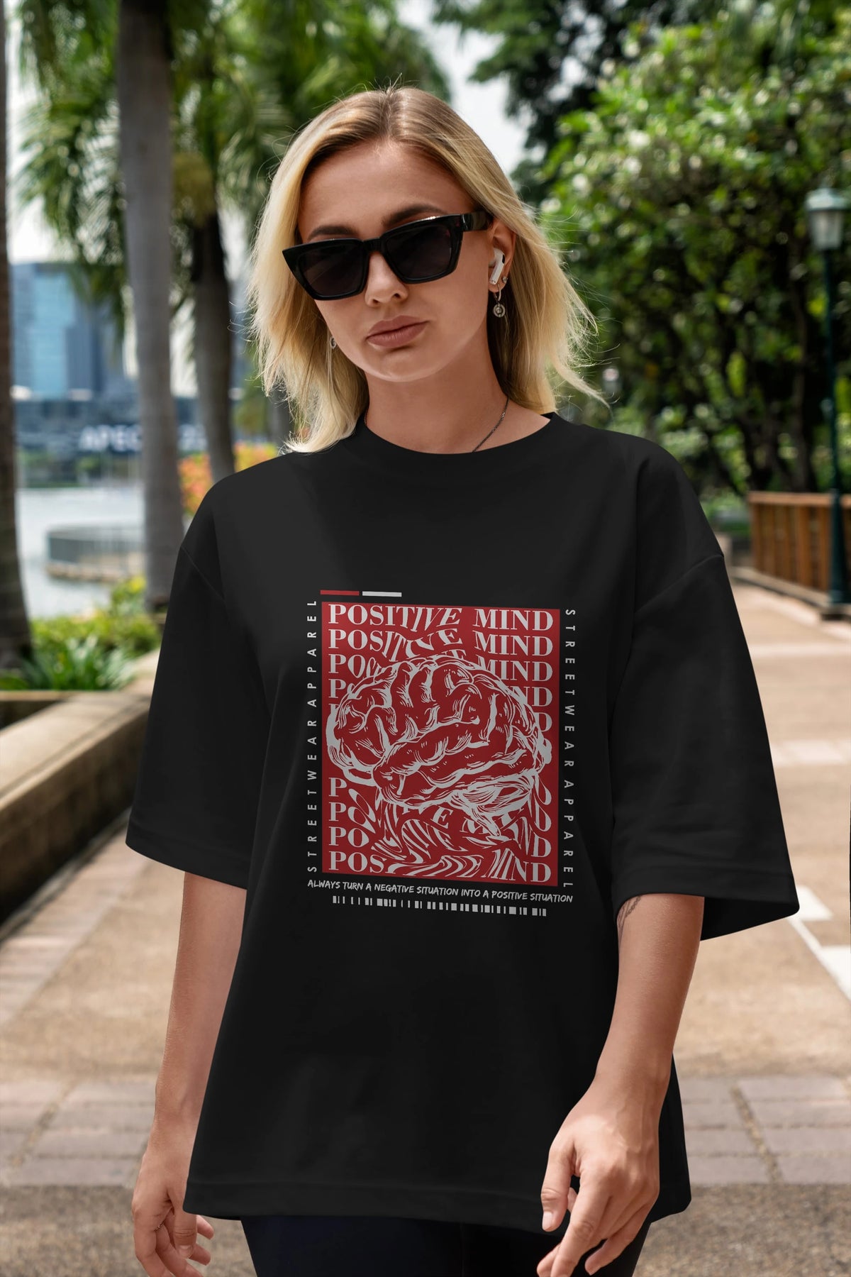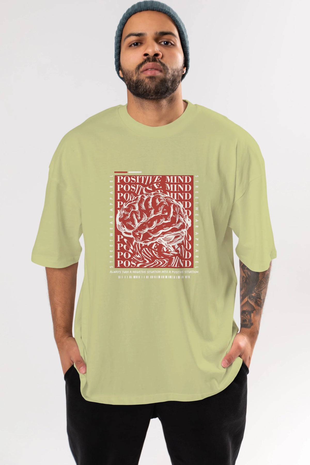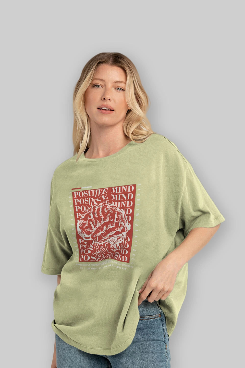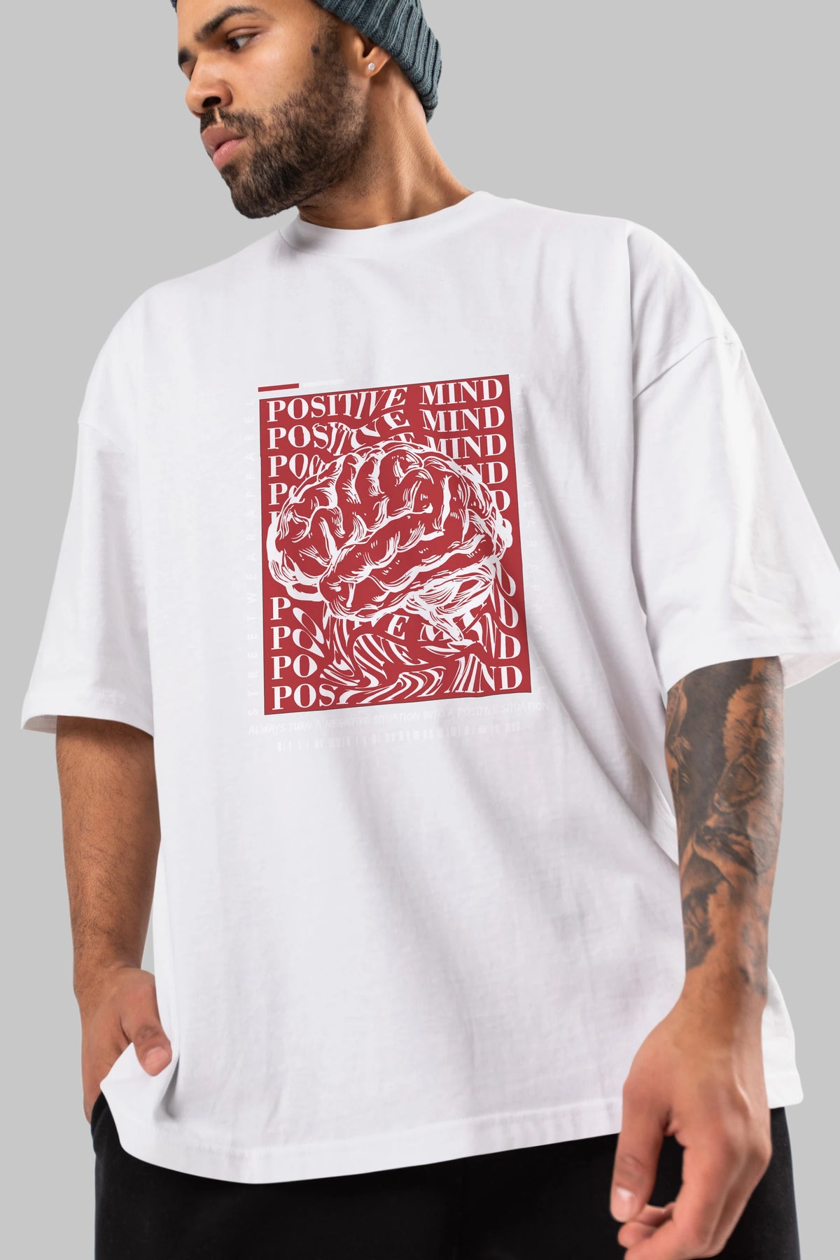 Positive Mind Ön Baskılı Oversize t-shirt Erkek Kadın Unisex