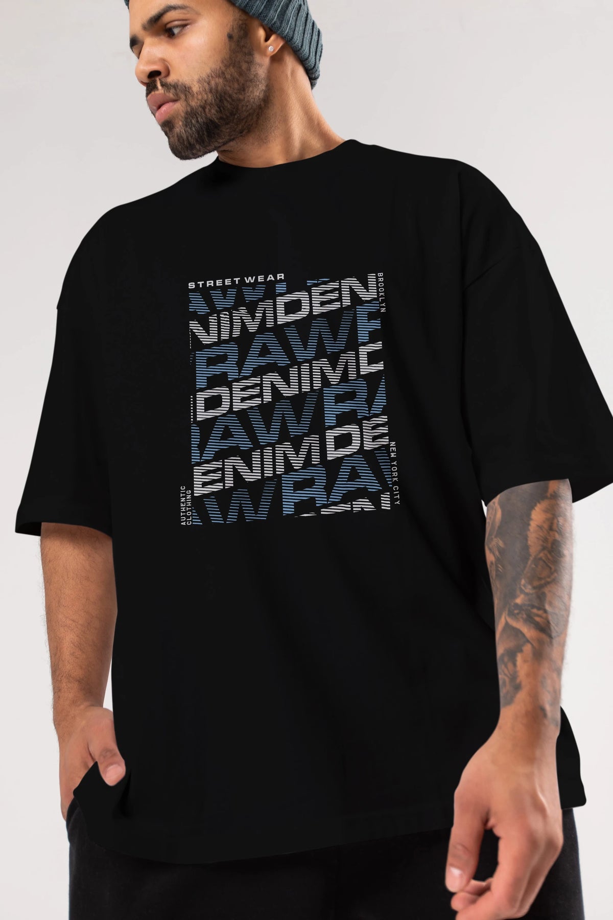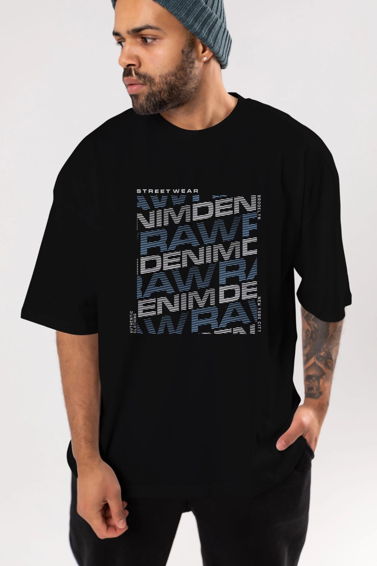Raw Denim Ön Baskılı Oversize t-shirt Erkek Kadın Unisex
