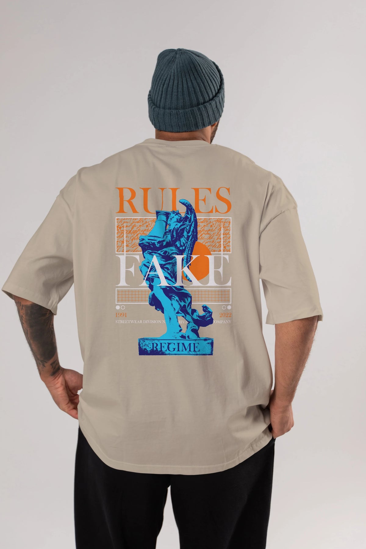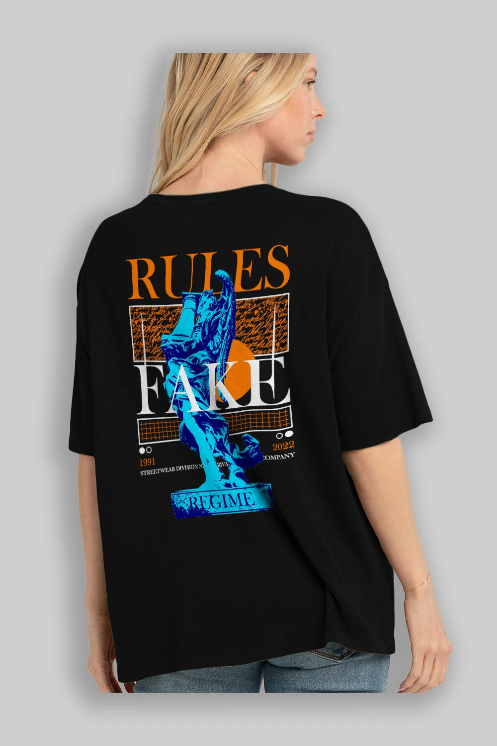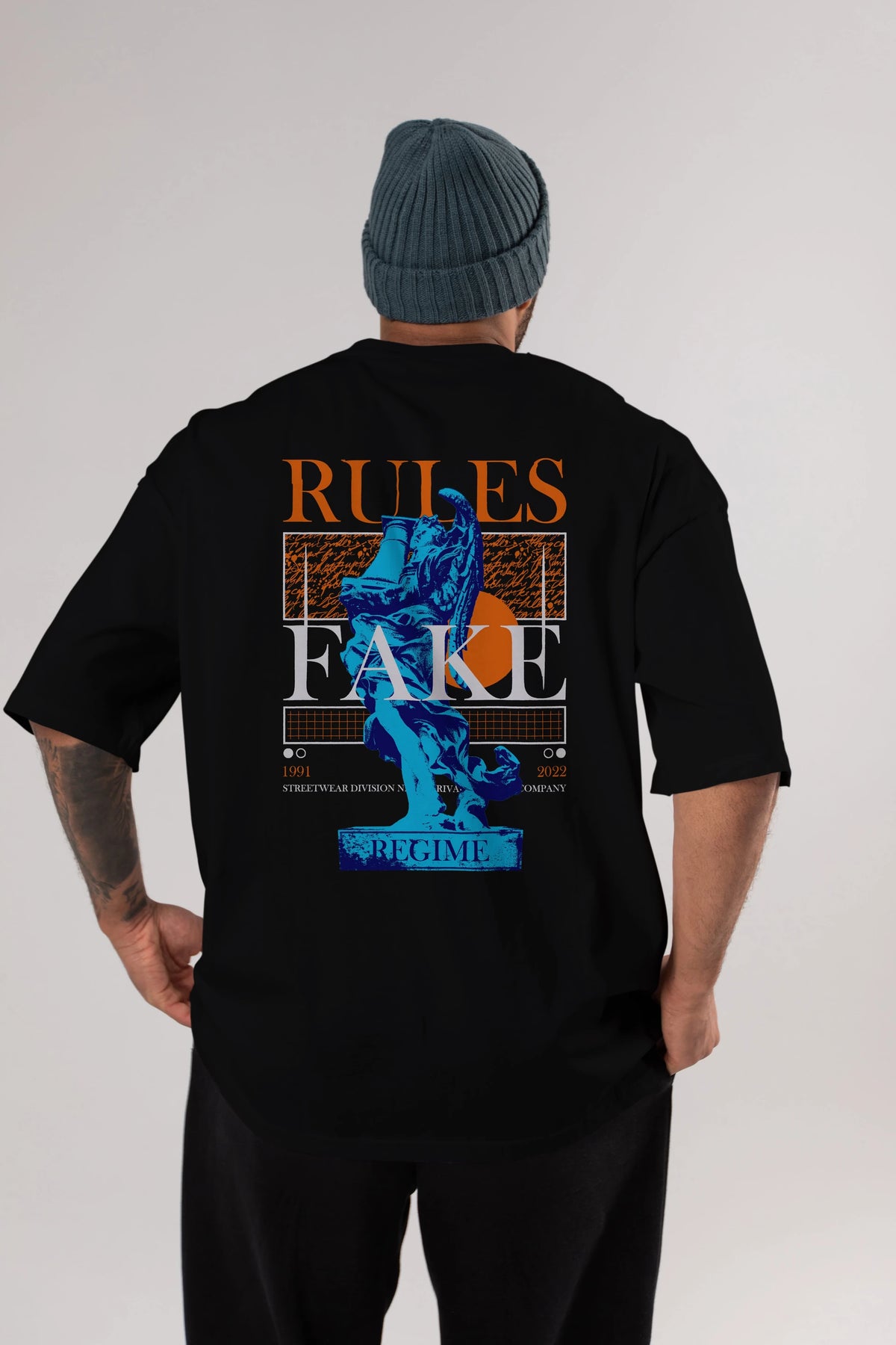 Rules Fake Arka Baskılı Oversize t-shirt Erkek Kadın Unisex