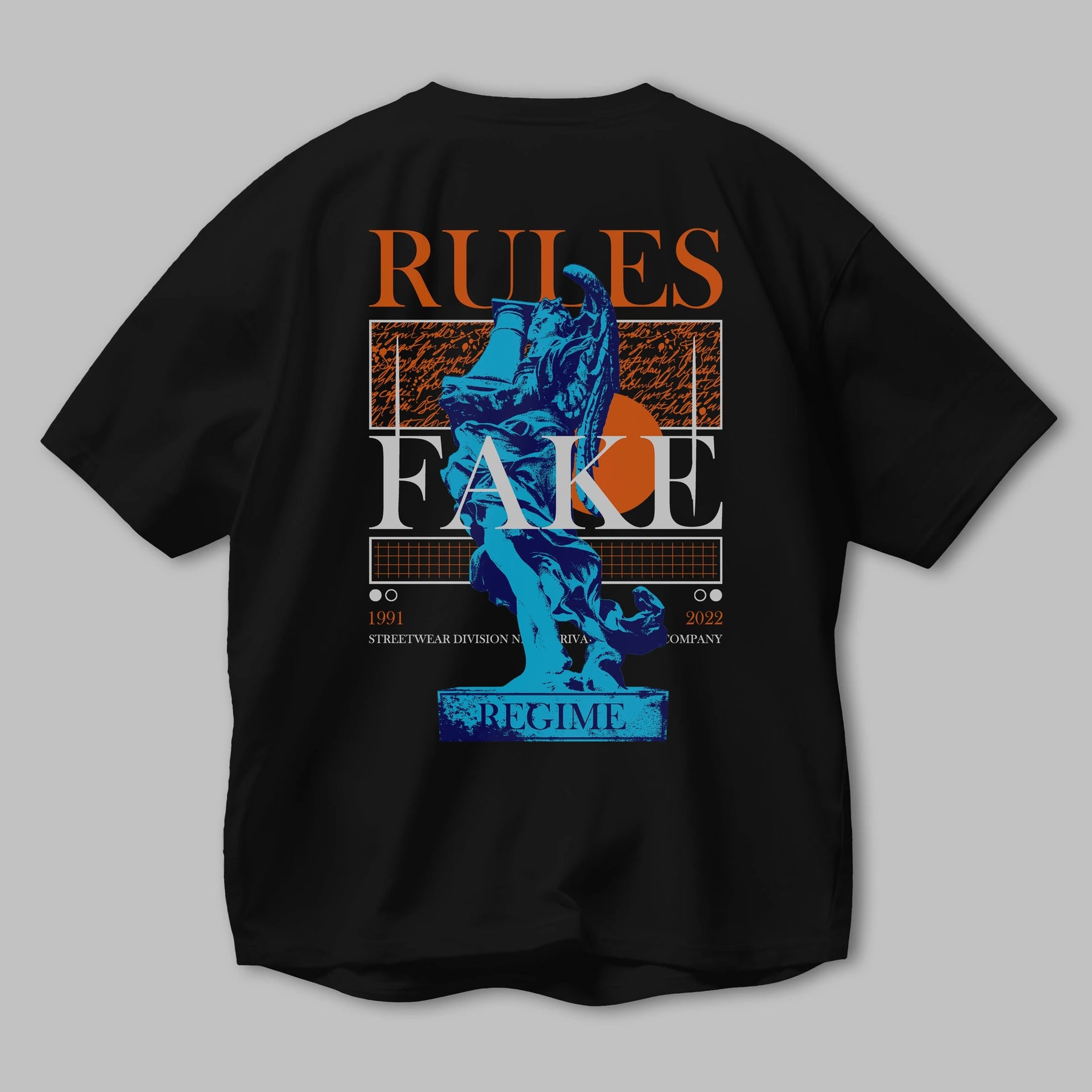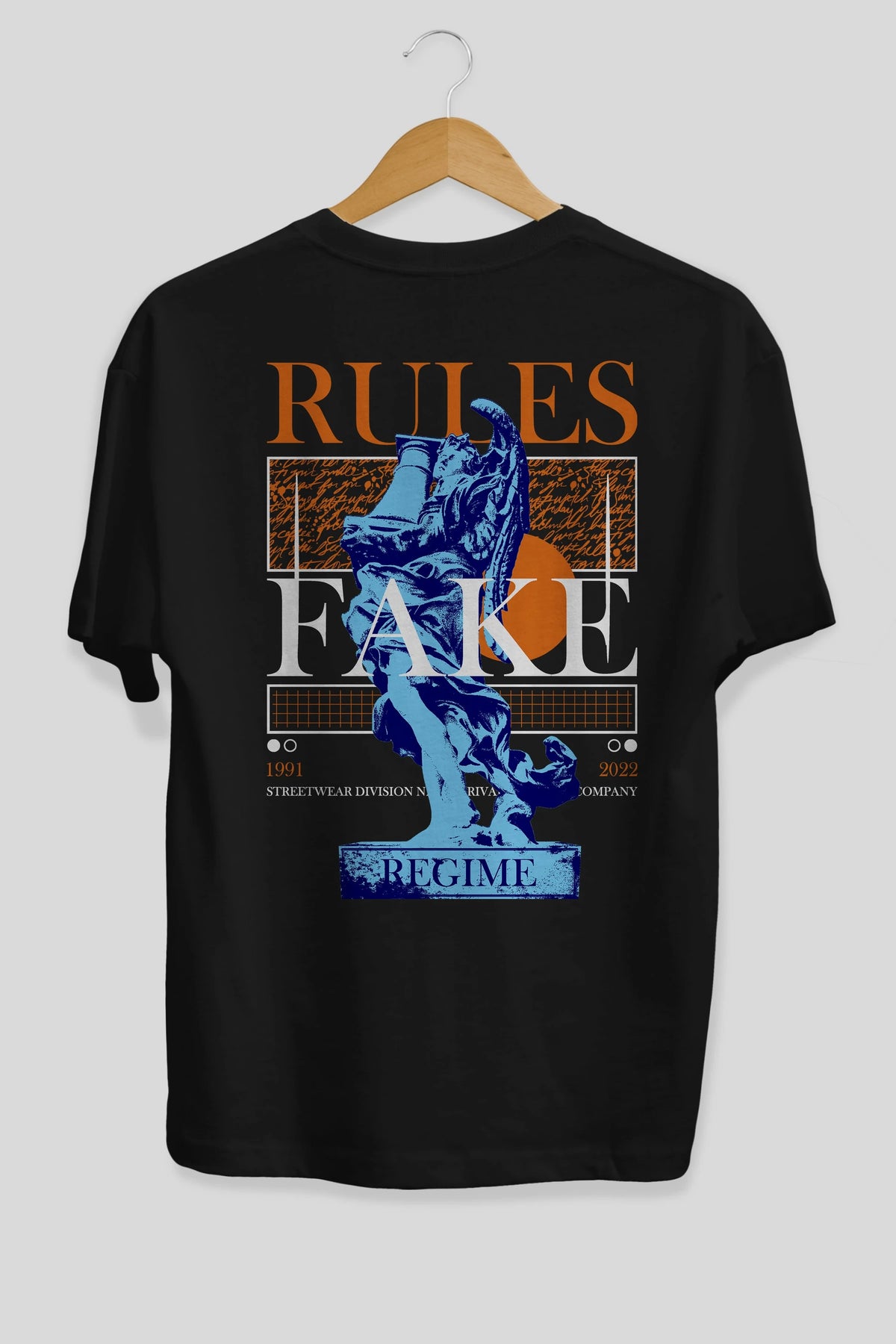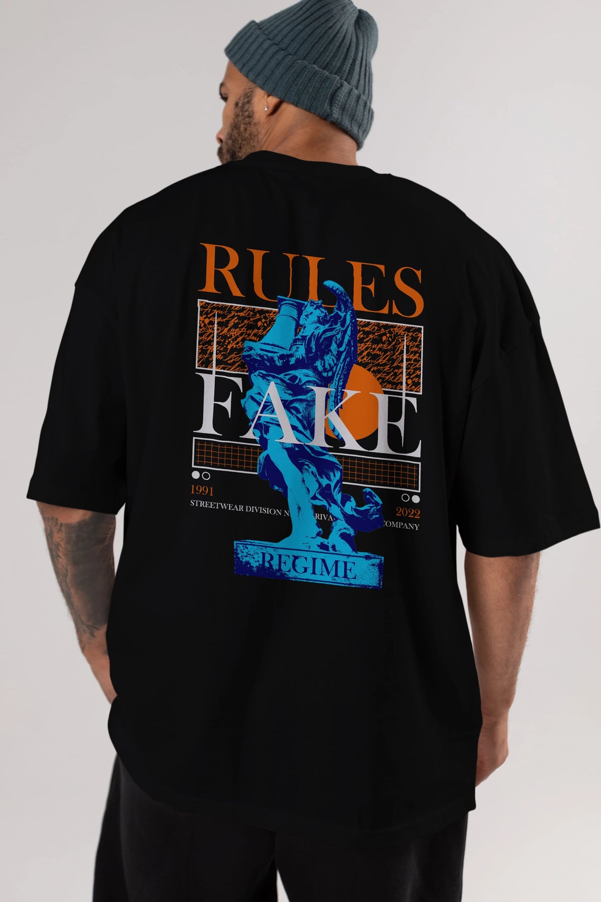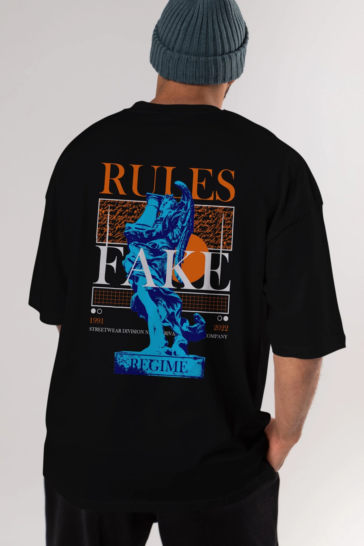 Rules Fake Arka Baskılı Oversize t-shirt Erkek Kadın Unisex