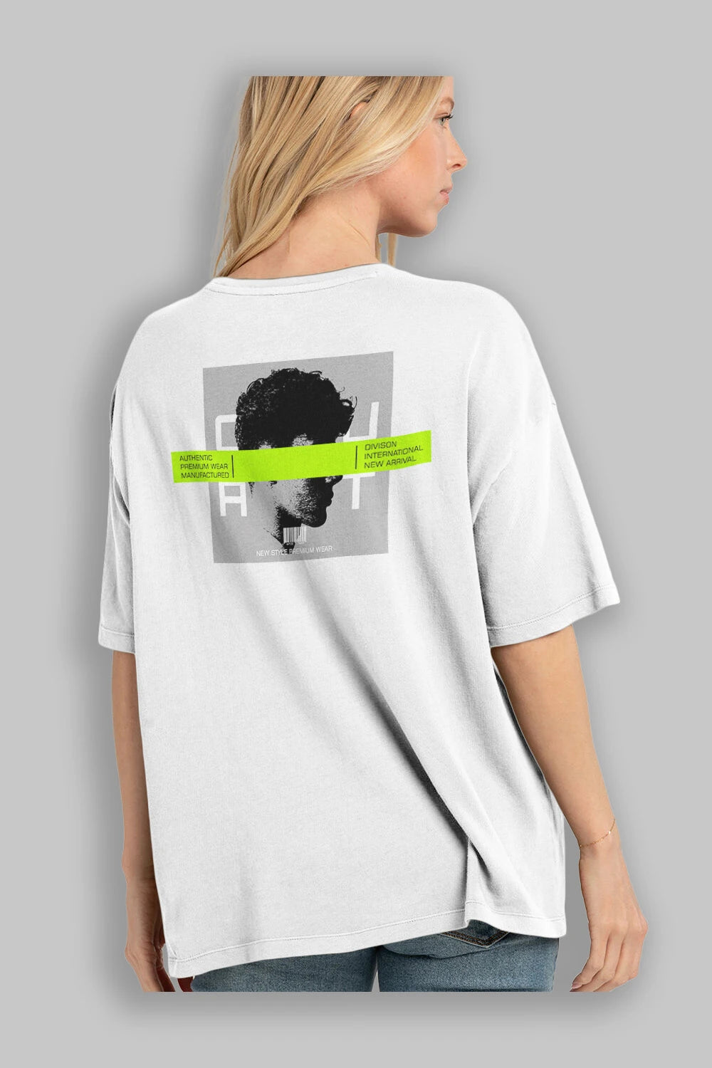 Hem erkekler hem de kadınlar için uygun, taze, modern bir baskıya sahip baskılı oversize t-shirt.