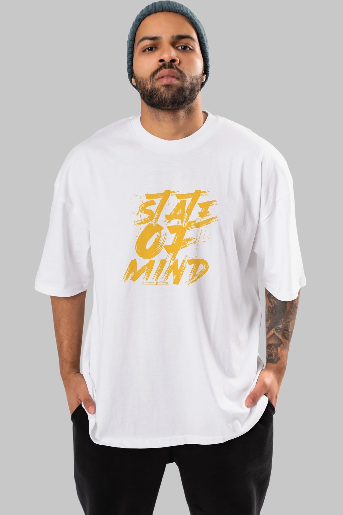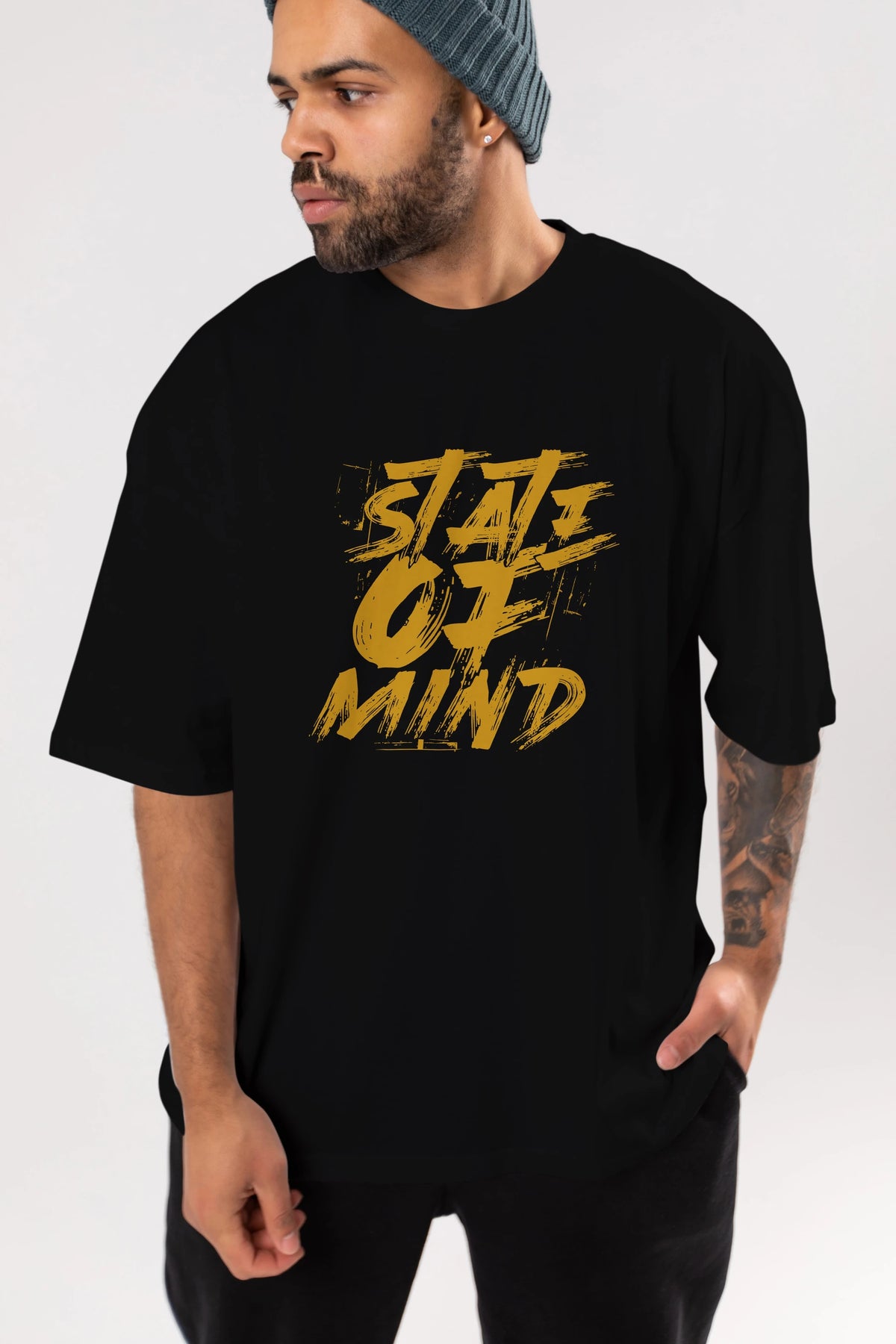 State on Mind Ön Baskılı Oversize t-shirt Erkek Kadın Unisex