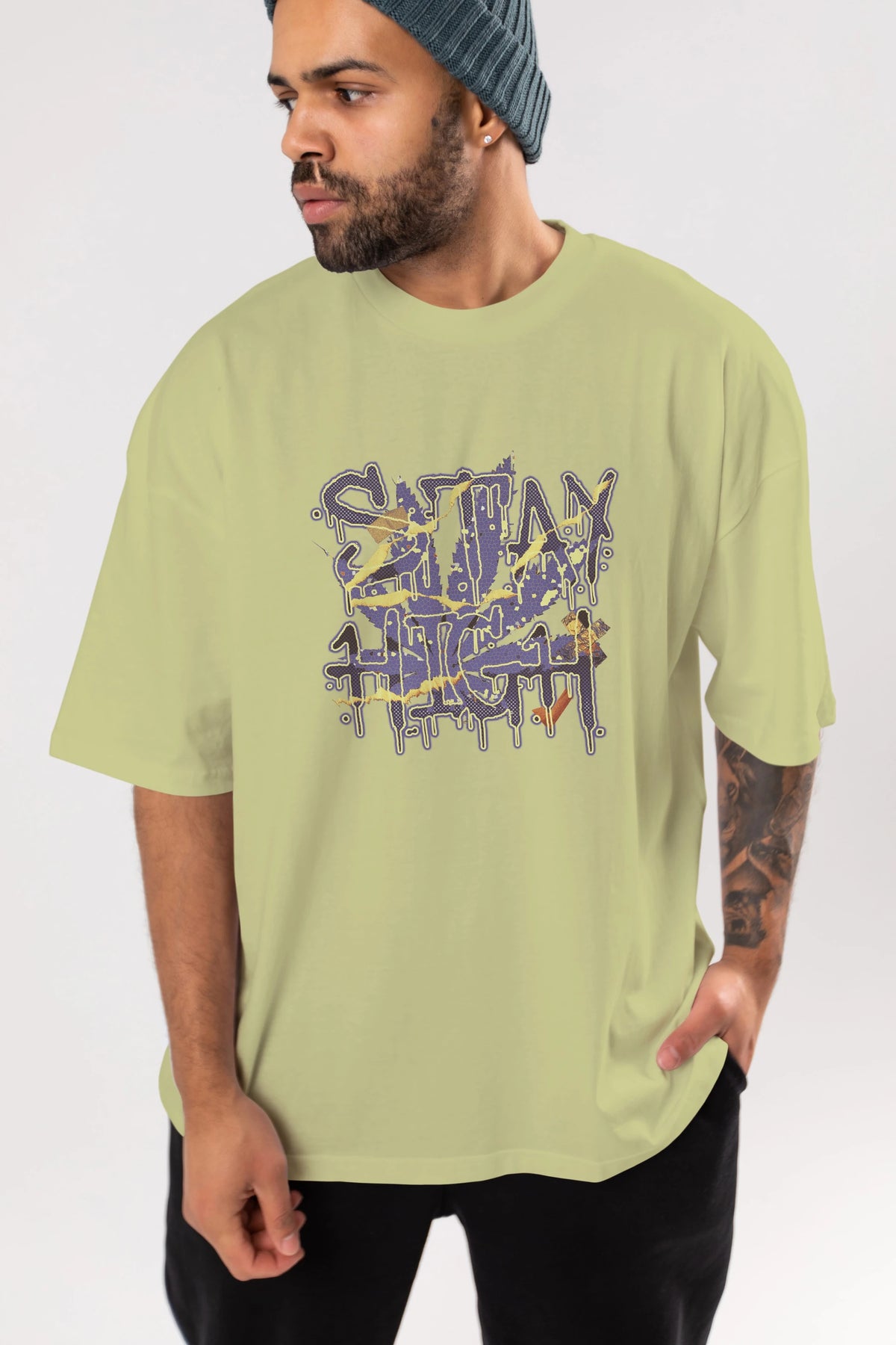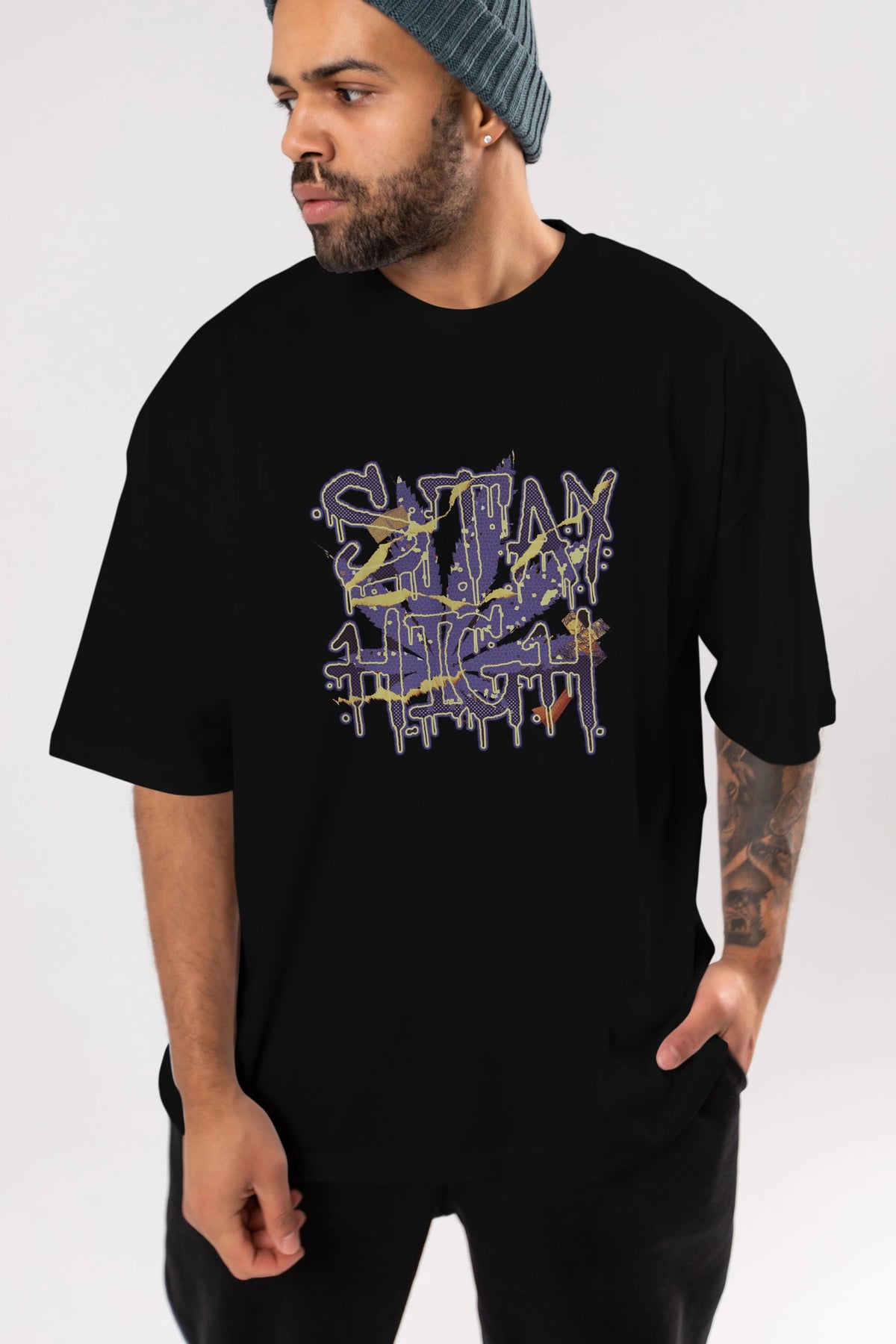 Stay High Ön Baskılı Oversize t-shirt Erkek Kadın Unisex