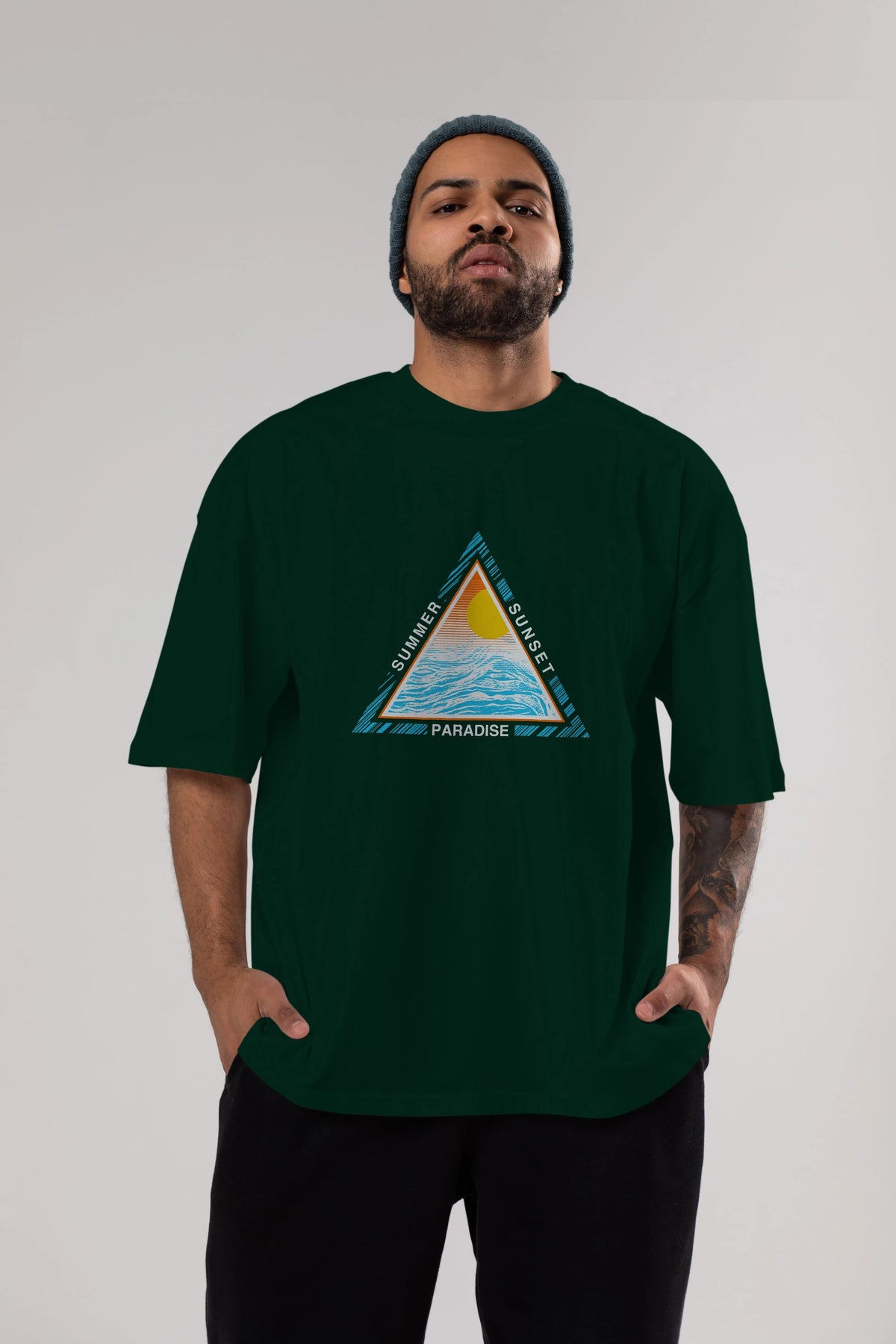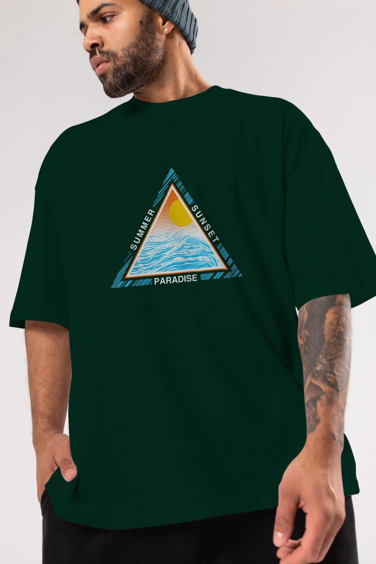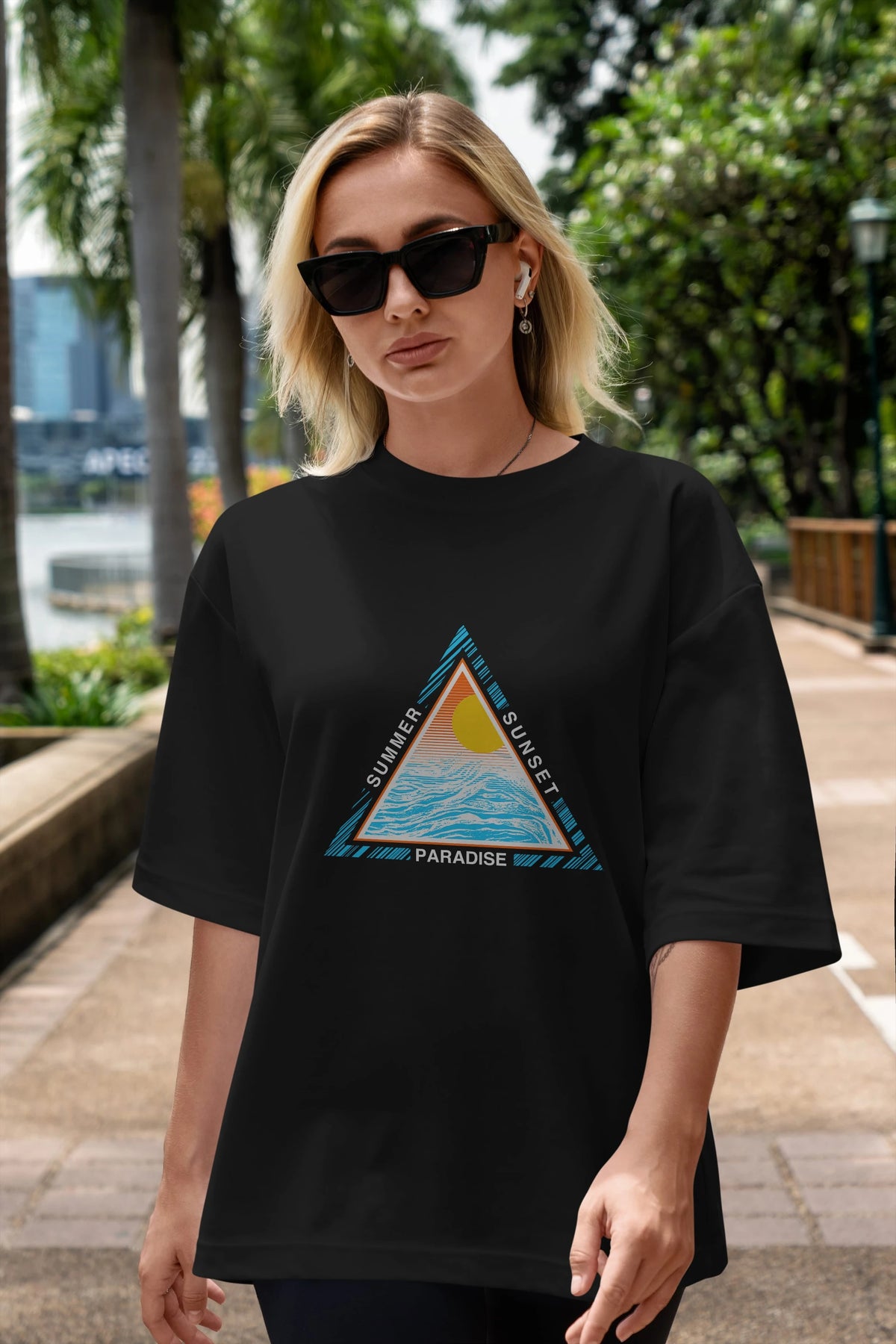 Summer Sunset Paradise Ön Baskılı Oversize t-shirt Erkek Kadın Unisex