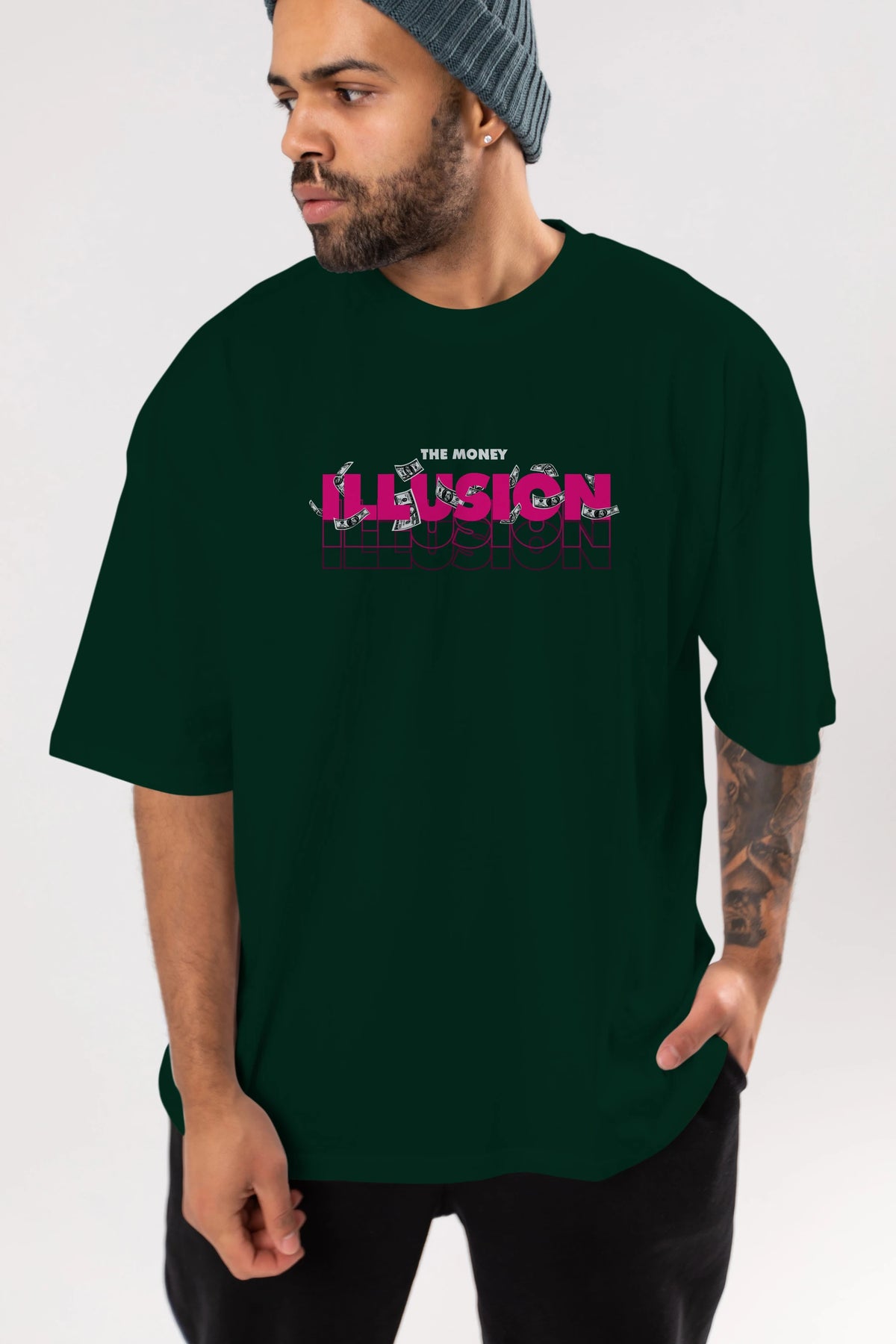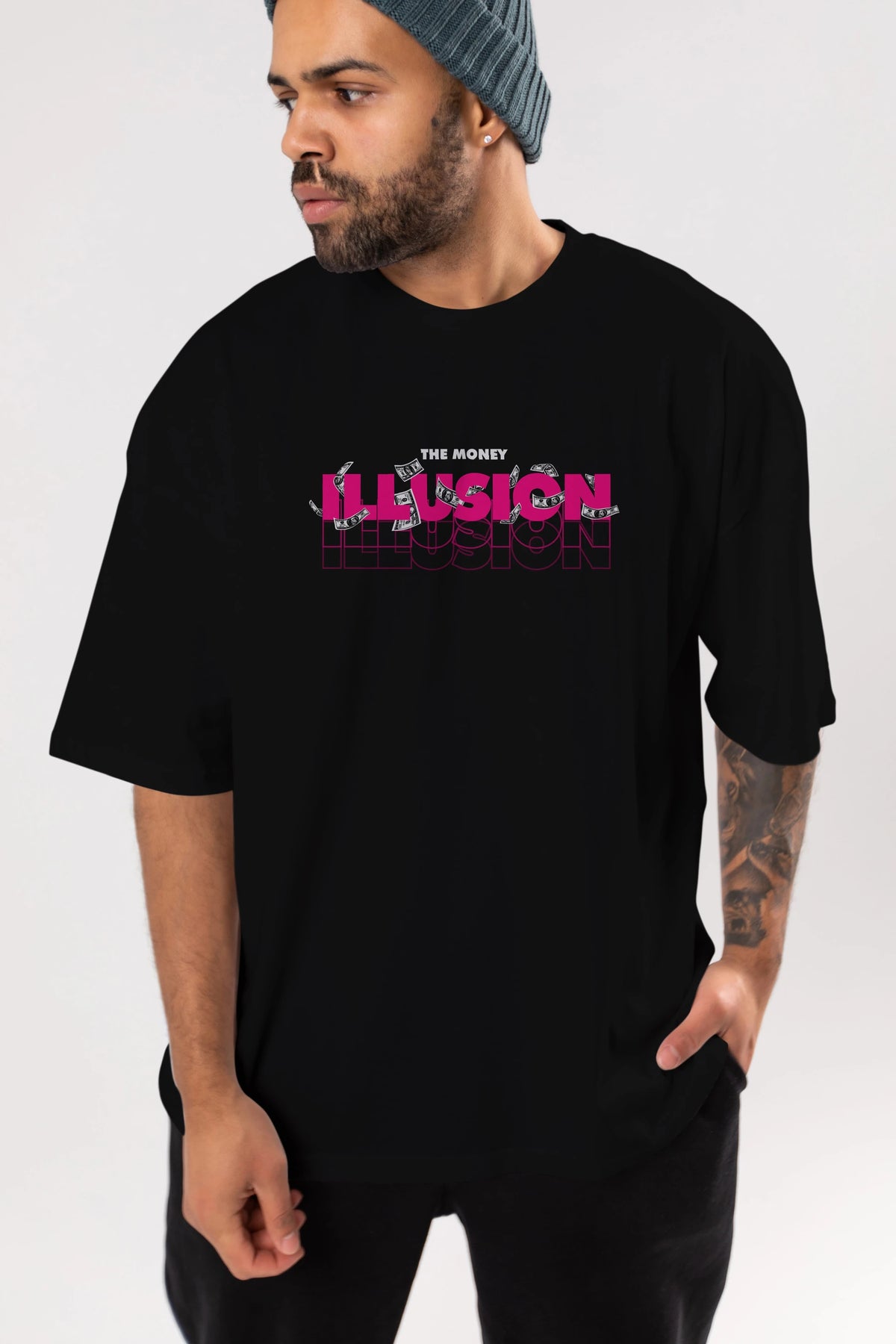 The Money Illusion Ön Baskılı Oversize t-shirt Erkek Kadın Unisex