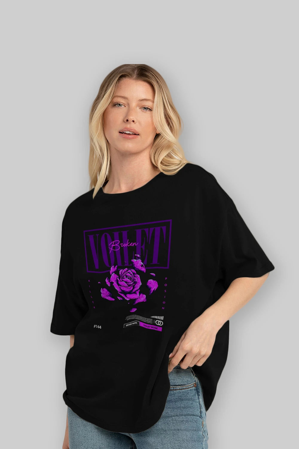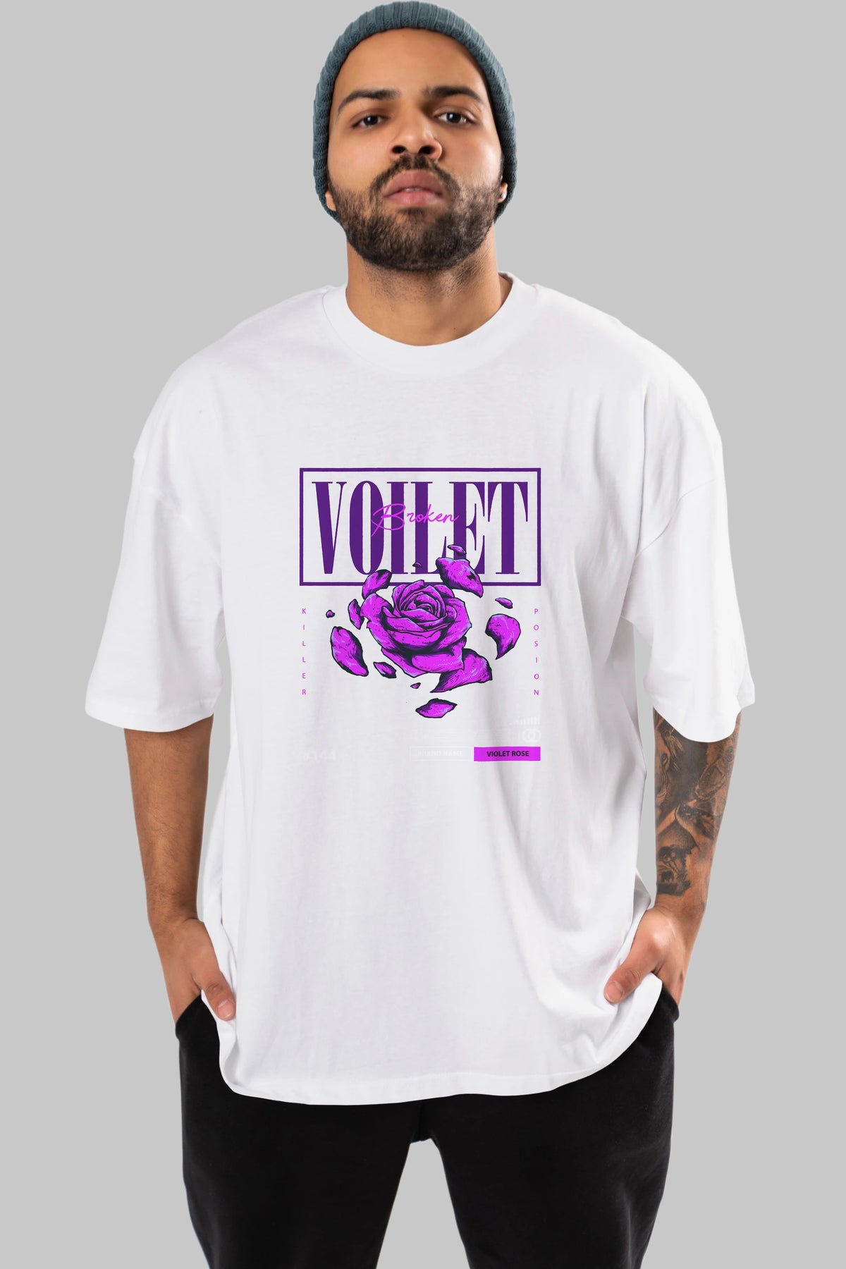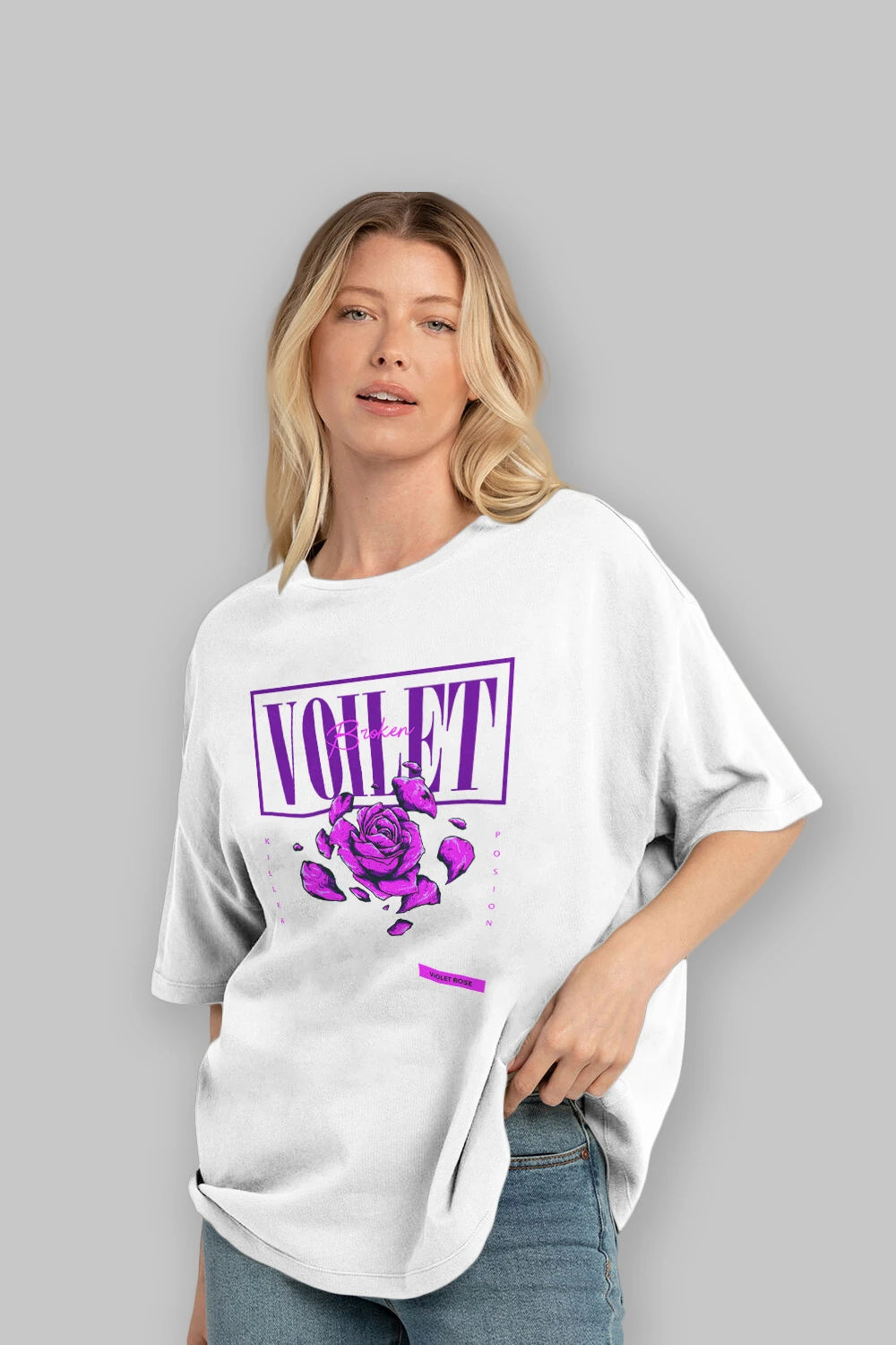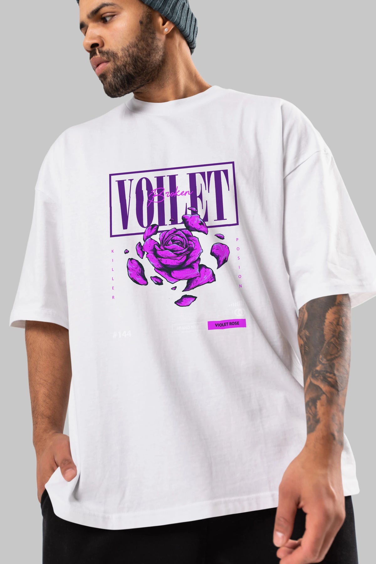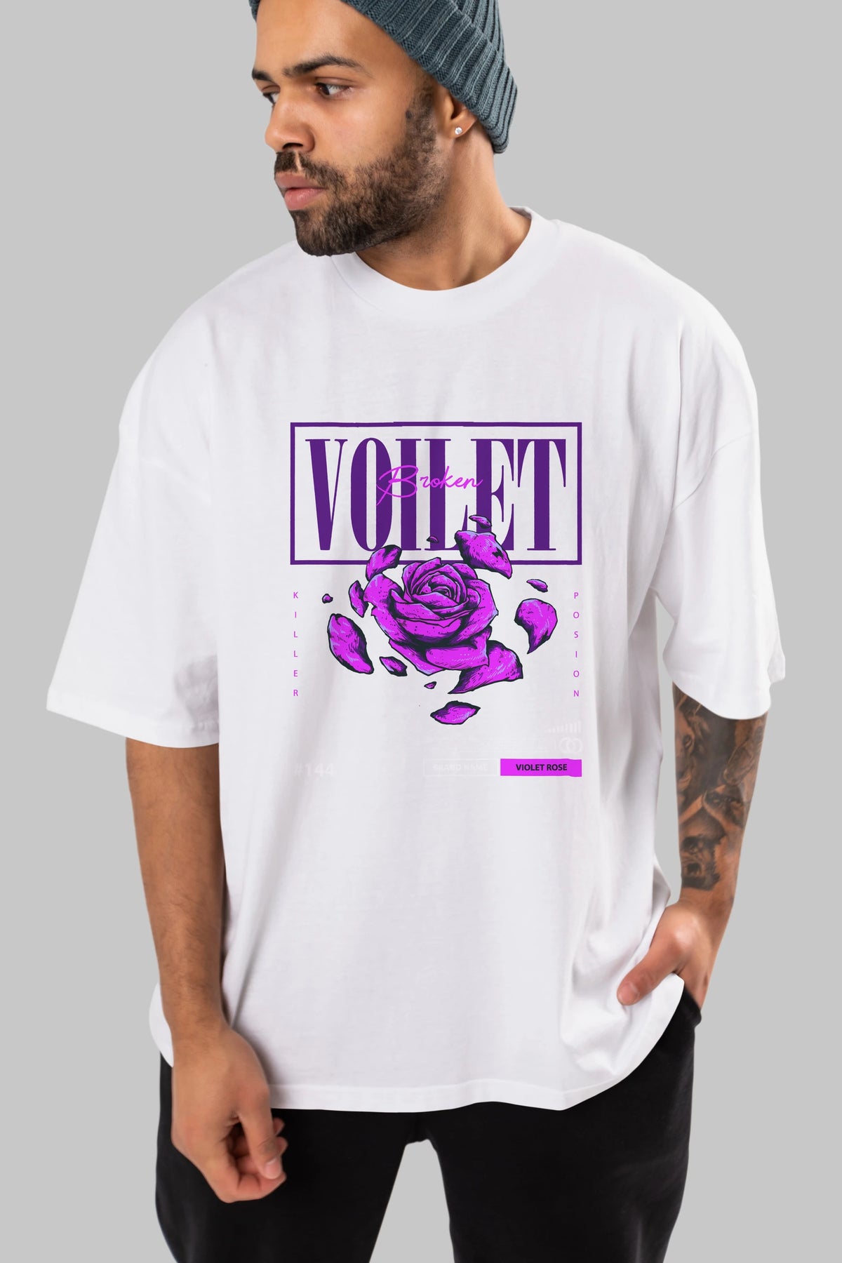 Voilet Broken Ön Baskılı Oversize t-shirt Erkek Kadın Unisex