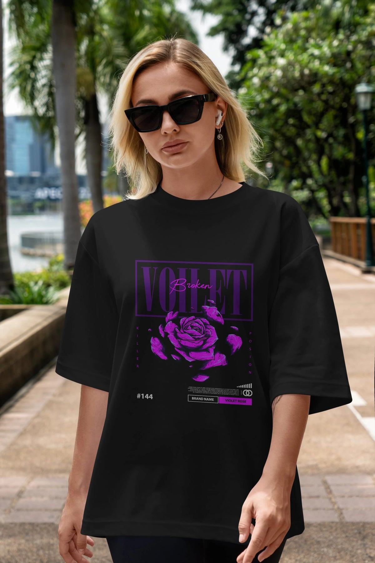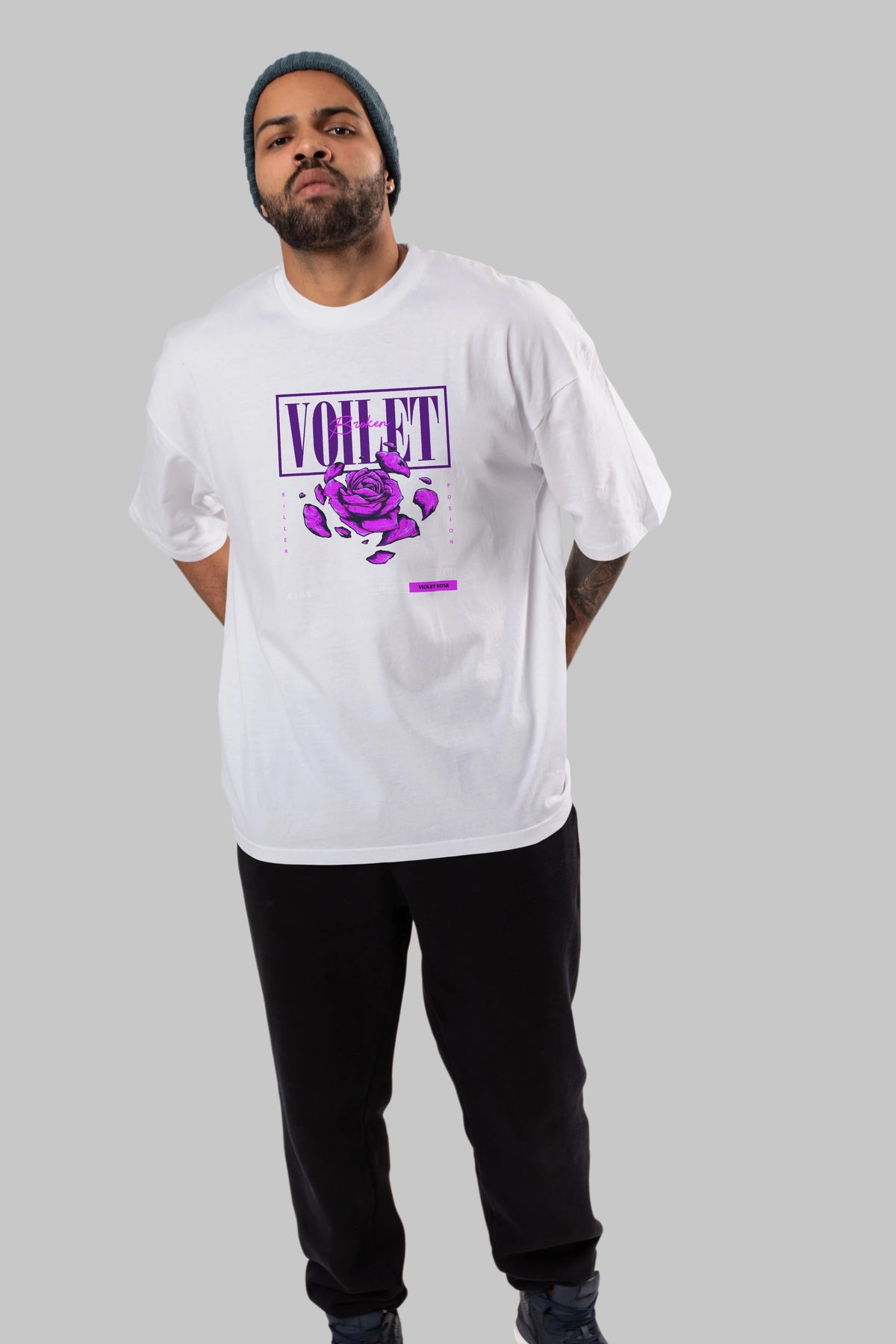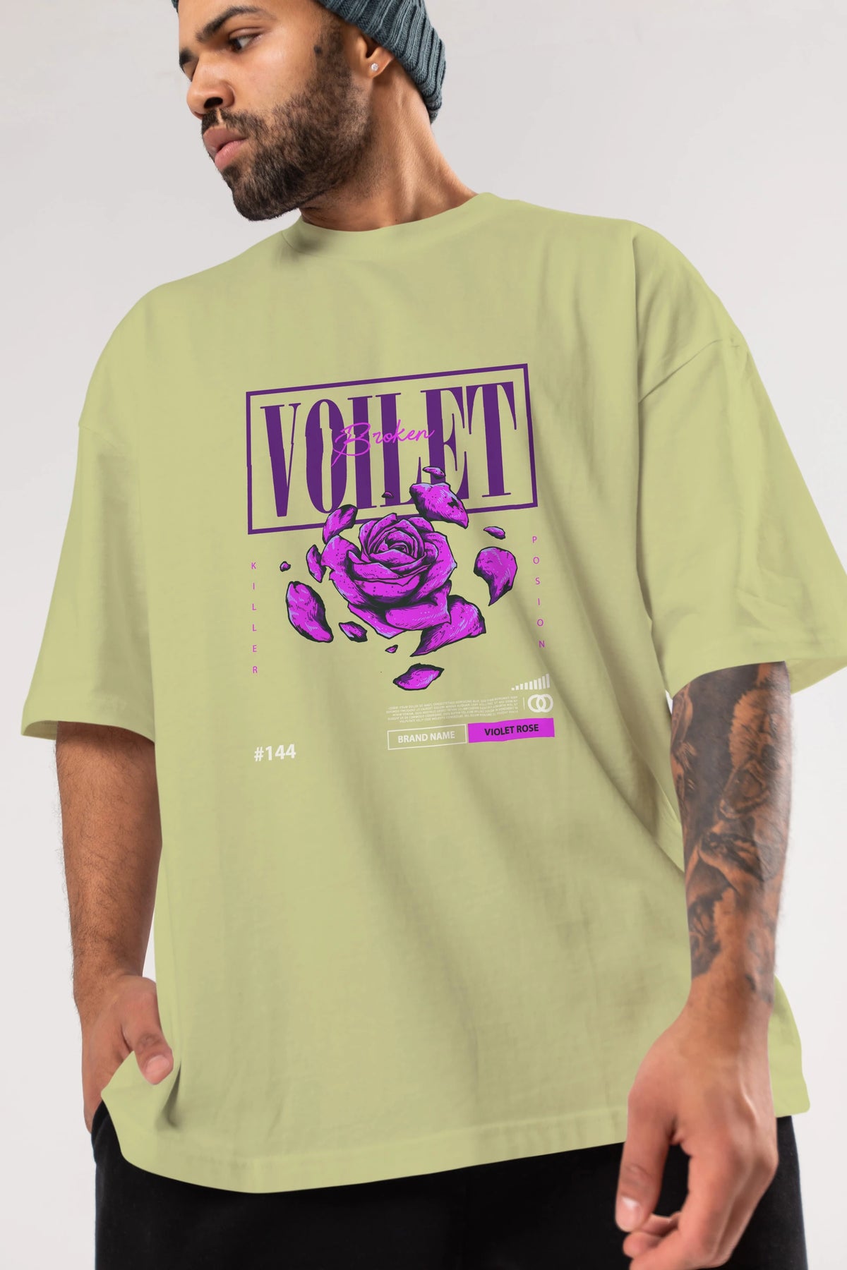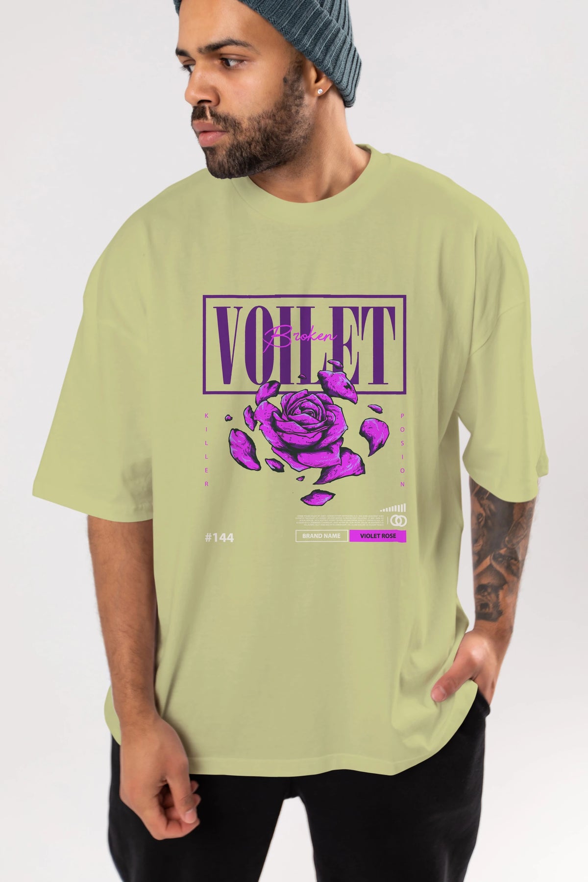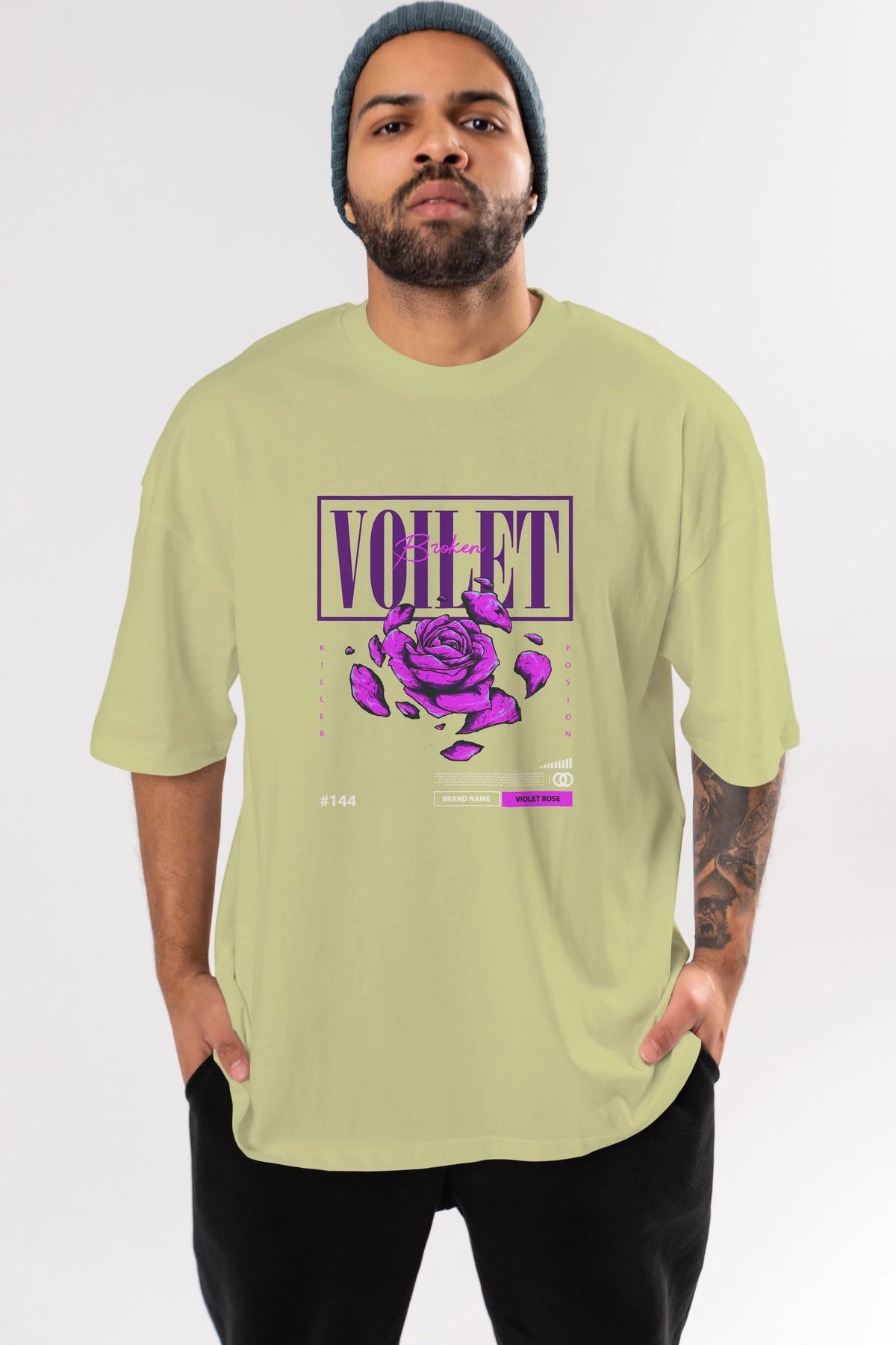 Voilet Broken Ön Baskılı Oversize t-shirt Erkek Kadın Unisex