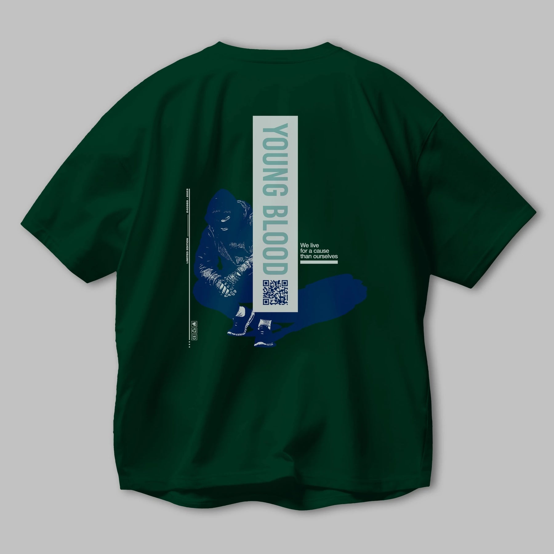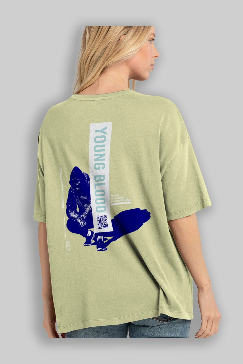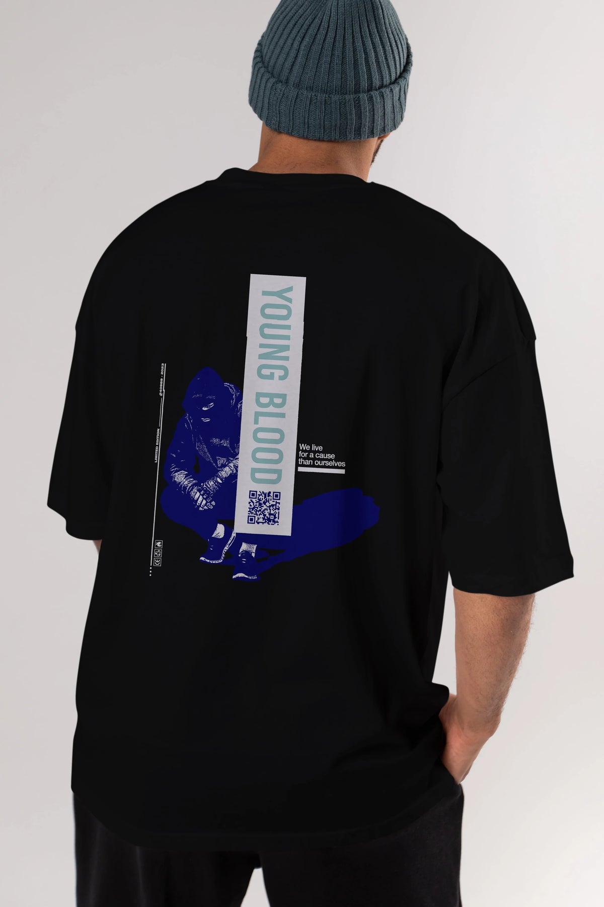 Young Blood Arka Baskılı Oversize t-shirt Erkek Kadın Unisex