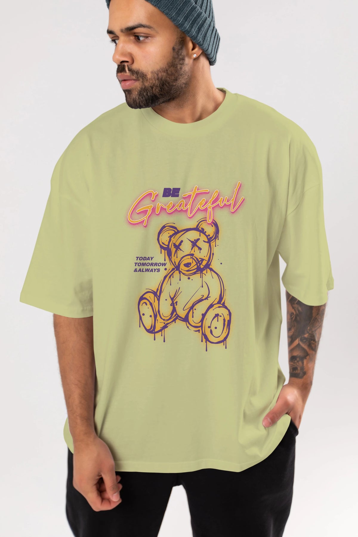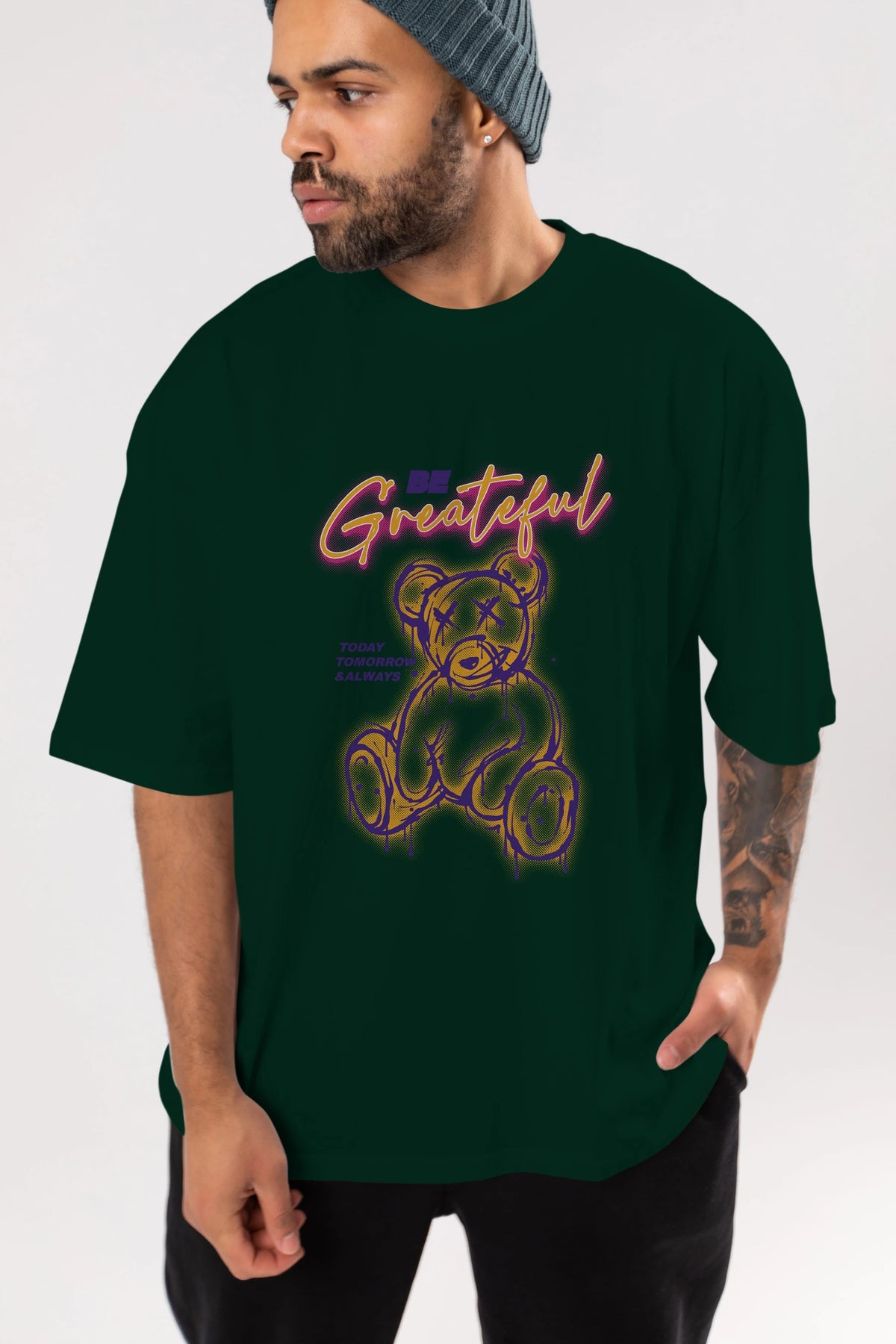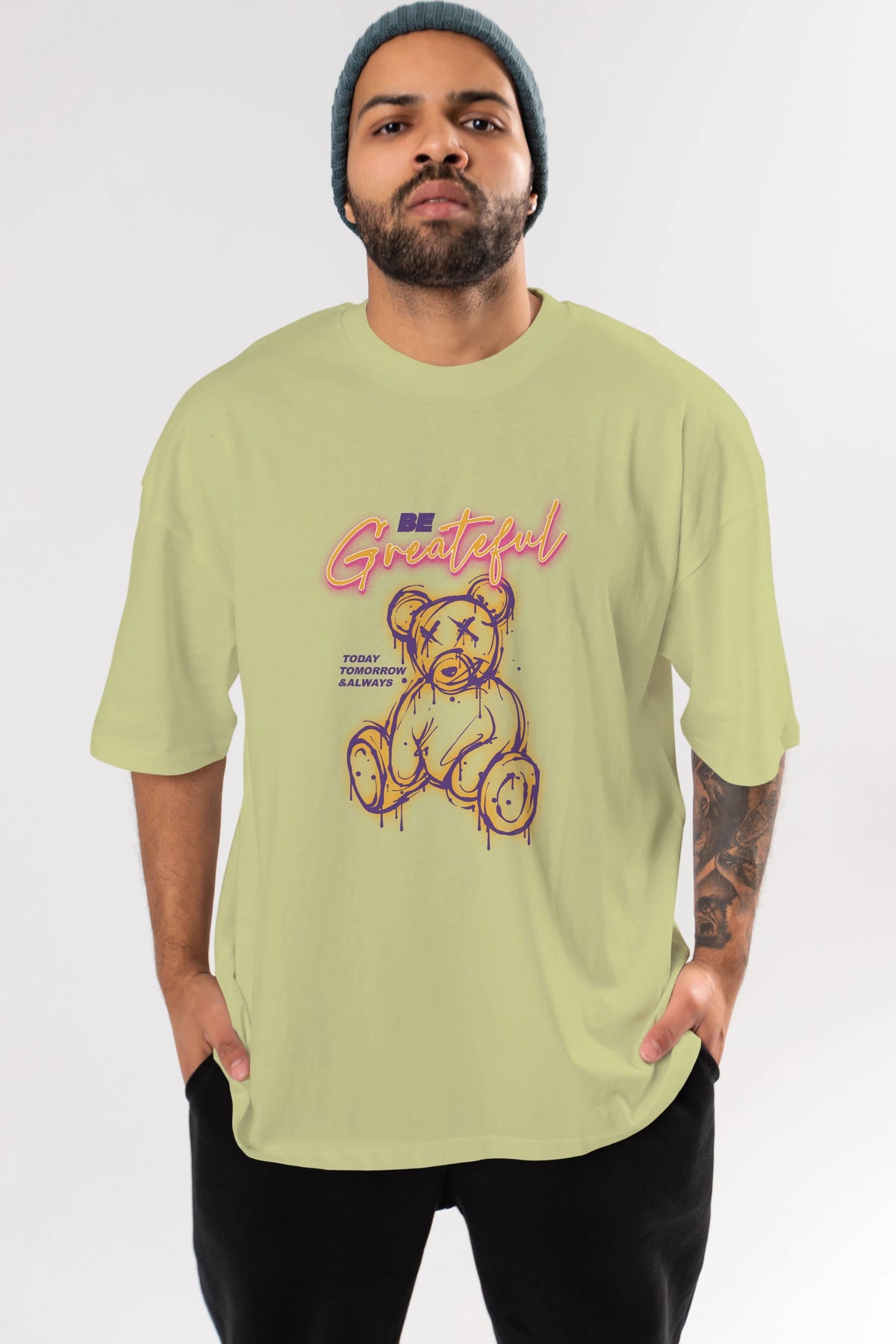 Be Greateful Bear Ön Baskılı Oversize t-shirt Erkek Kadın Unisex