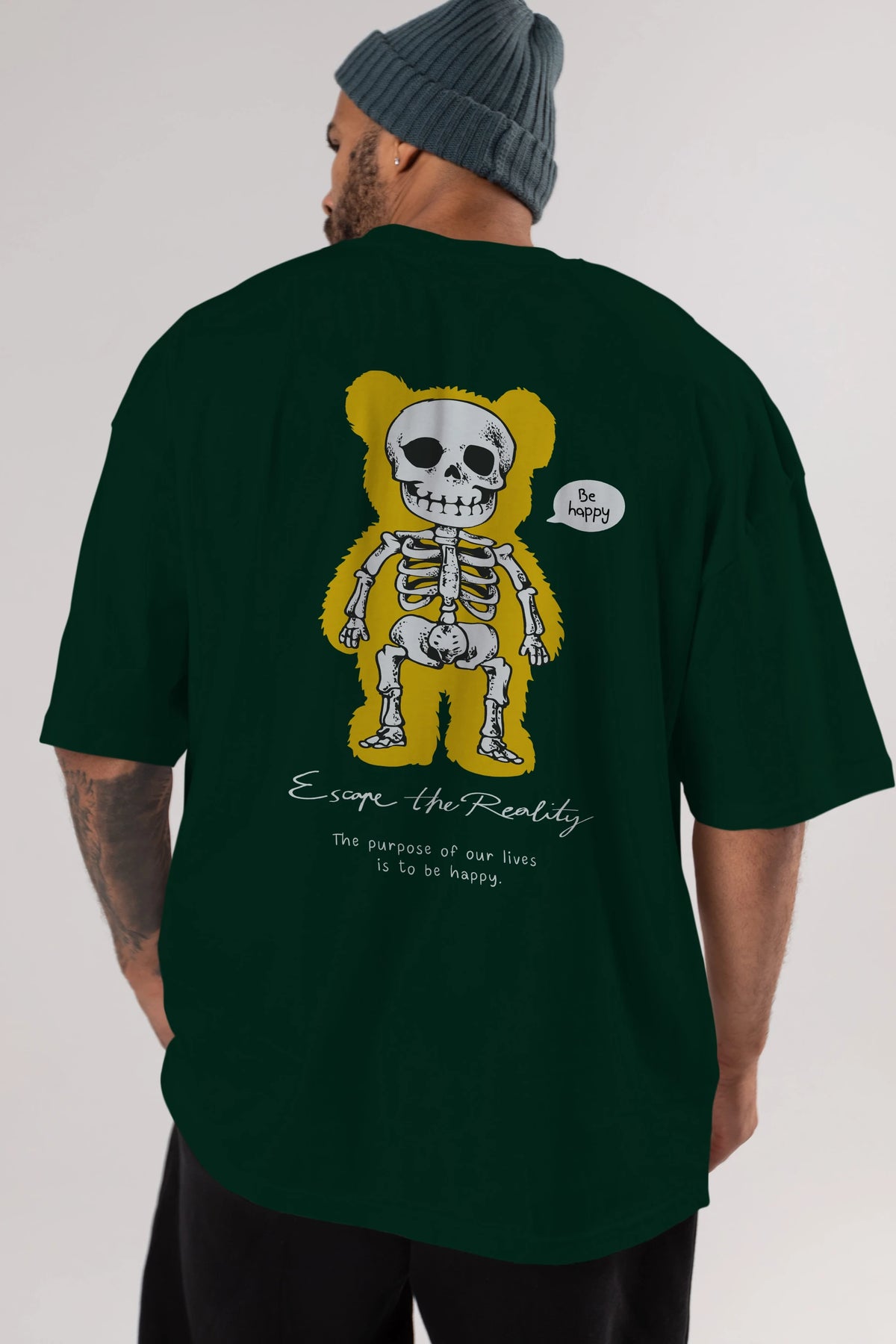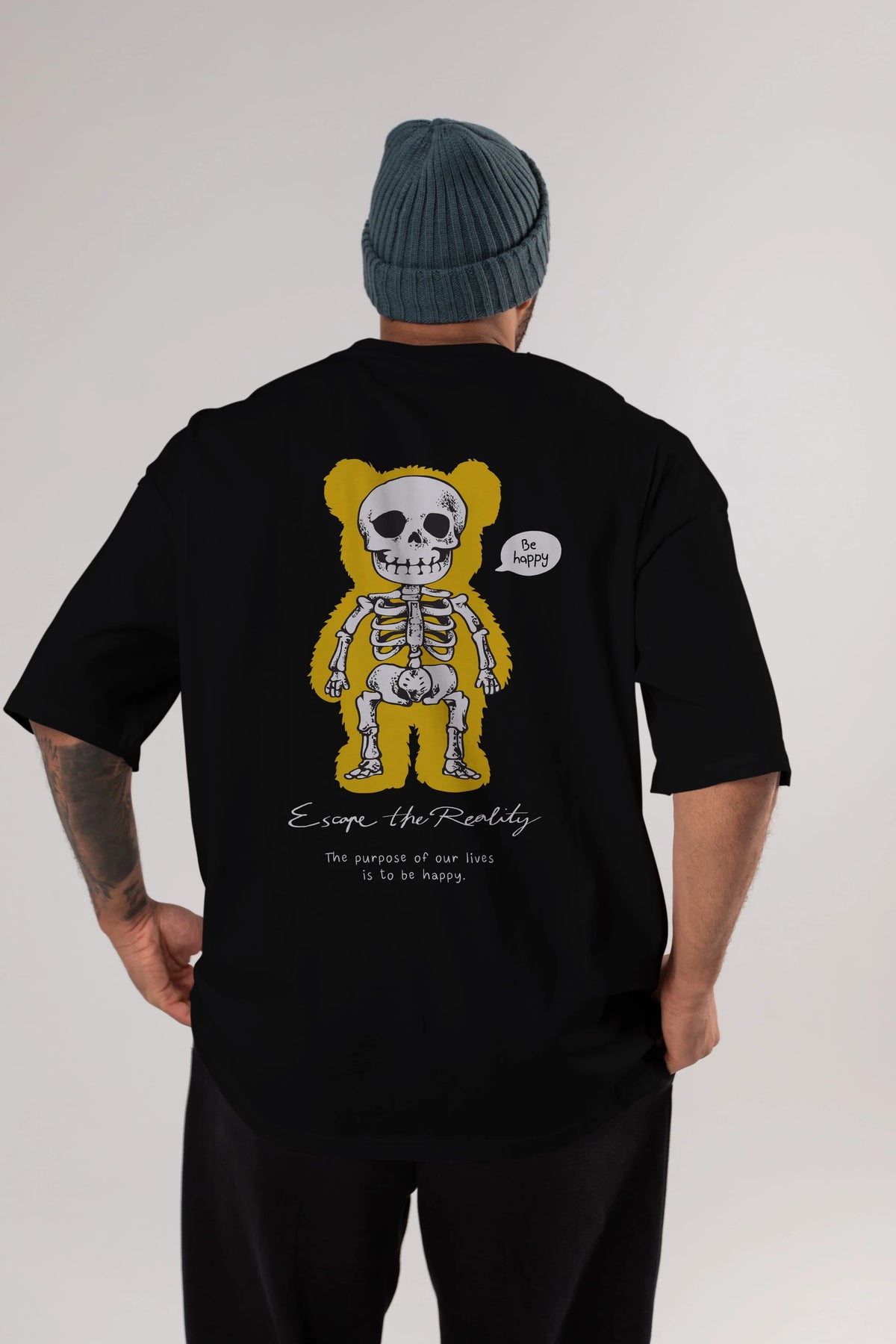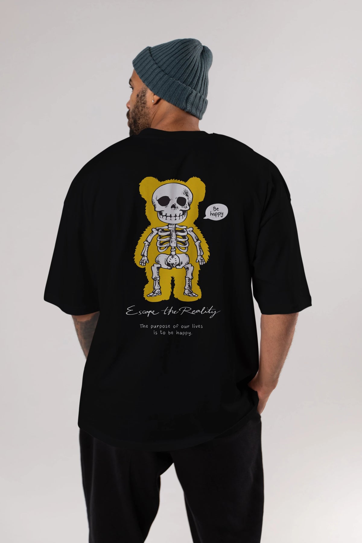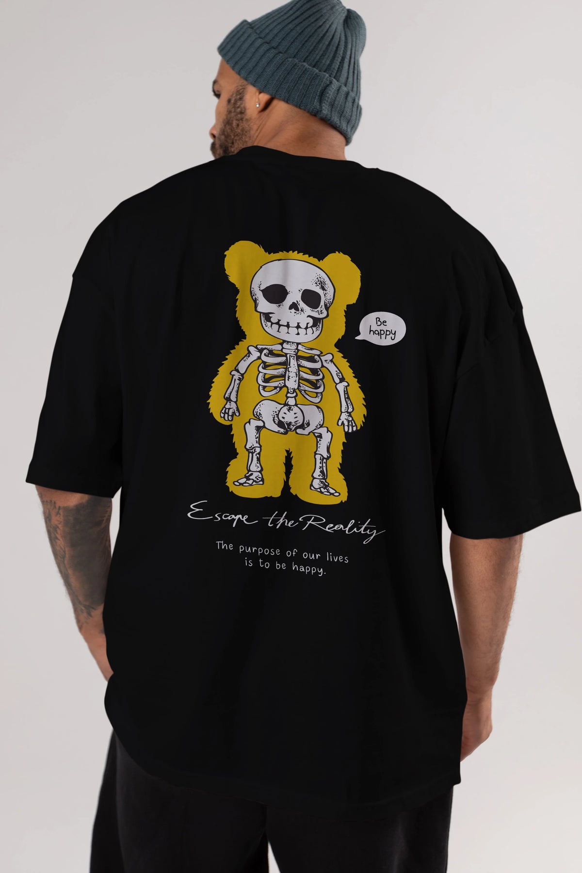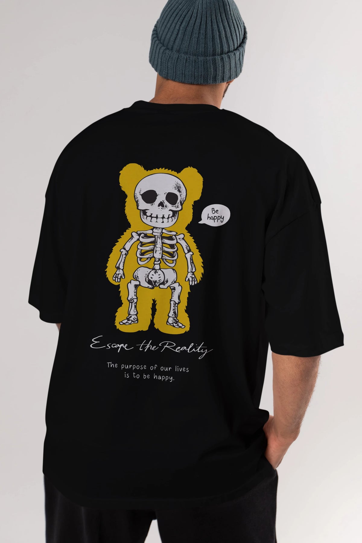 Be Happy Bear Arka Baskılı Oversize t-shirt Erkek Kadın Unisex