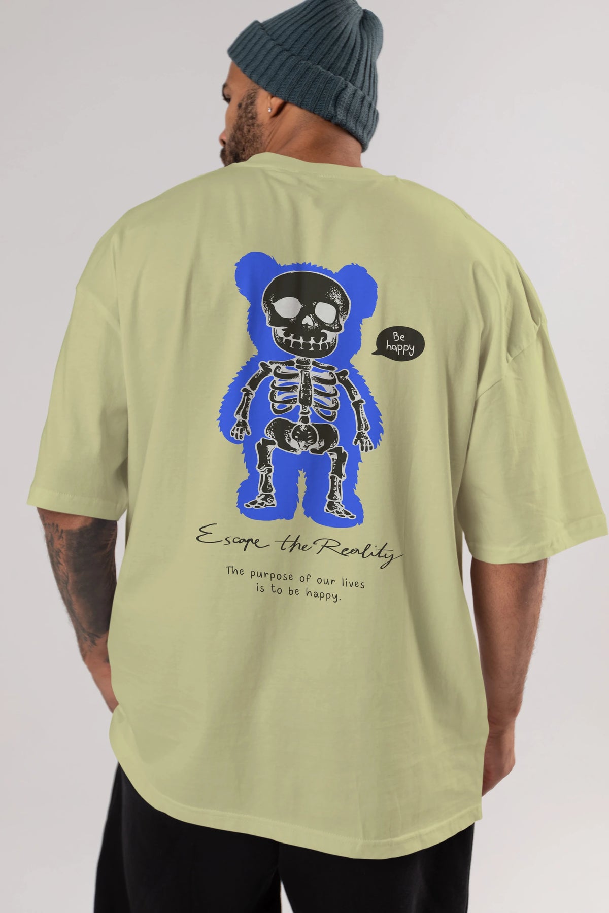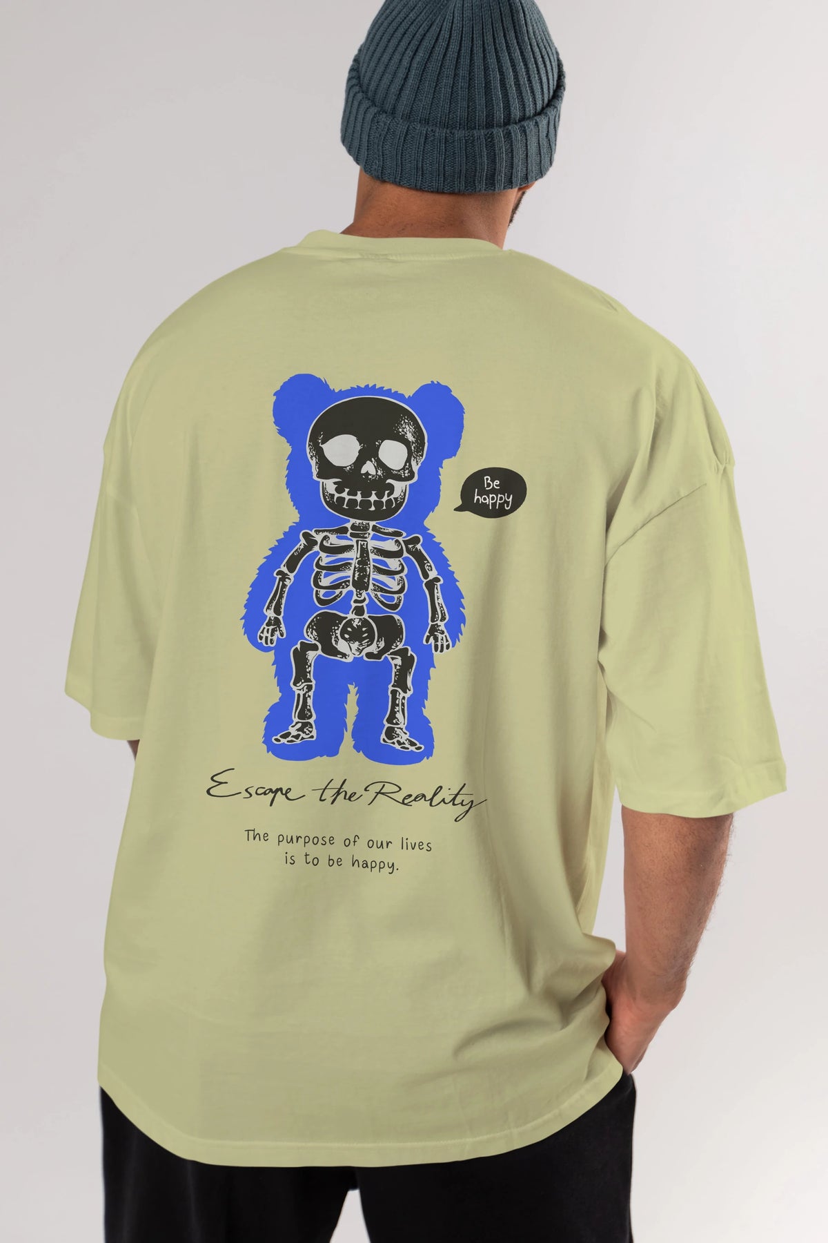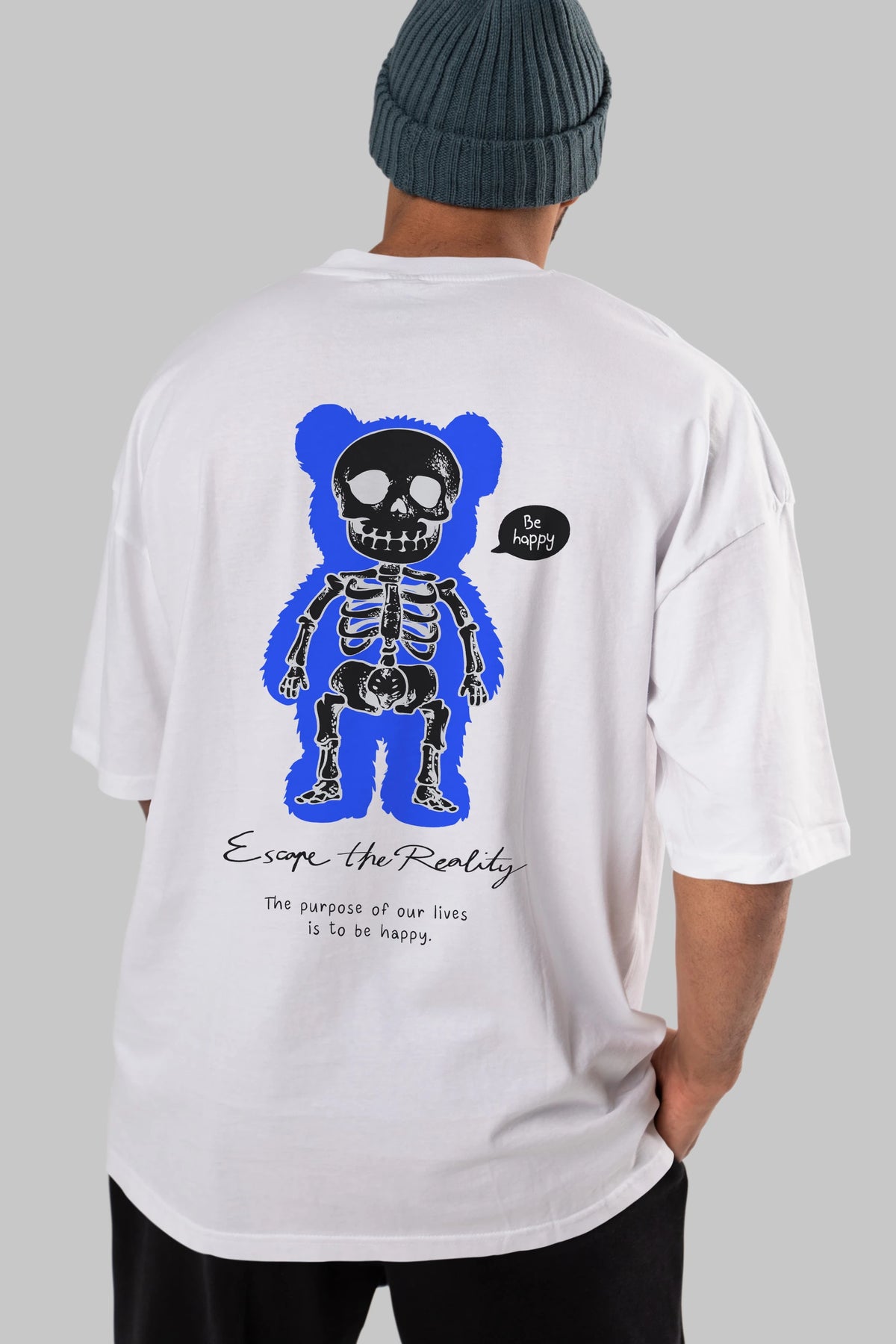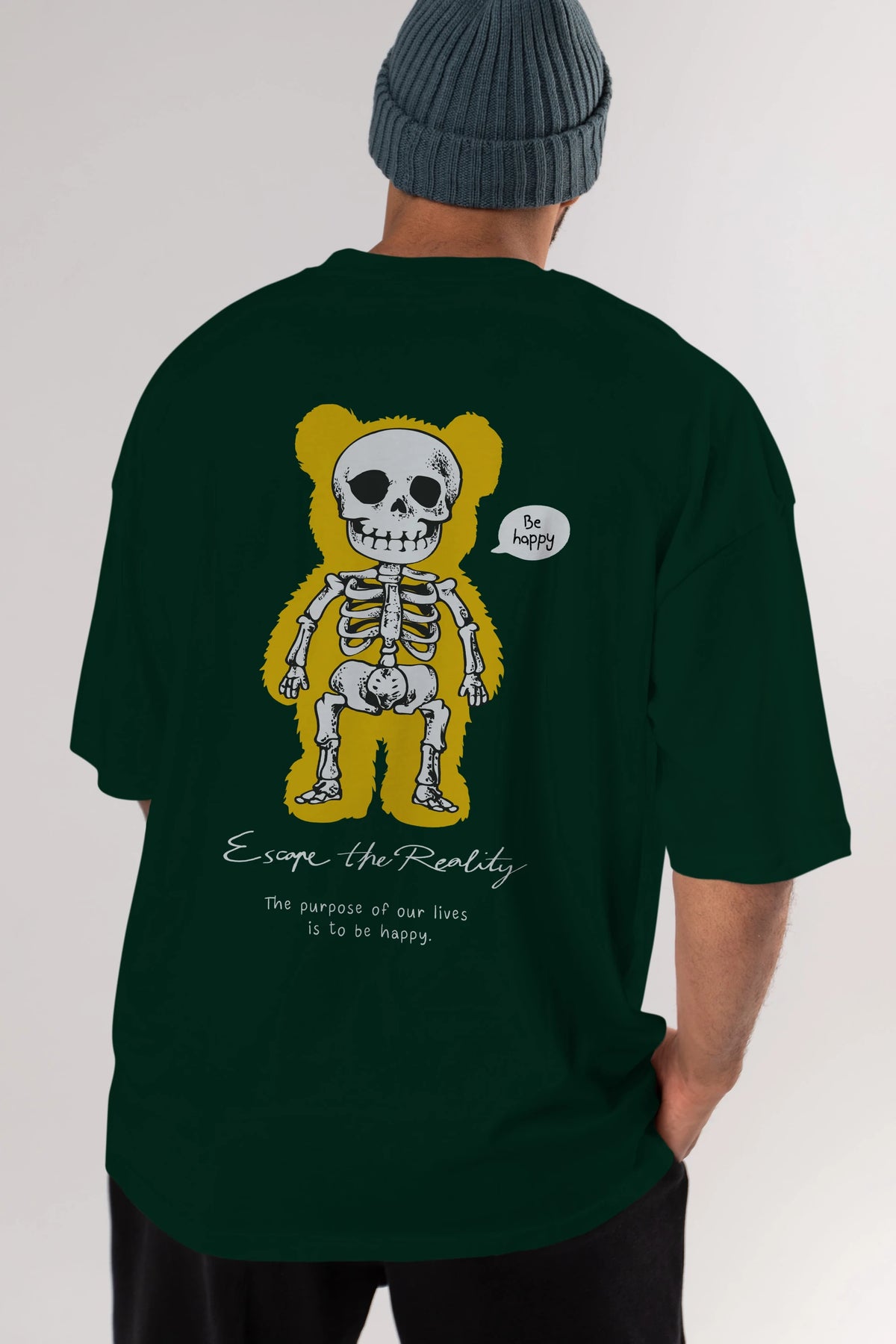 Be Happy Bear Arka Baskılı Oversize t-shirt Erkek Kadın Unisex