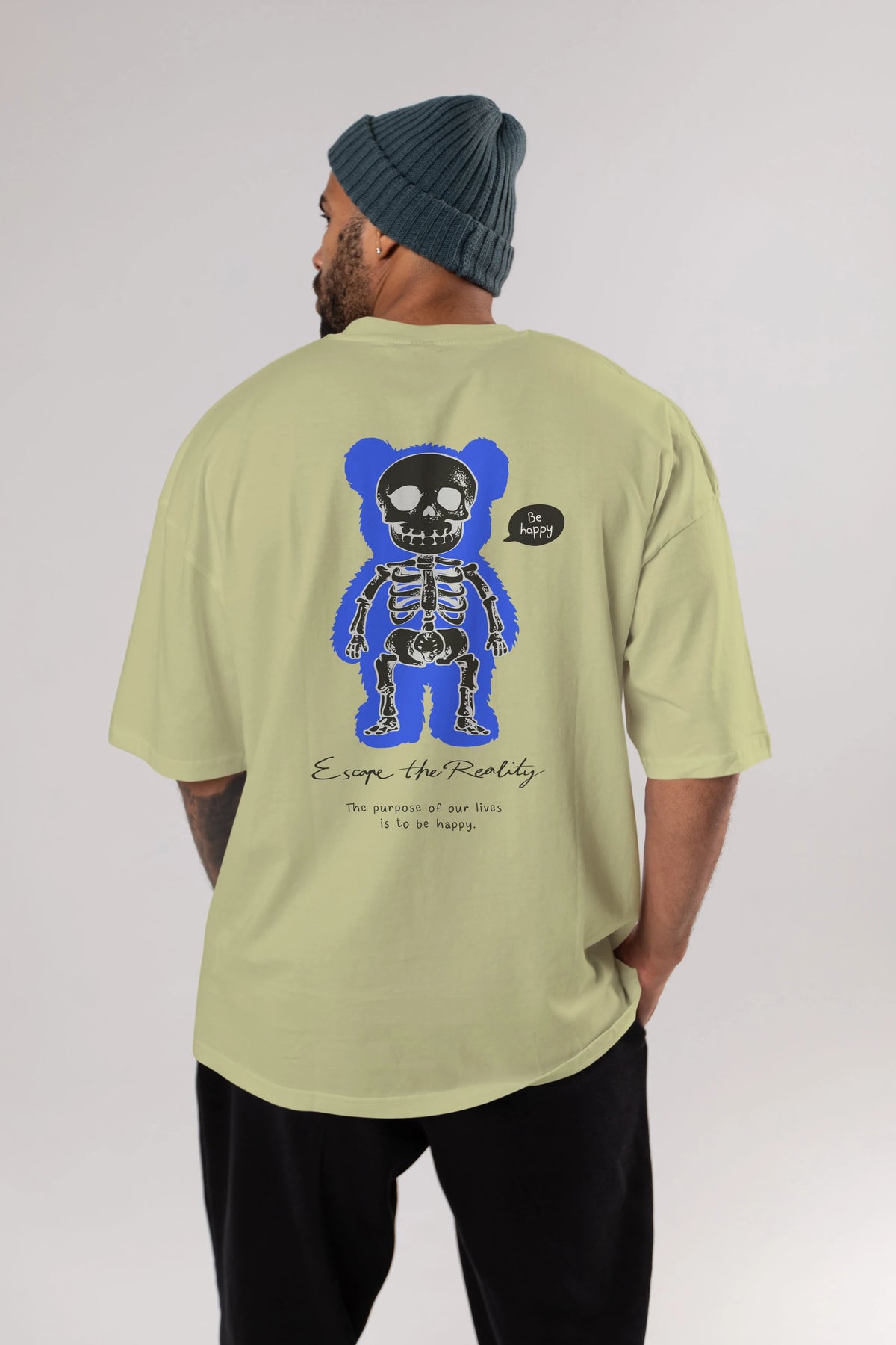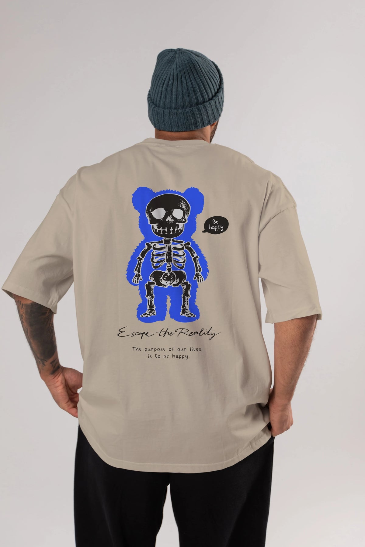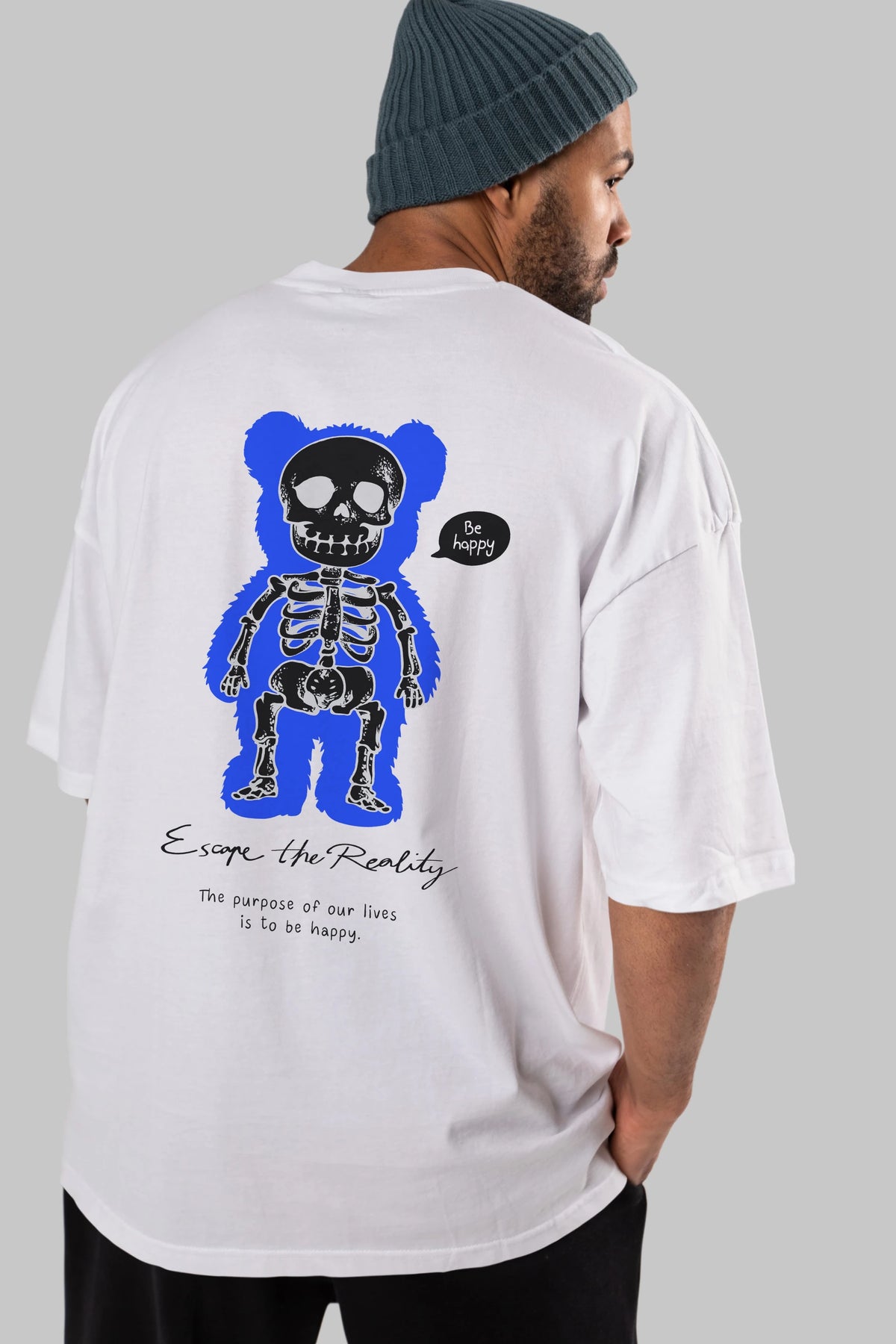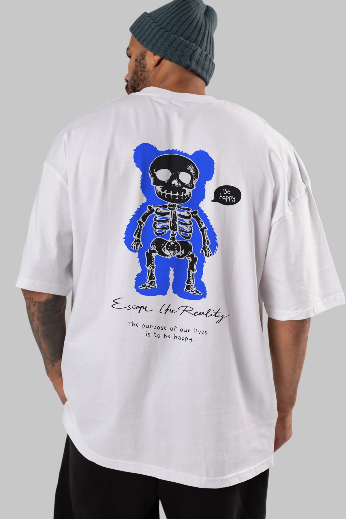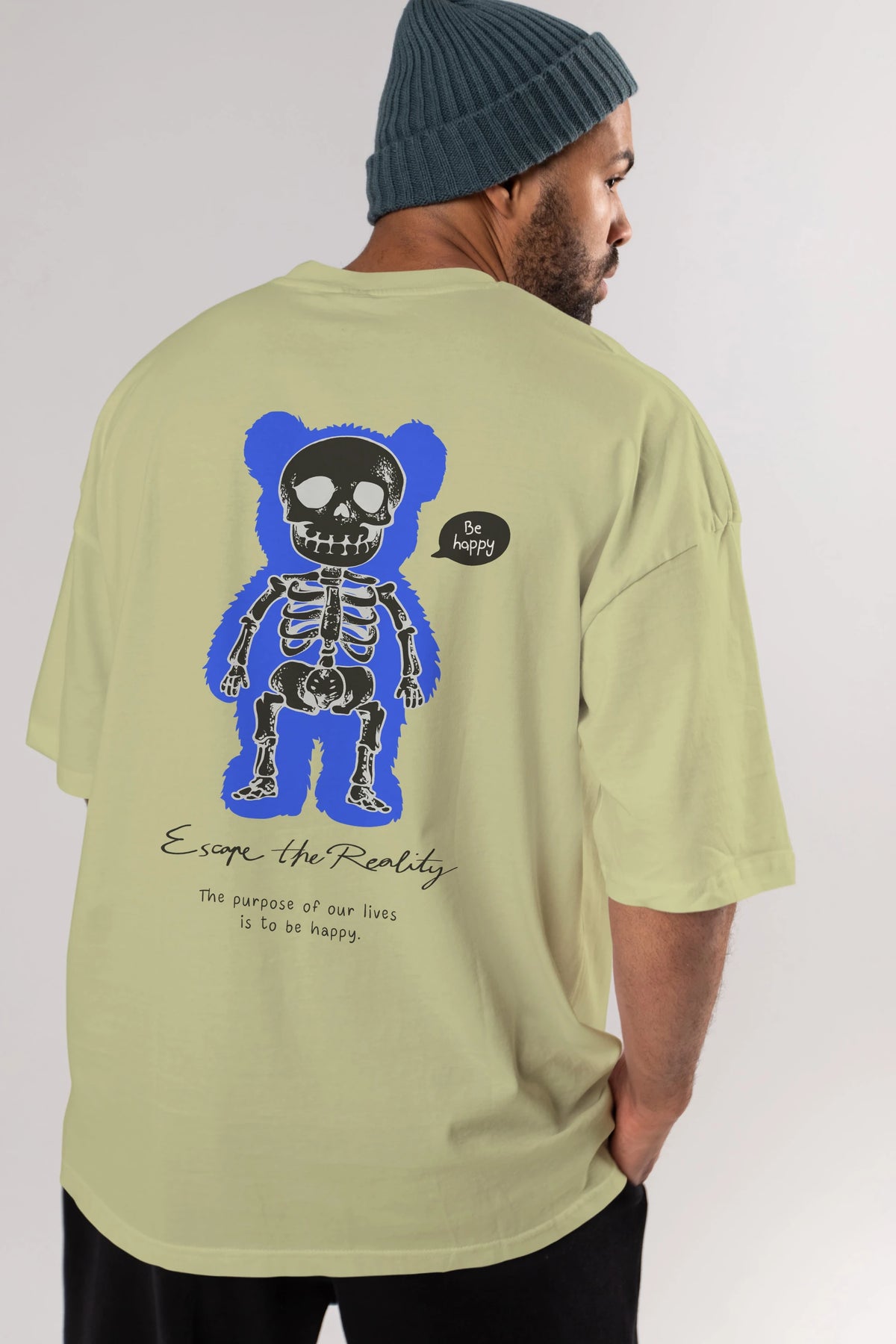 Be Happy Bear Arka Baskılı Oversize t-shirt Erkek Kadın Unisex