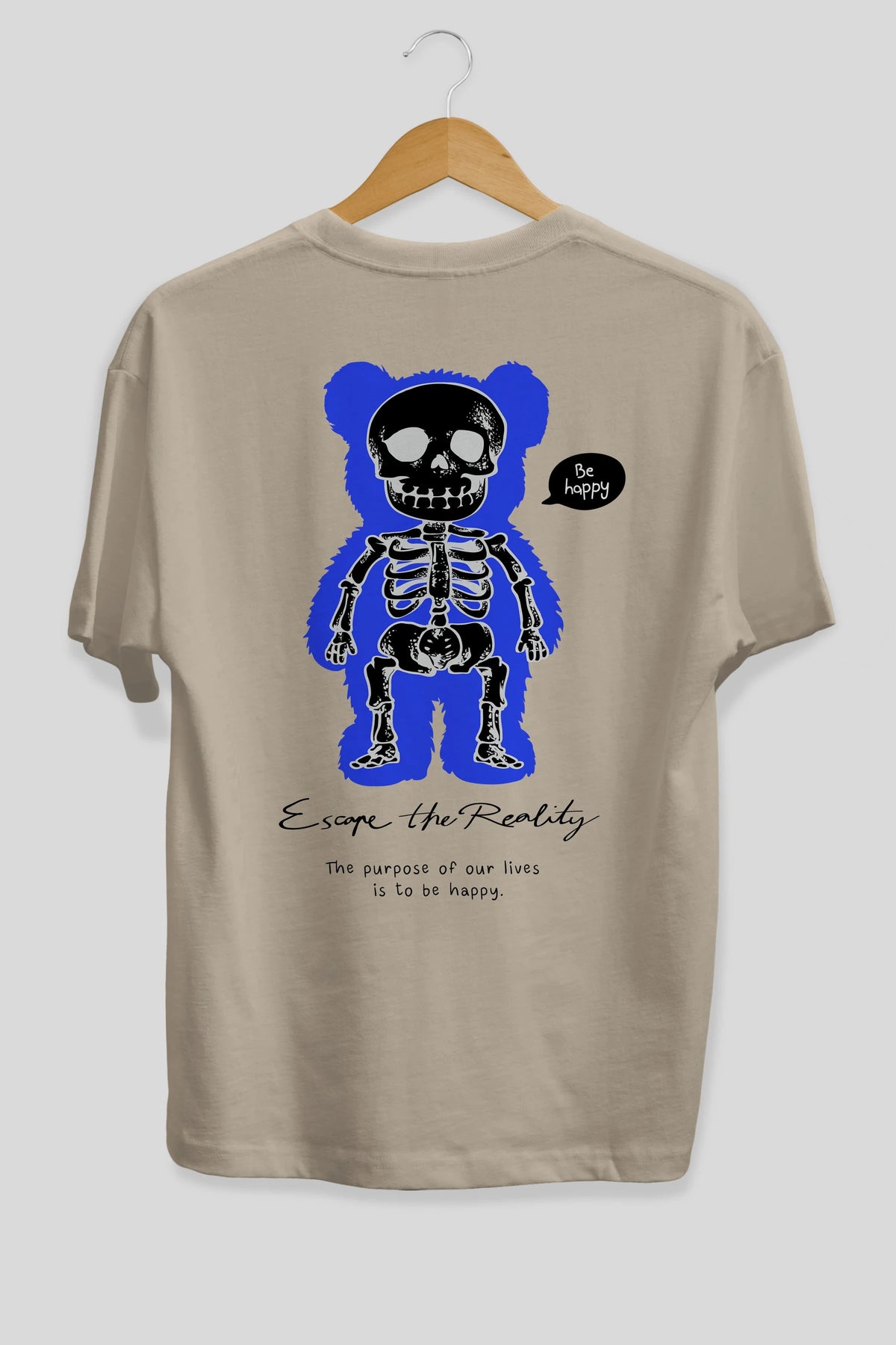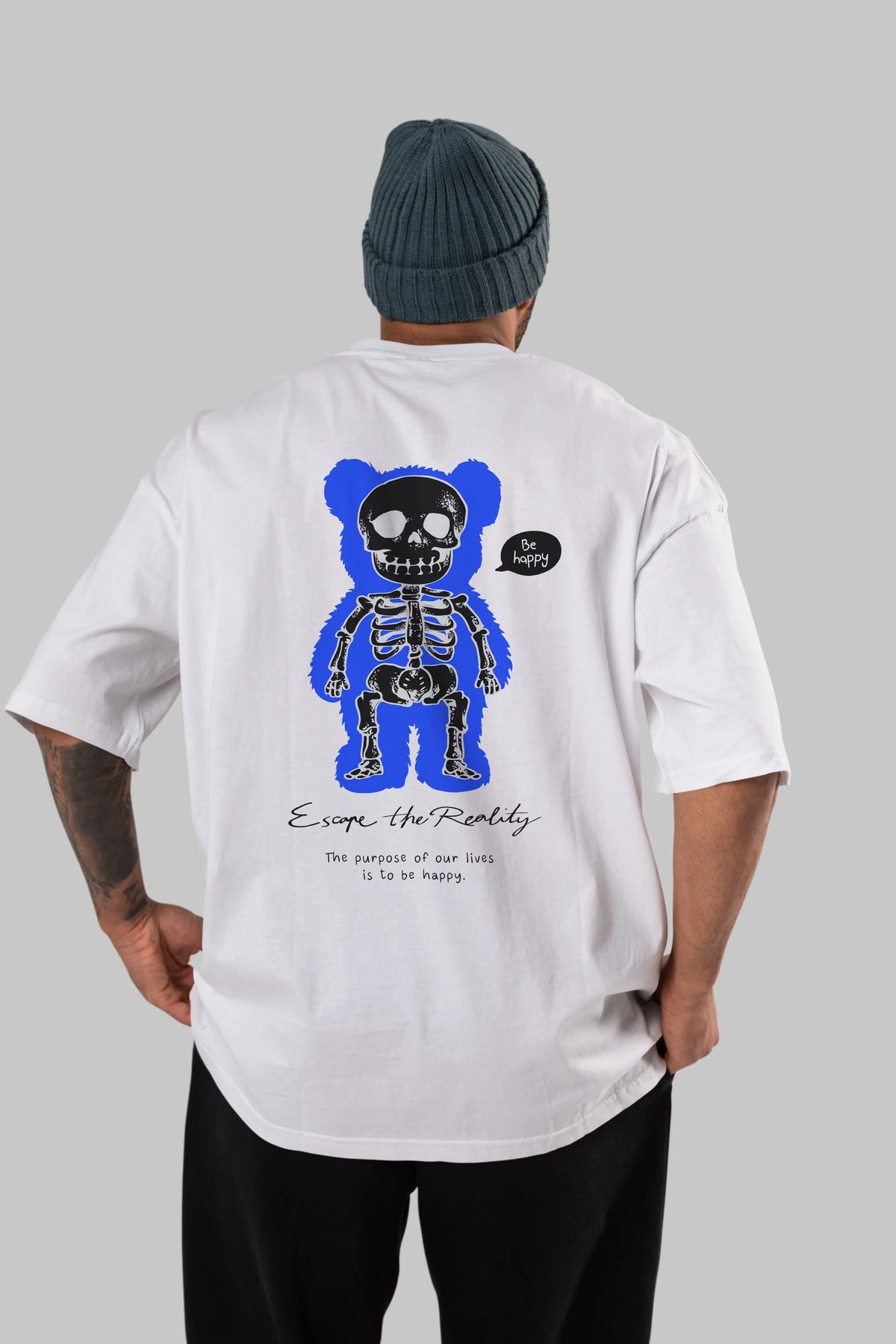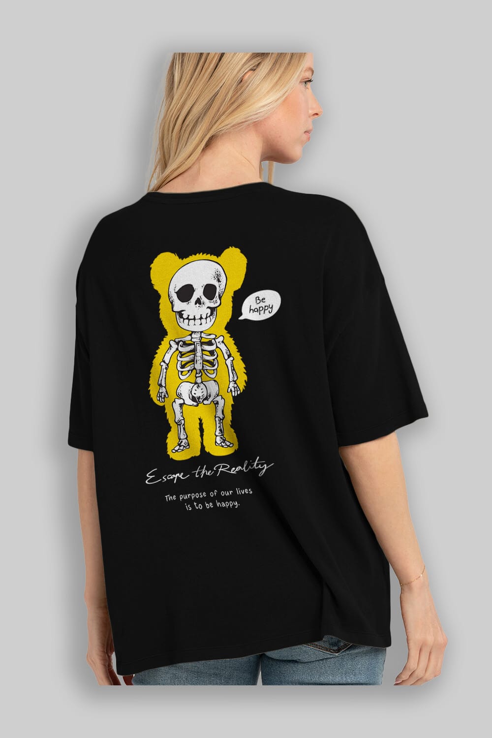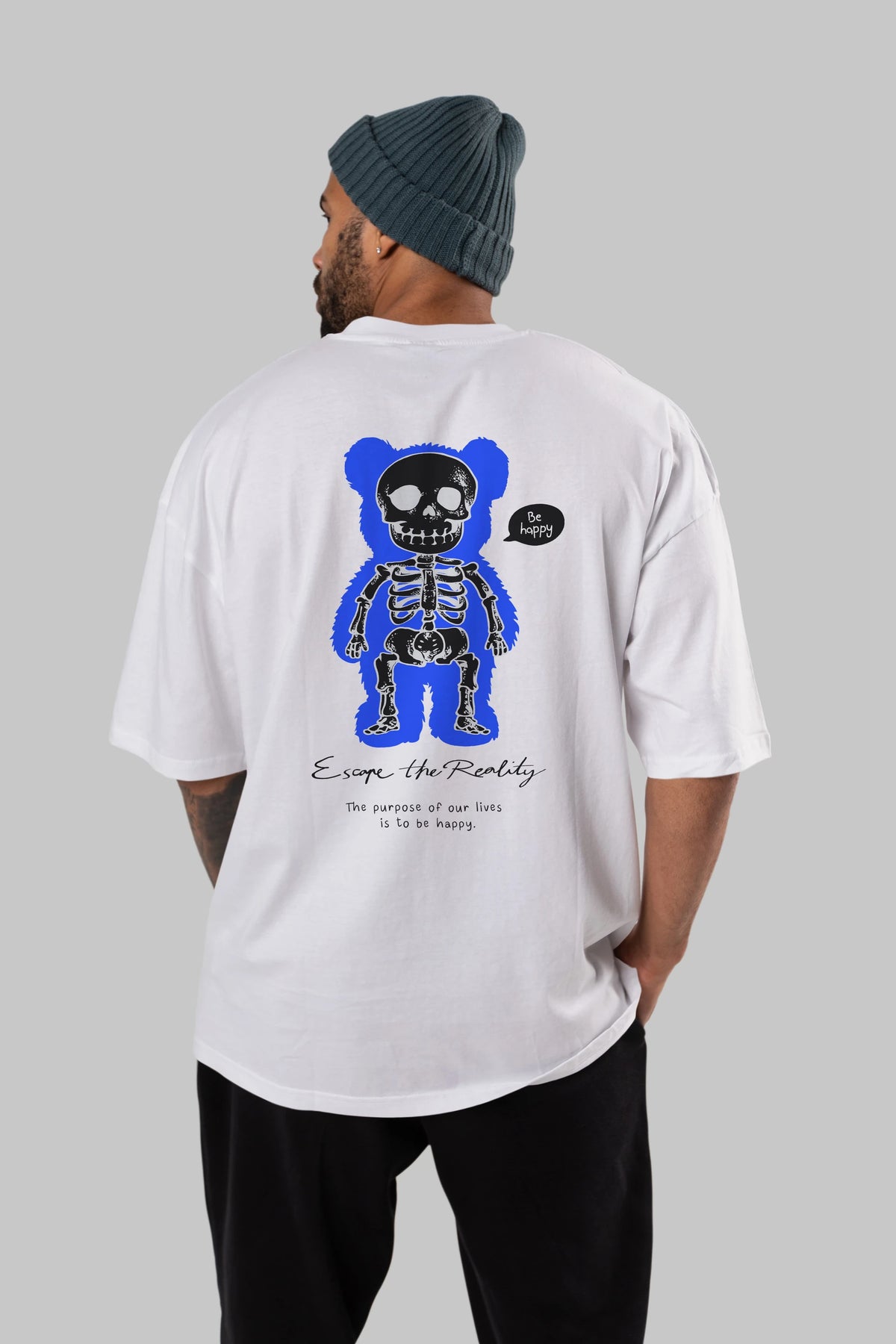 Be Happy Bear Arka Baskılı Oversize t-shirt Erkek Kadın Unisex