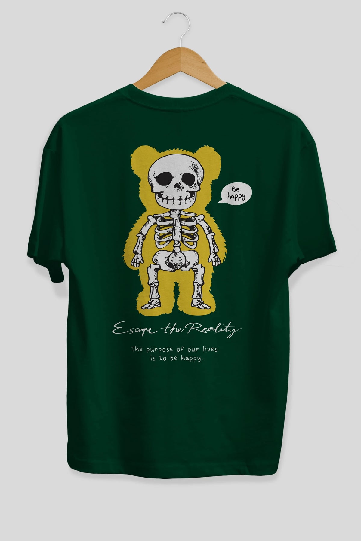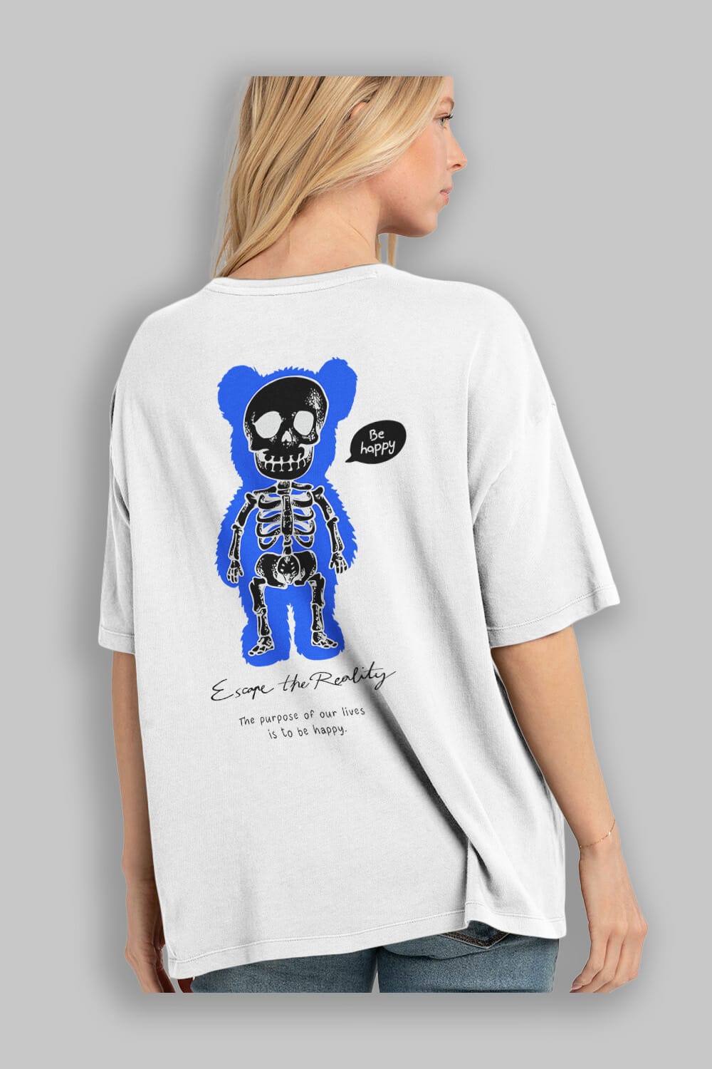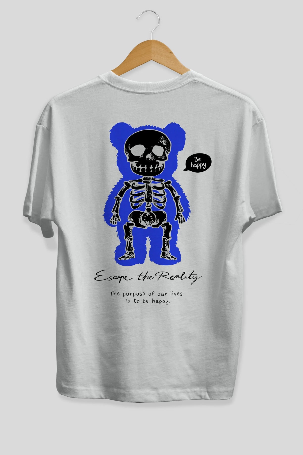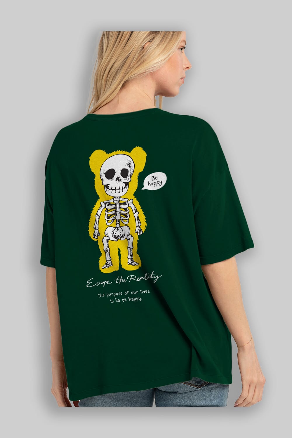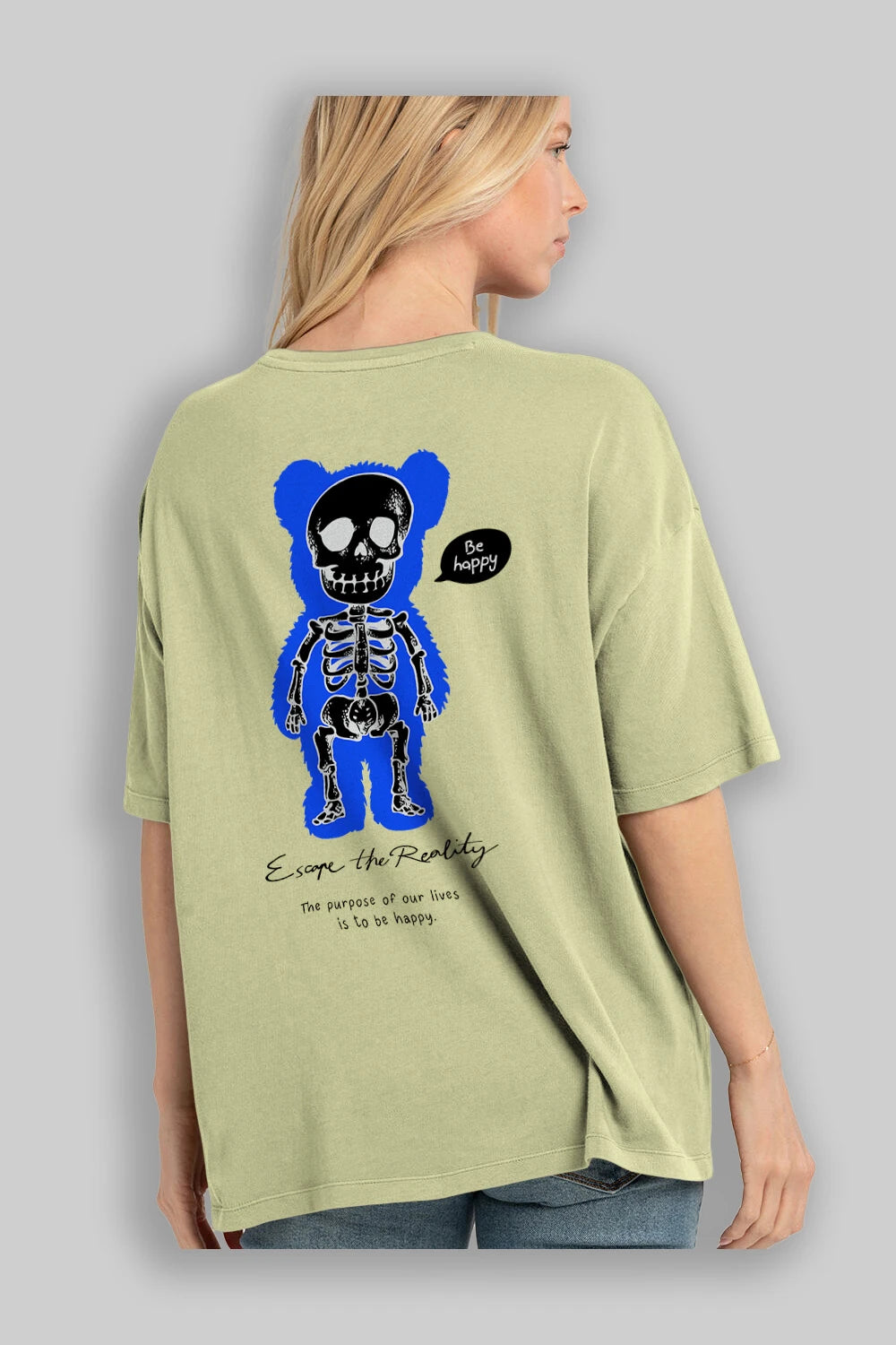 Be Happy Bear Arka Baskılı Oversize t-shirt Erkek Kadın Unisex