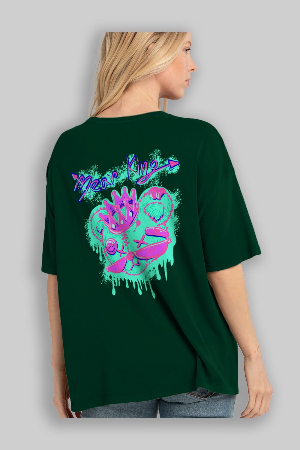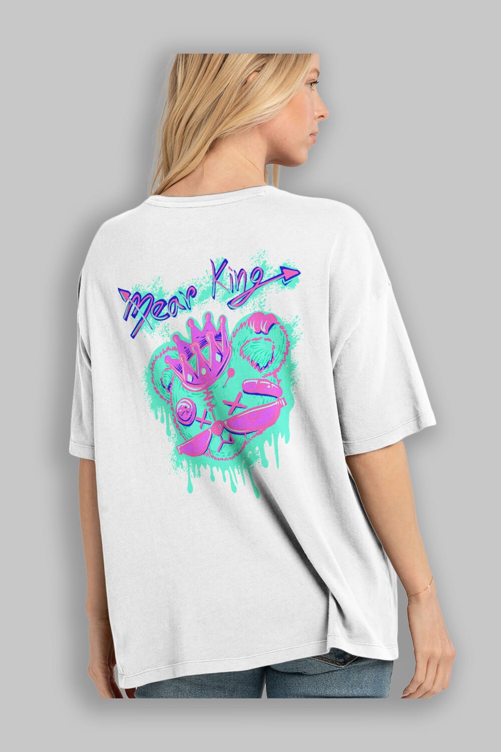 Hem erkekler hem de kadınlar için uygun, taze, modern bir baskıya sahip baskılı oversize t-shirt.