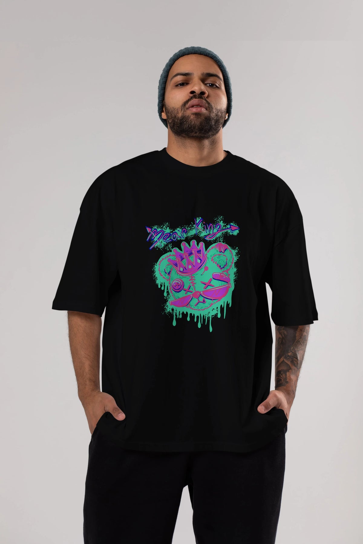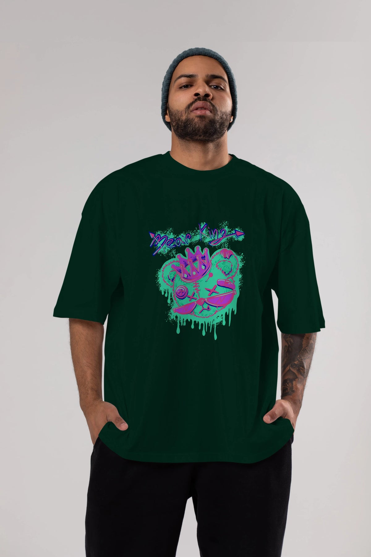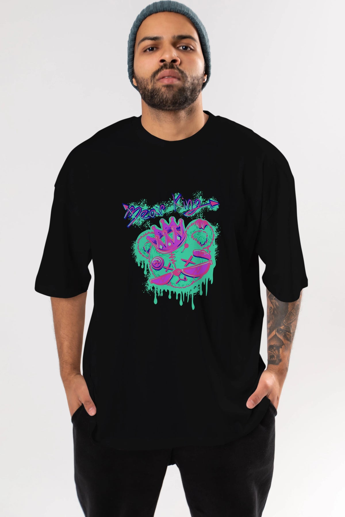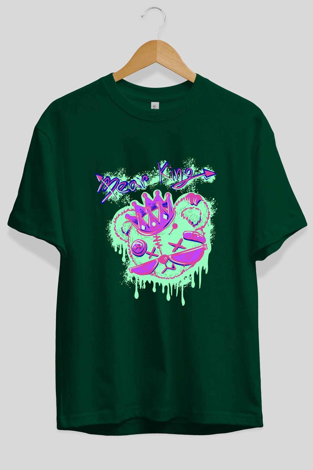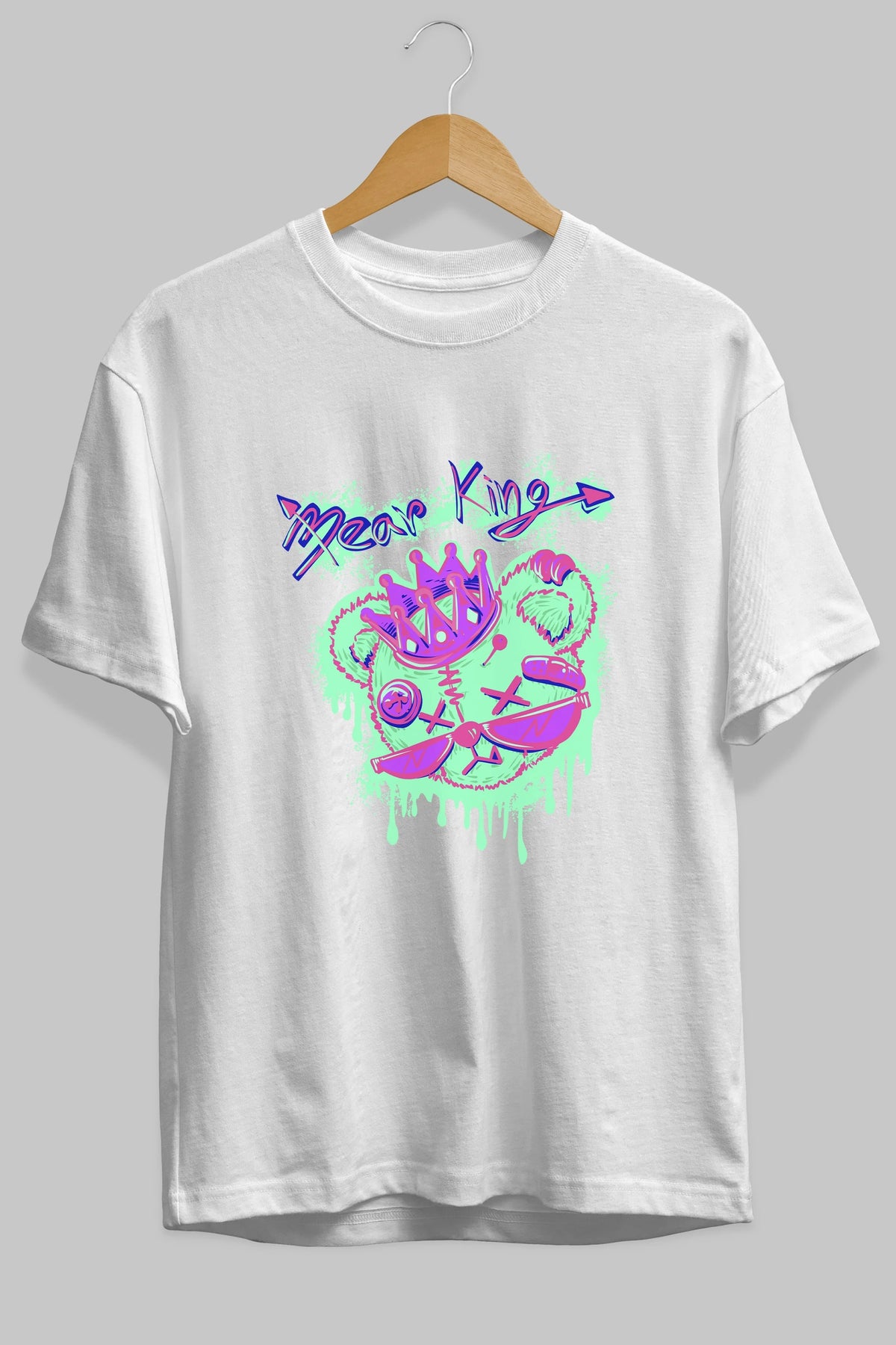Bear King Ön Baskılı Oversize t-shirt Erkek Kadın Unisex