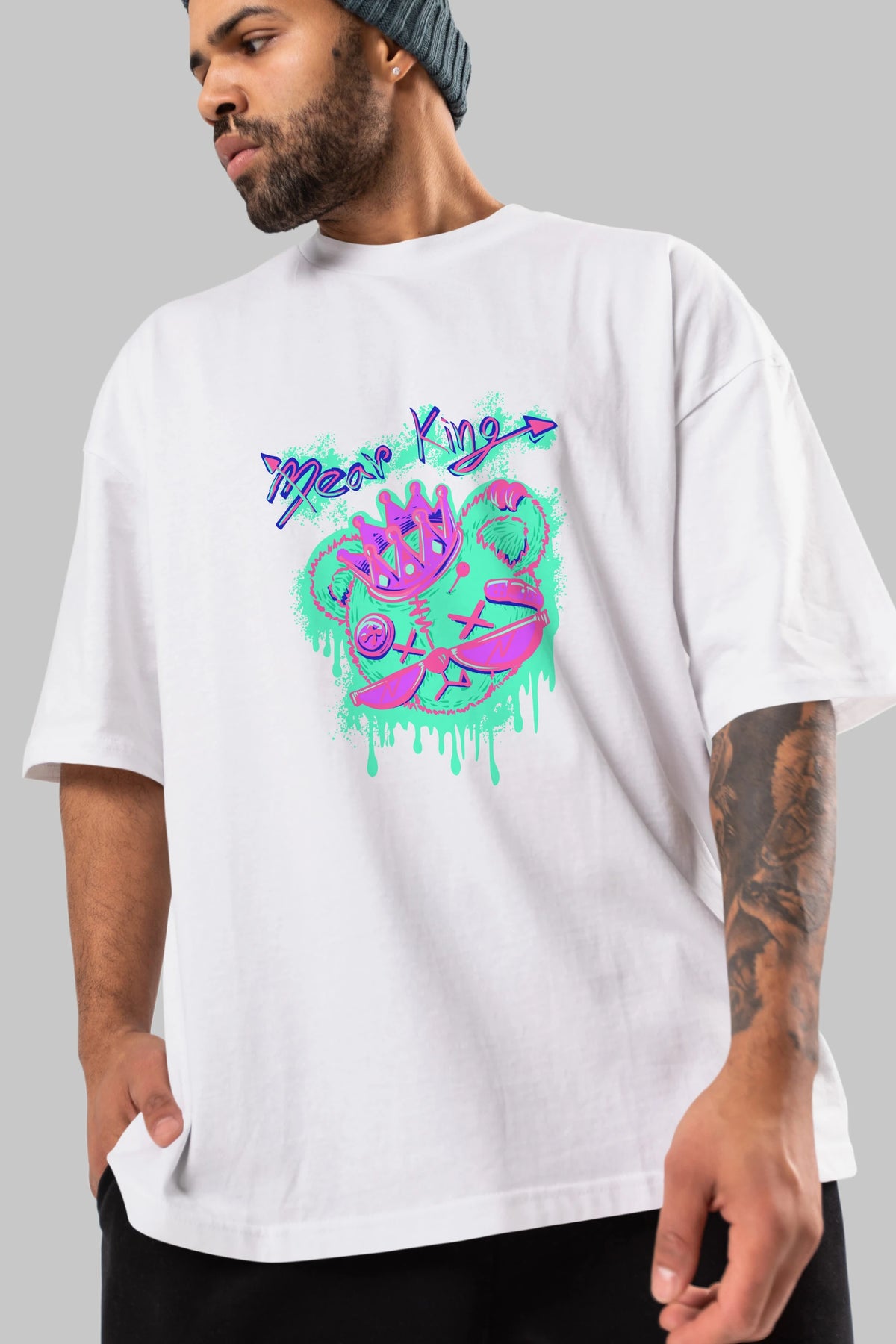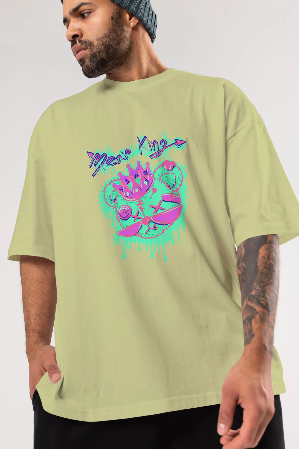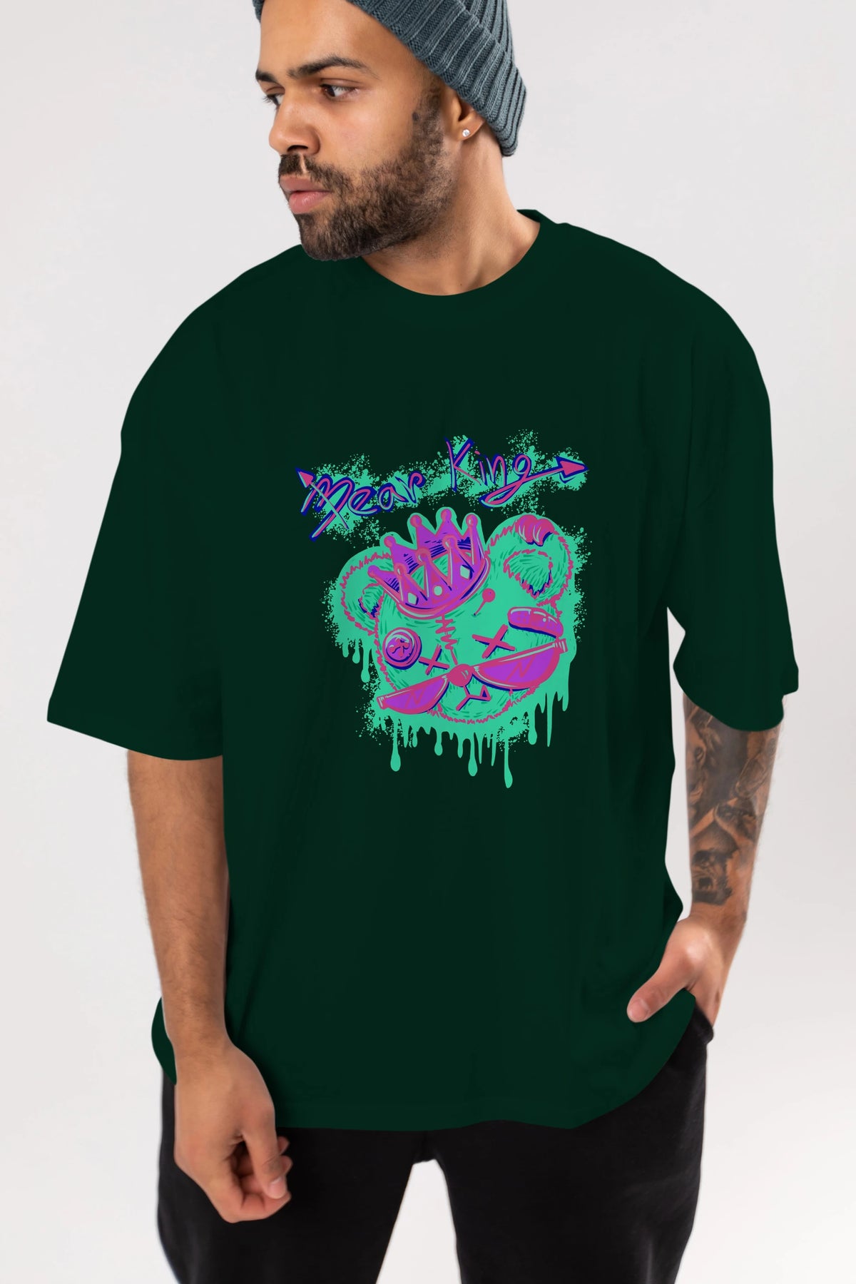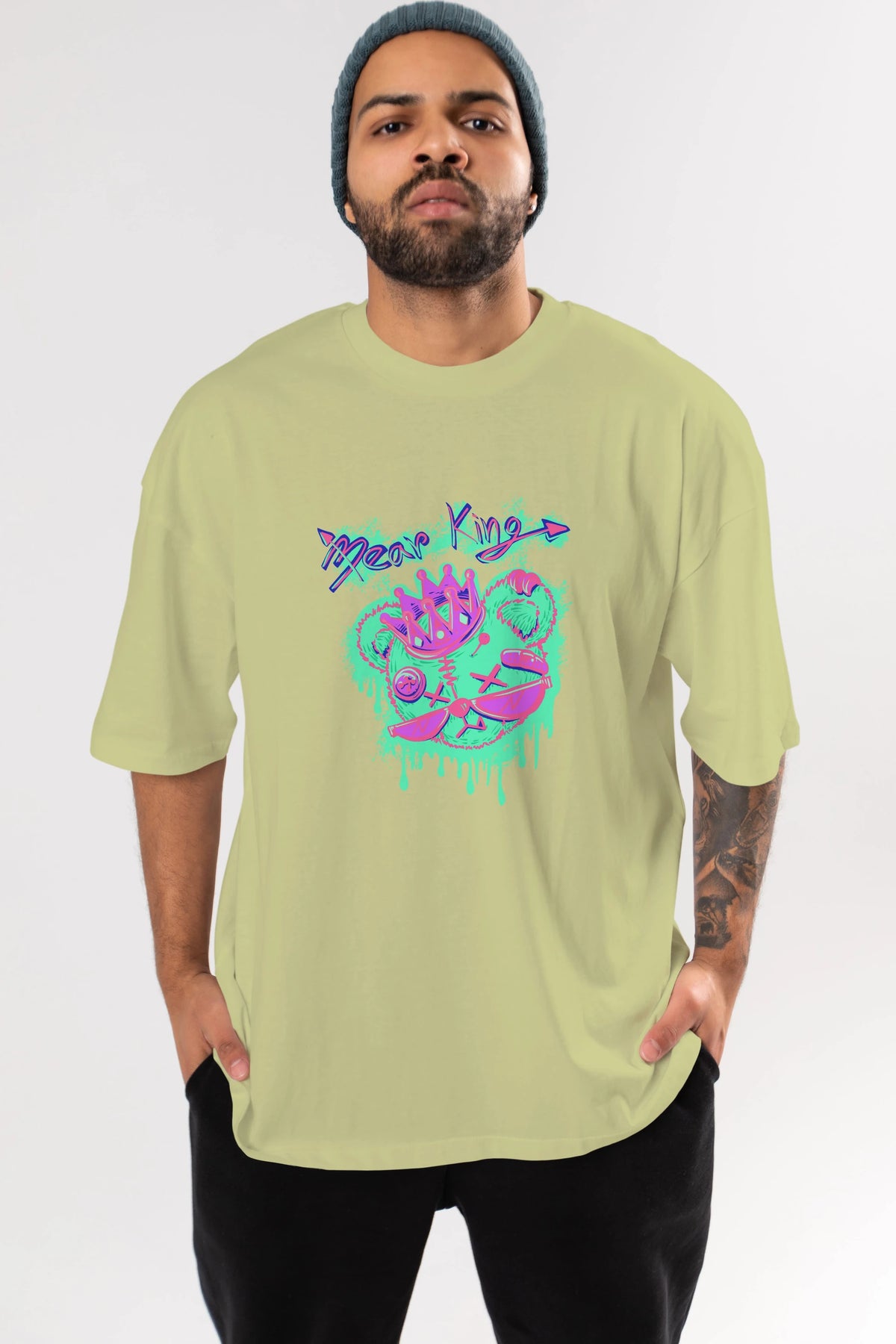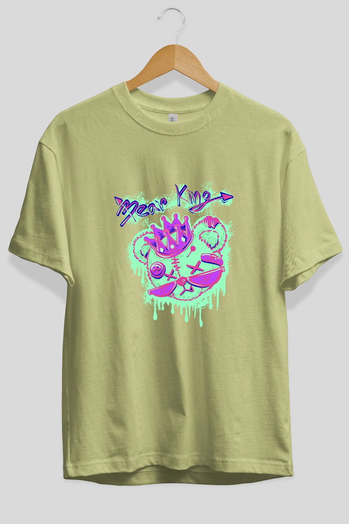 Bear King Ön Baskılı Oversize t-shirt Erkek Kadın Unisex