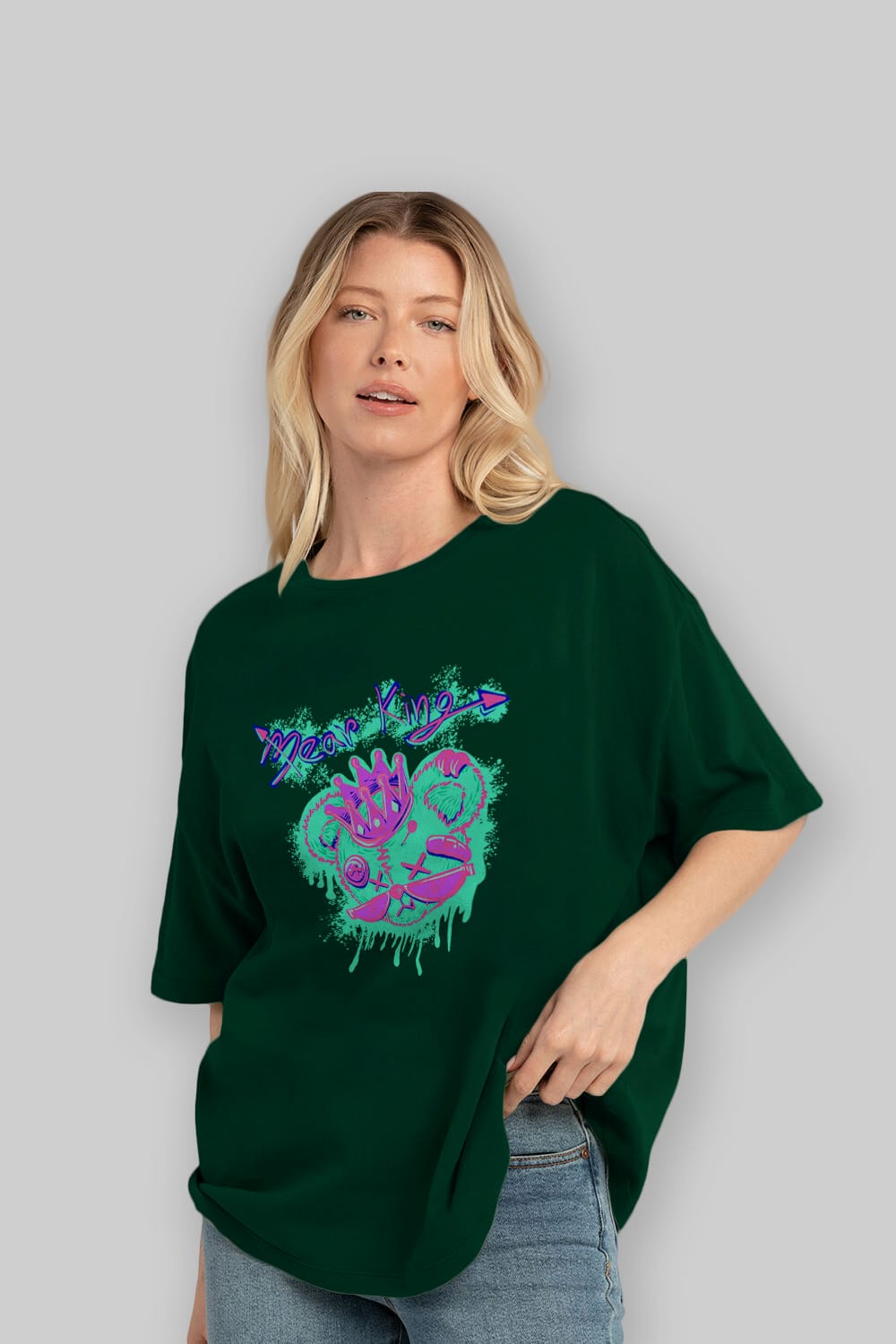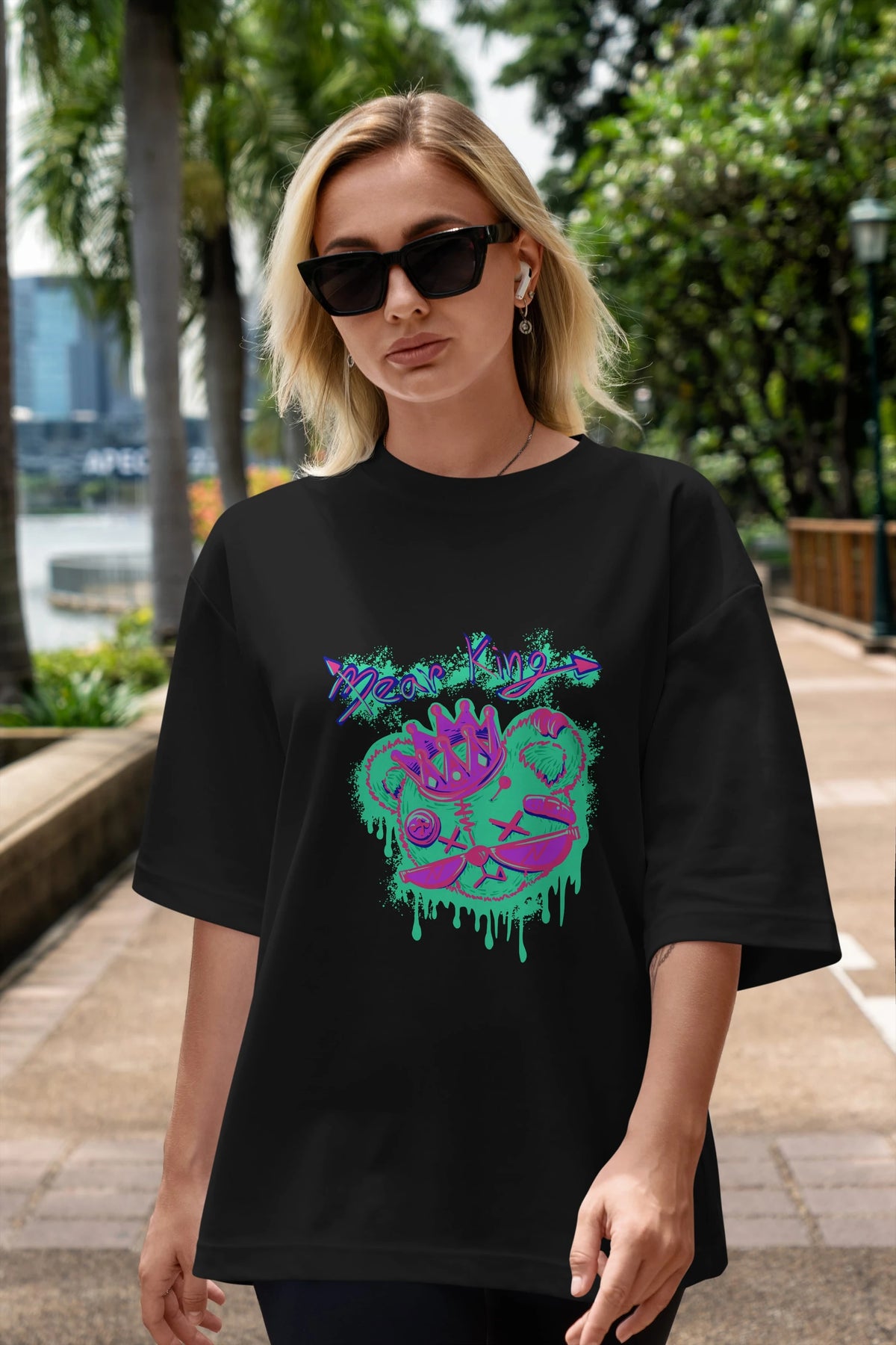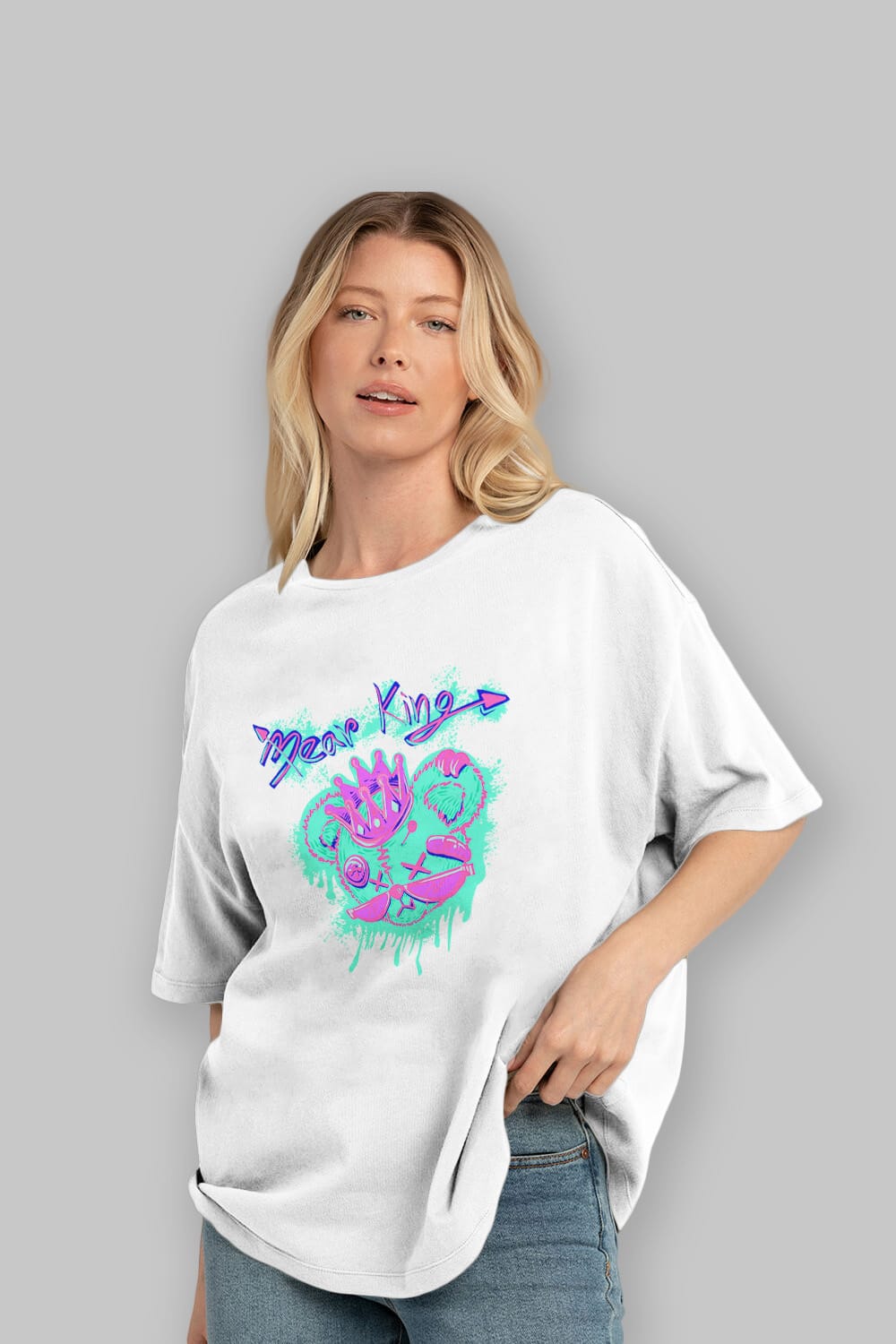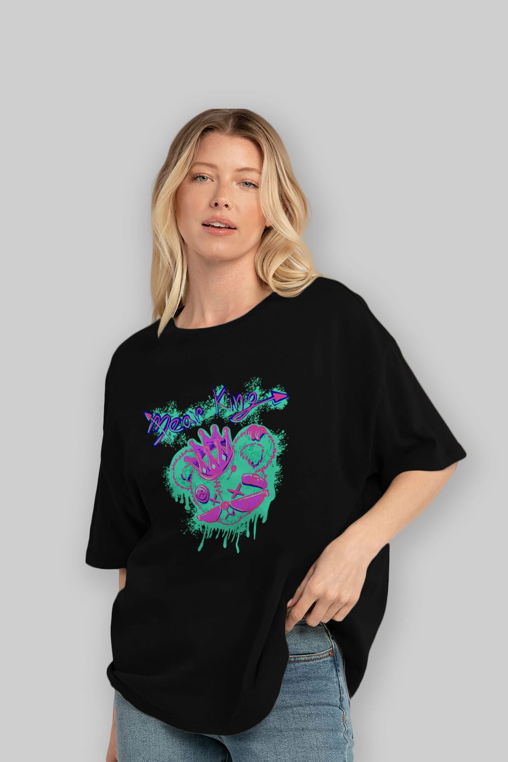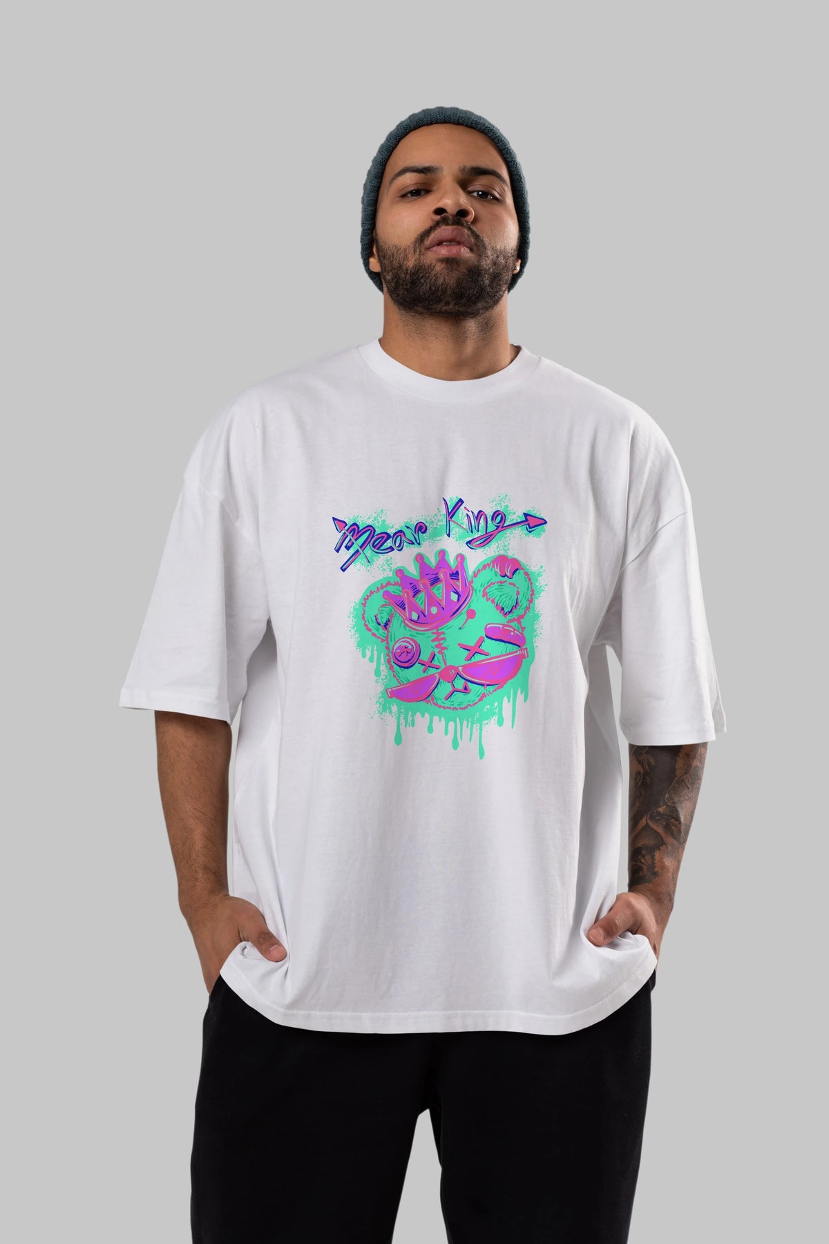 Bear King Ön Baskılı Oversize t-shirt Erkek Kadın Unisex