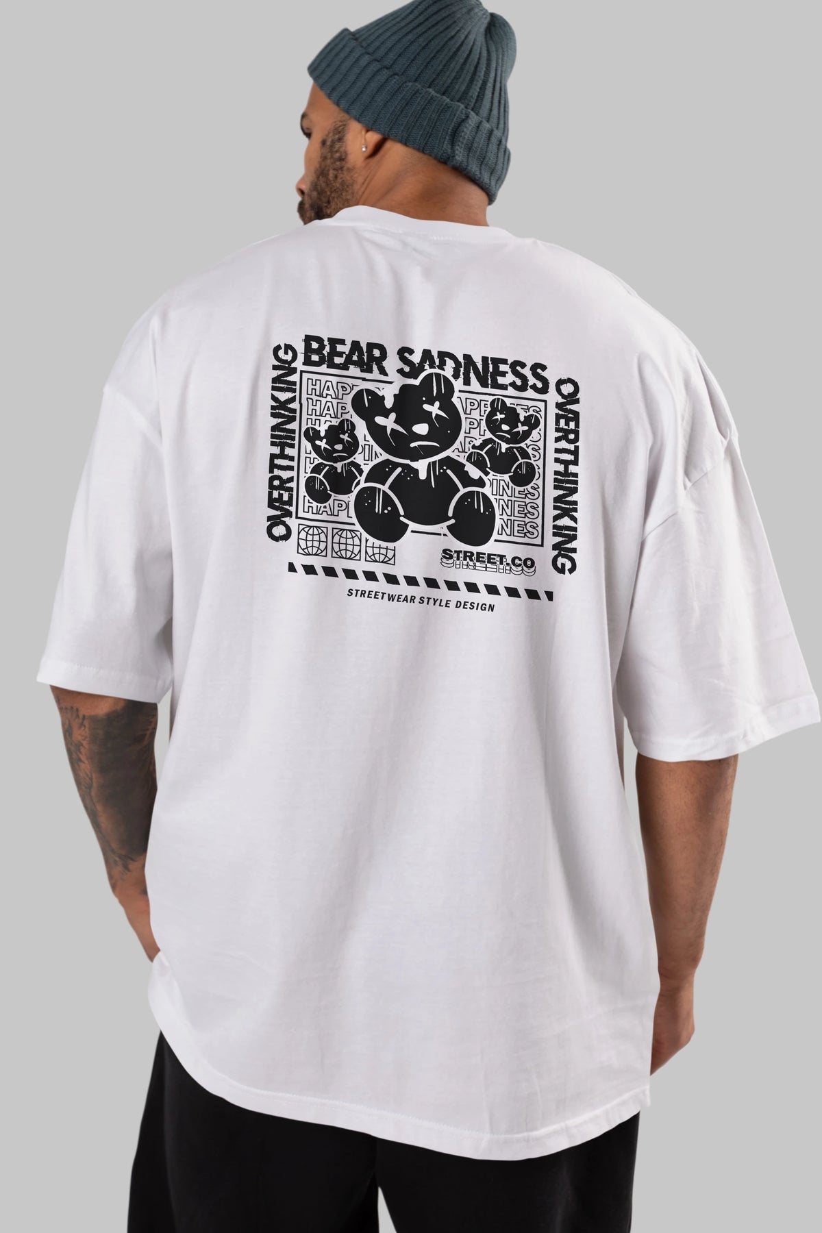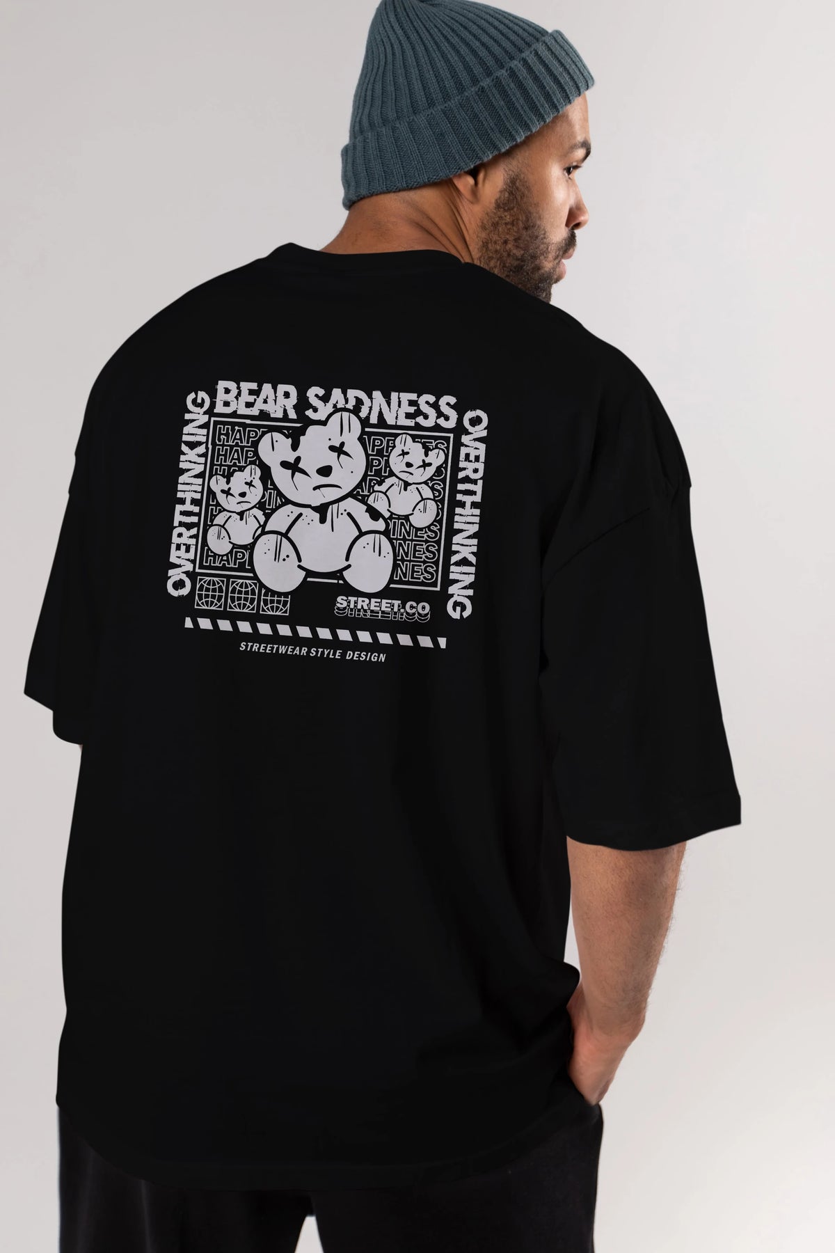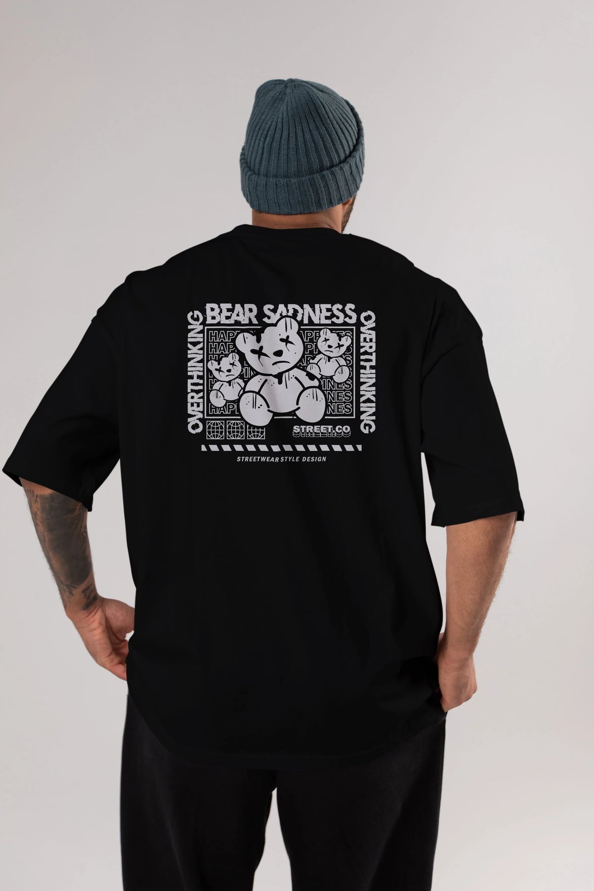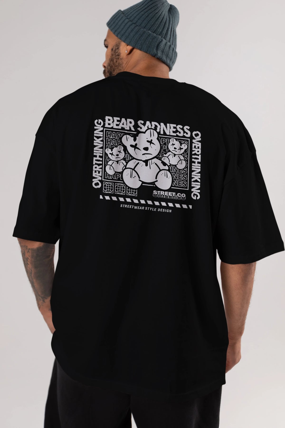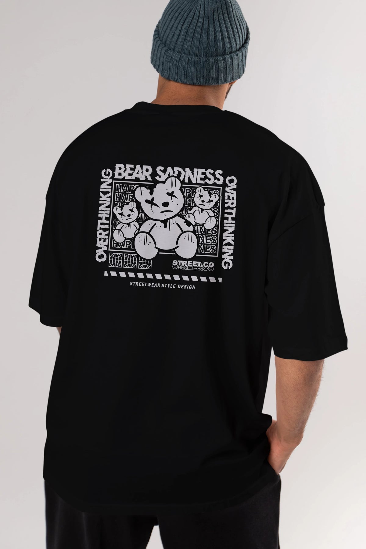 Bear Sadness 2 Arka Baskılı Oversize t-shirt Erkek Kadın Unisex