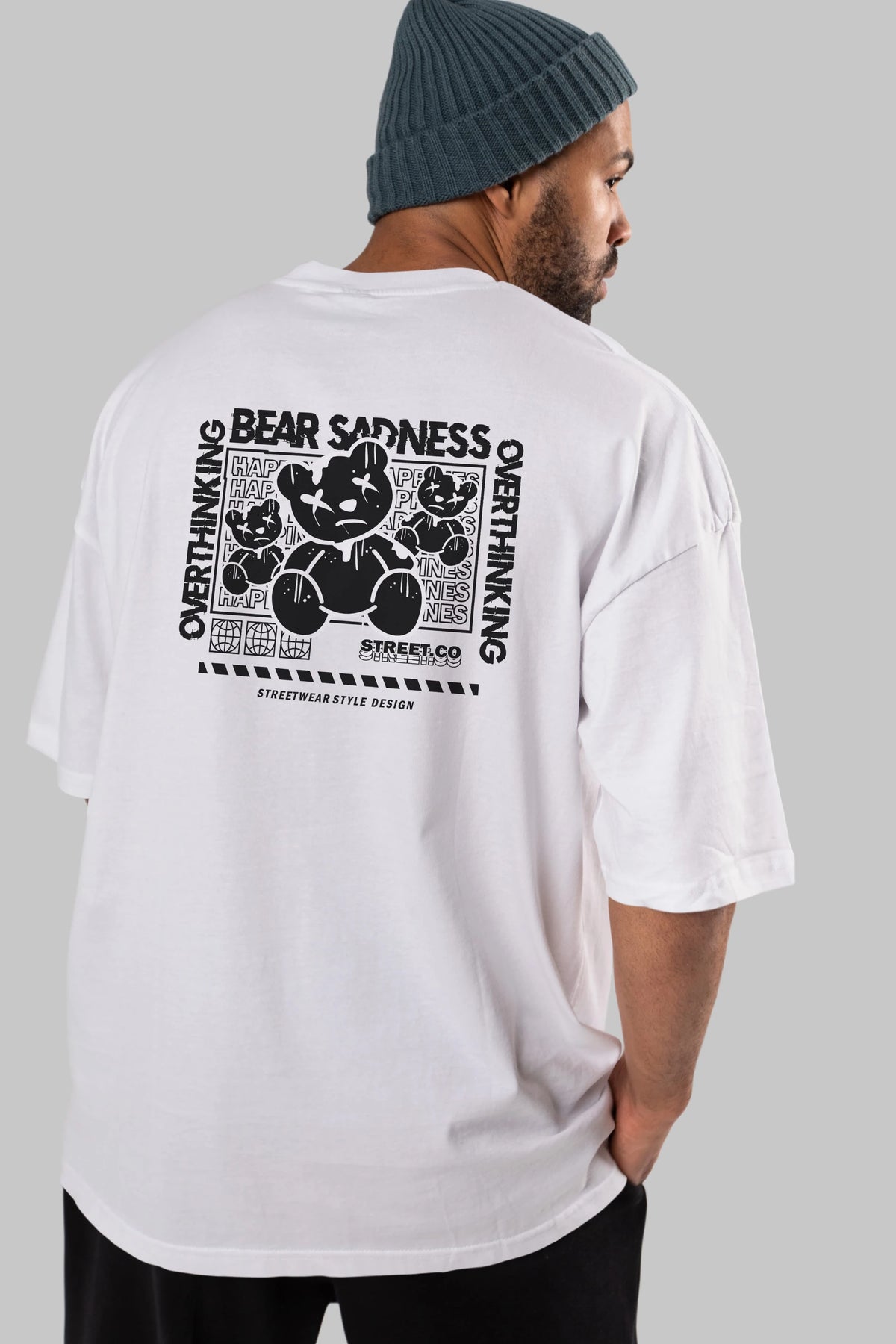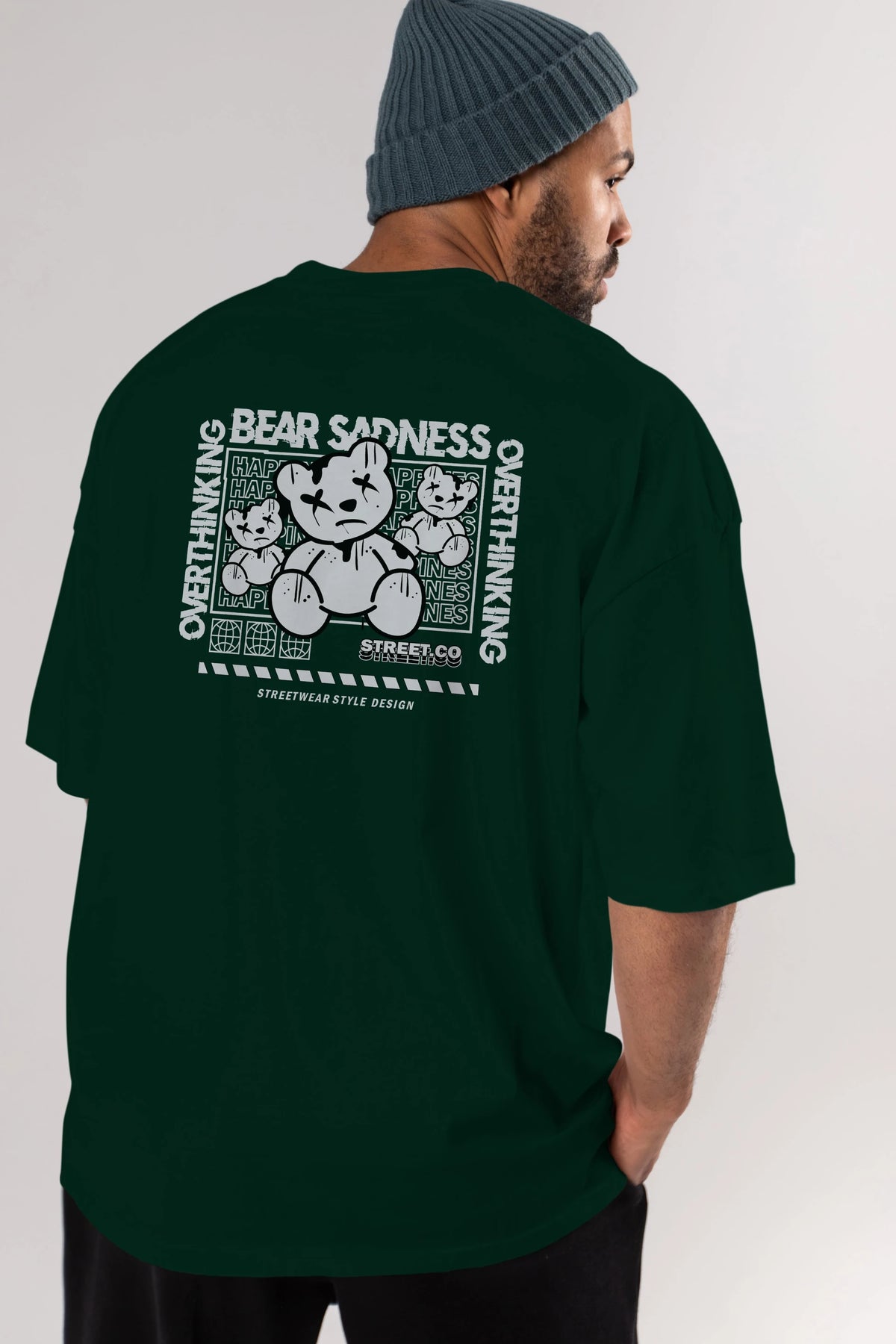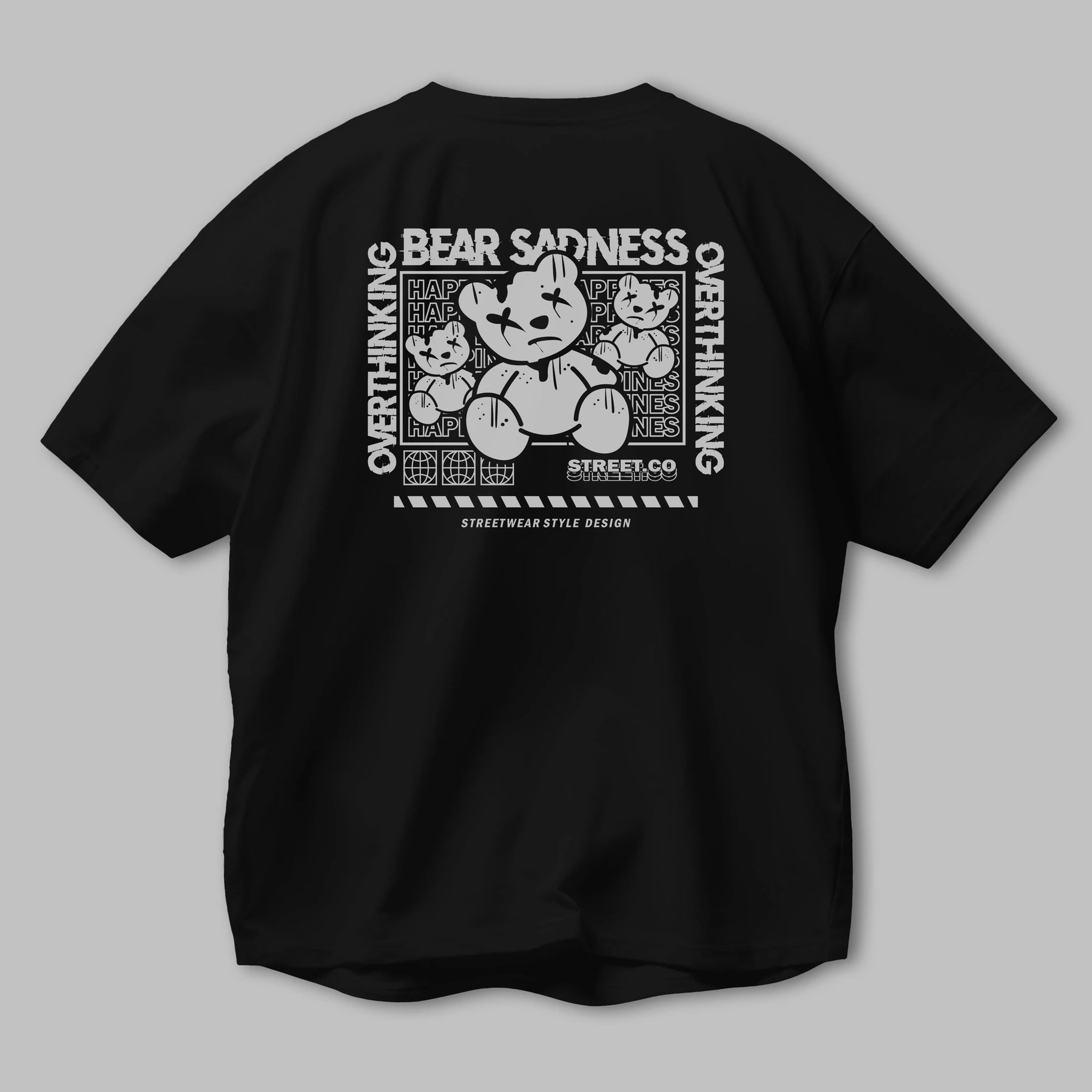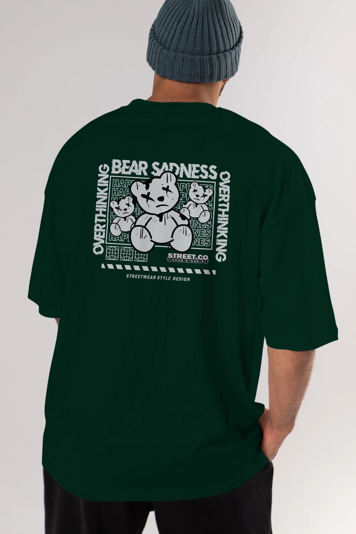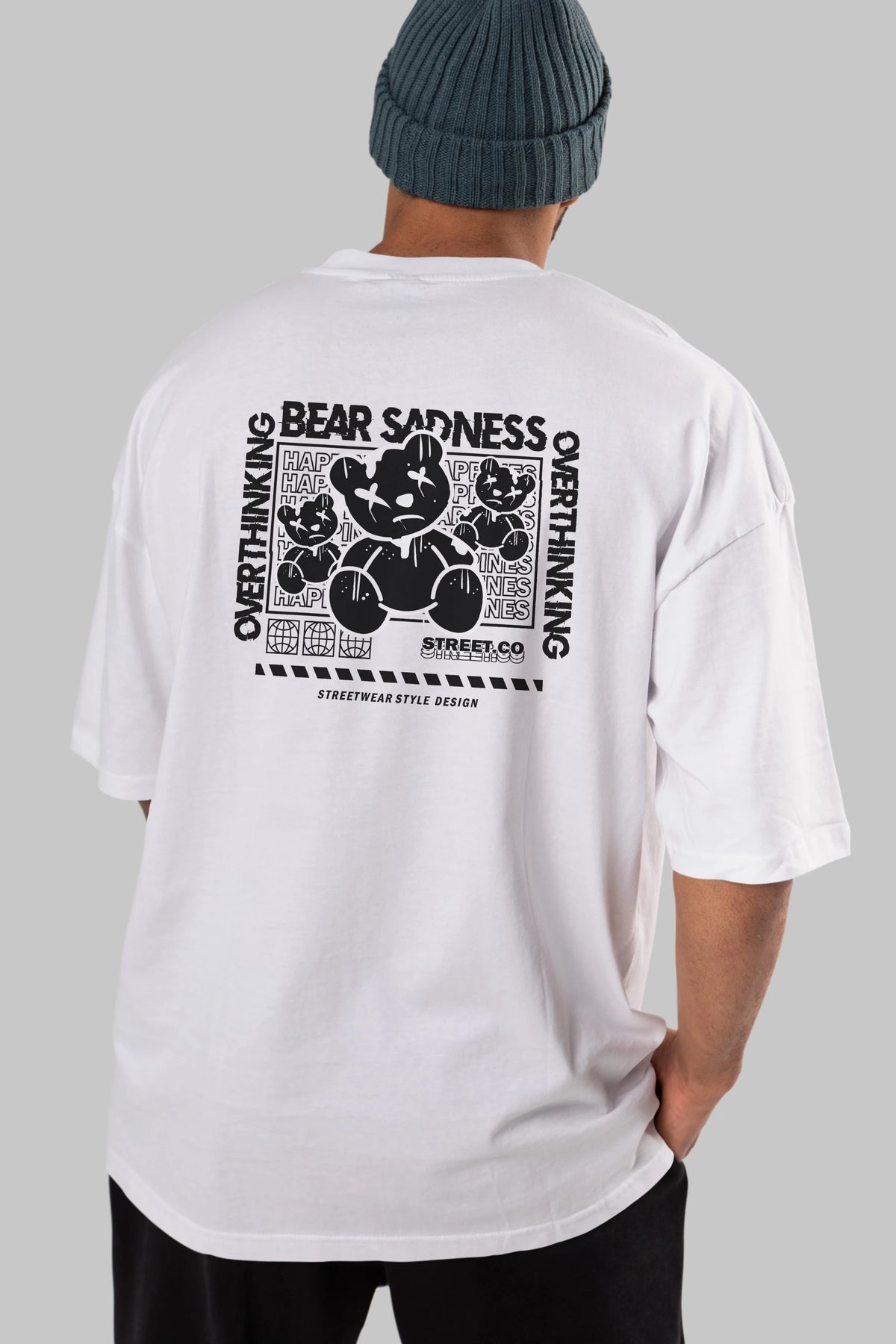 Bear Sadness 2 Arka Baskılı Oversize t-shirt Erkek Kadın Unisex