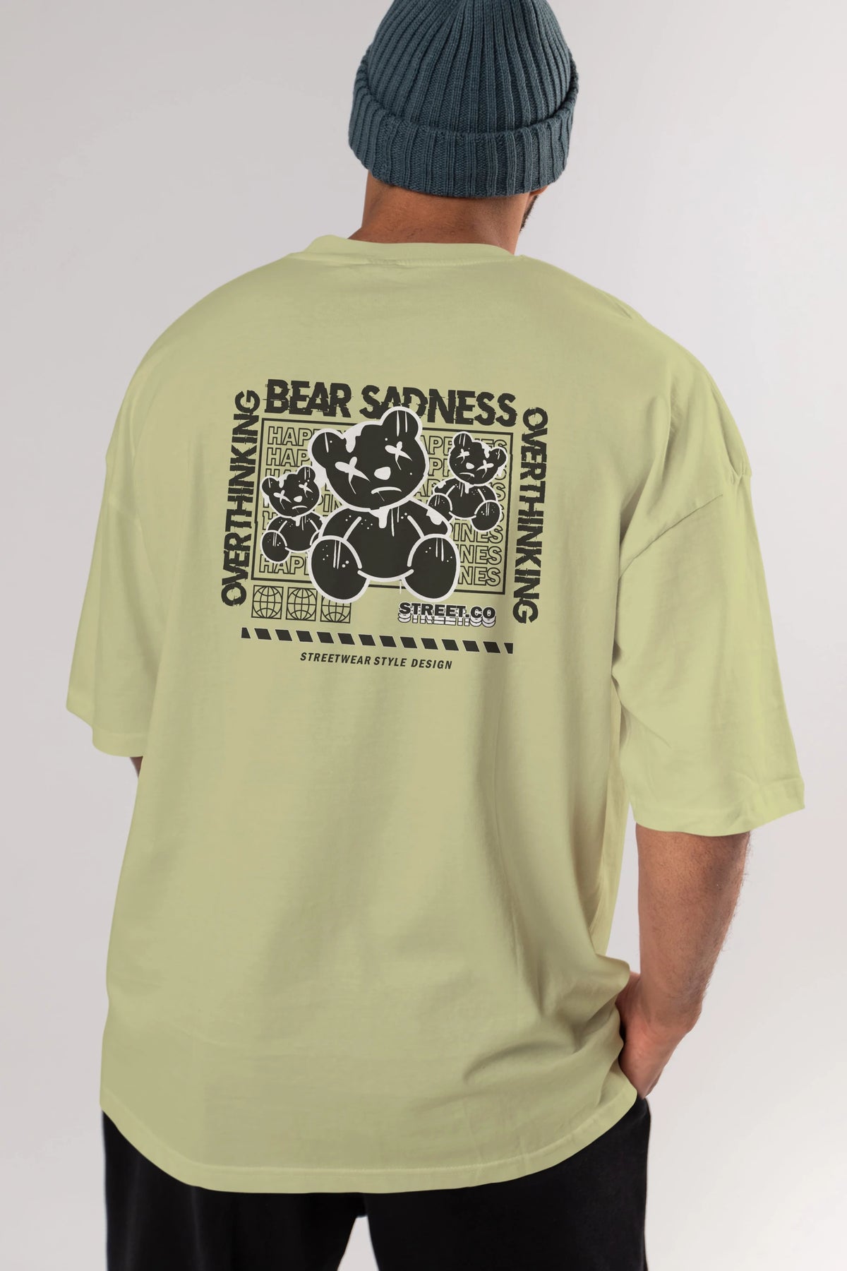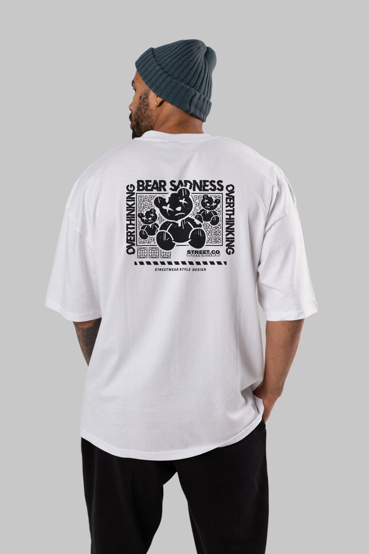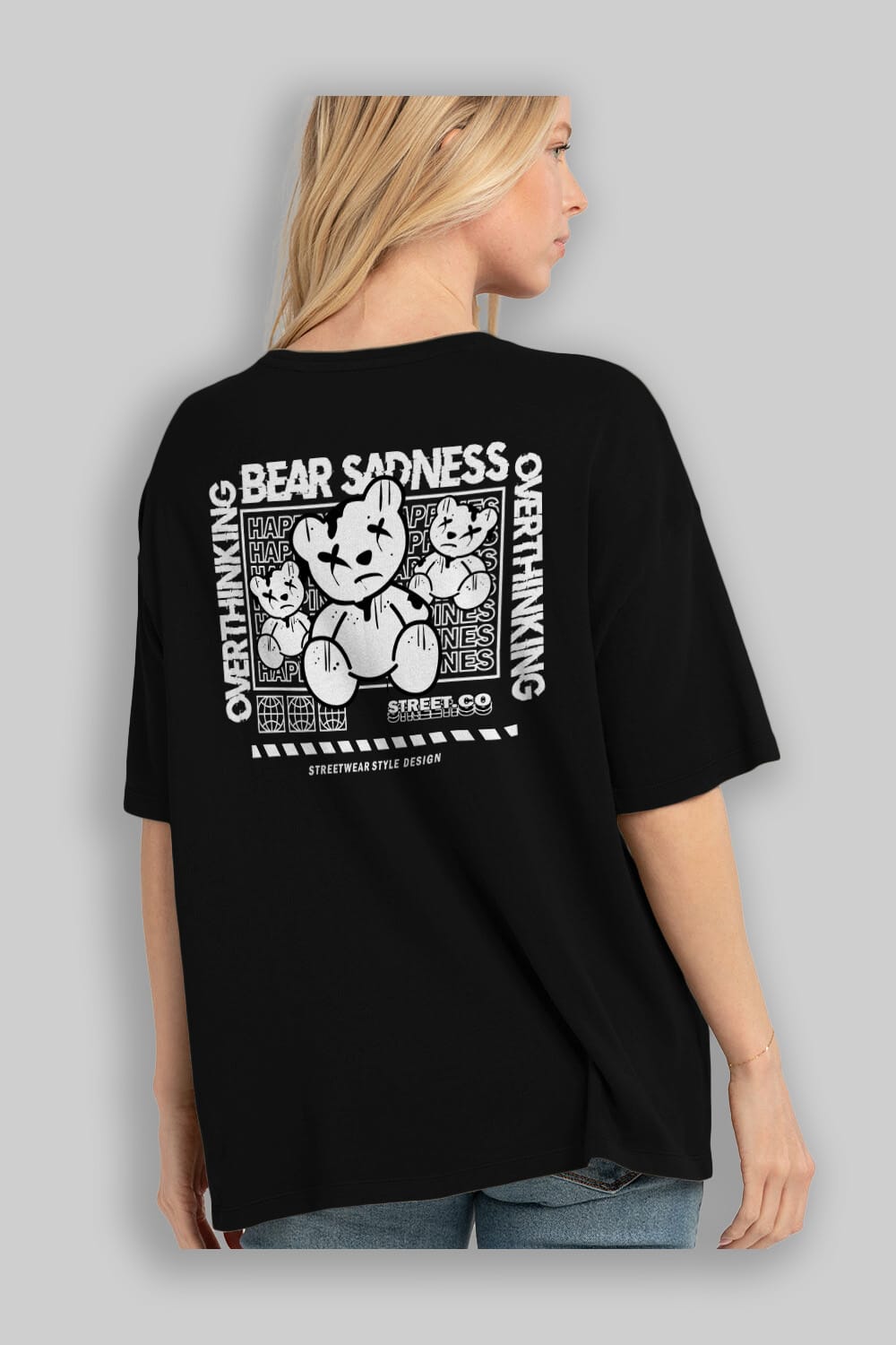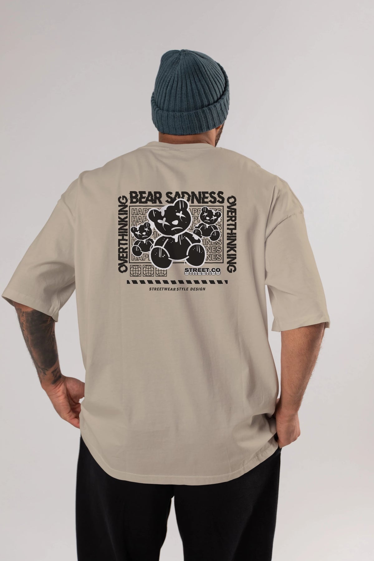 Bear Sadness 2 Arka Baskılı Oversize t-shirt Erkek Kadın Unisex