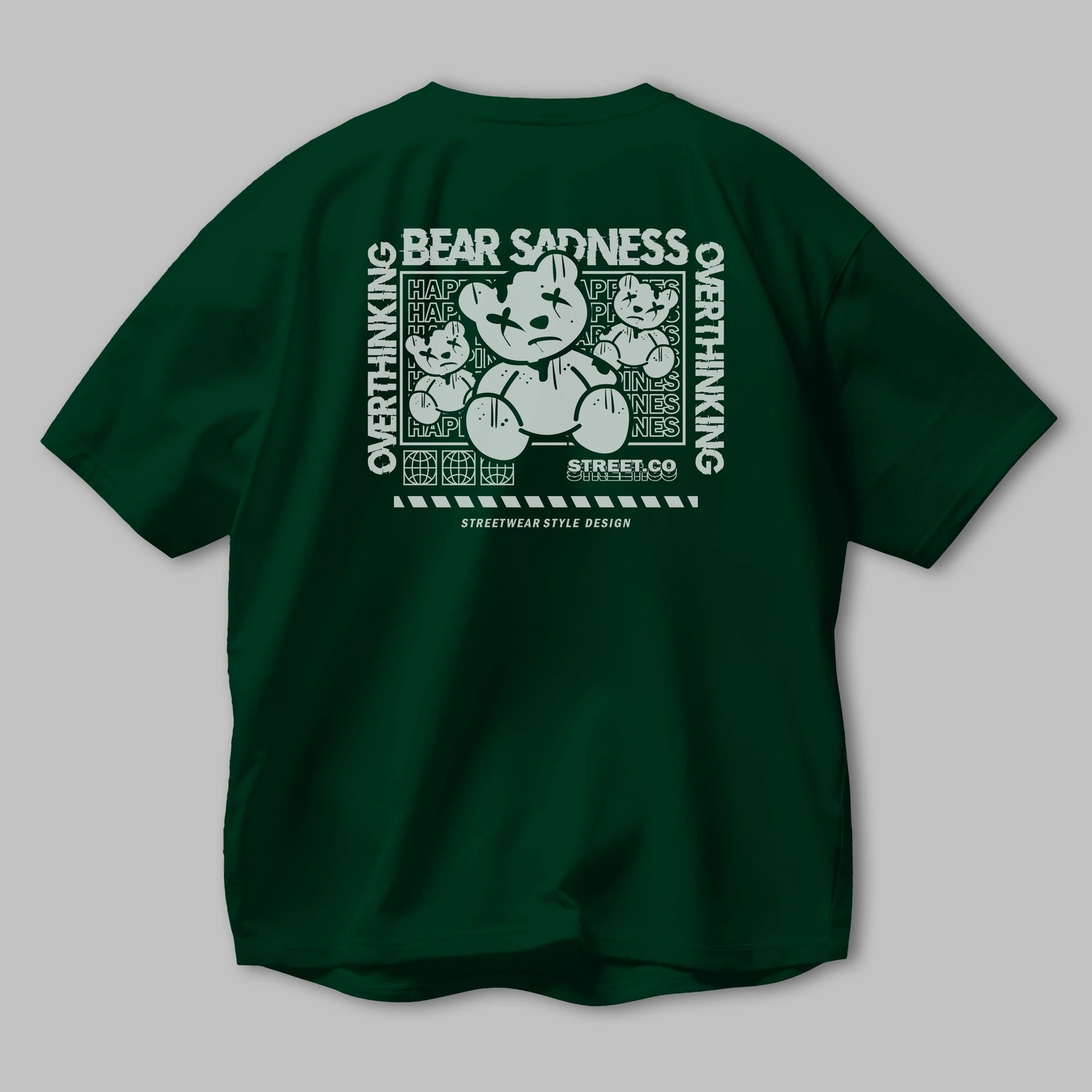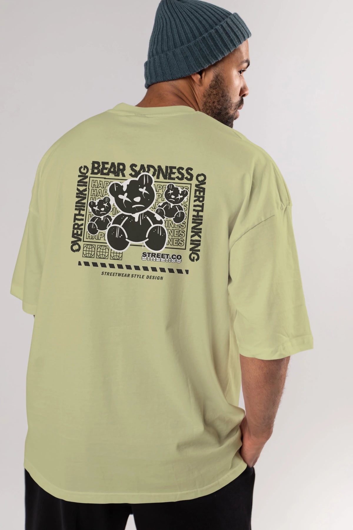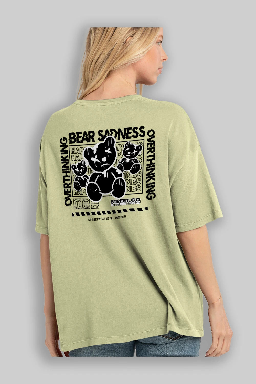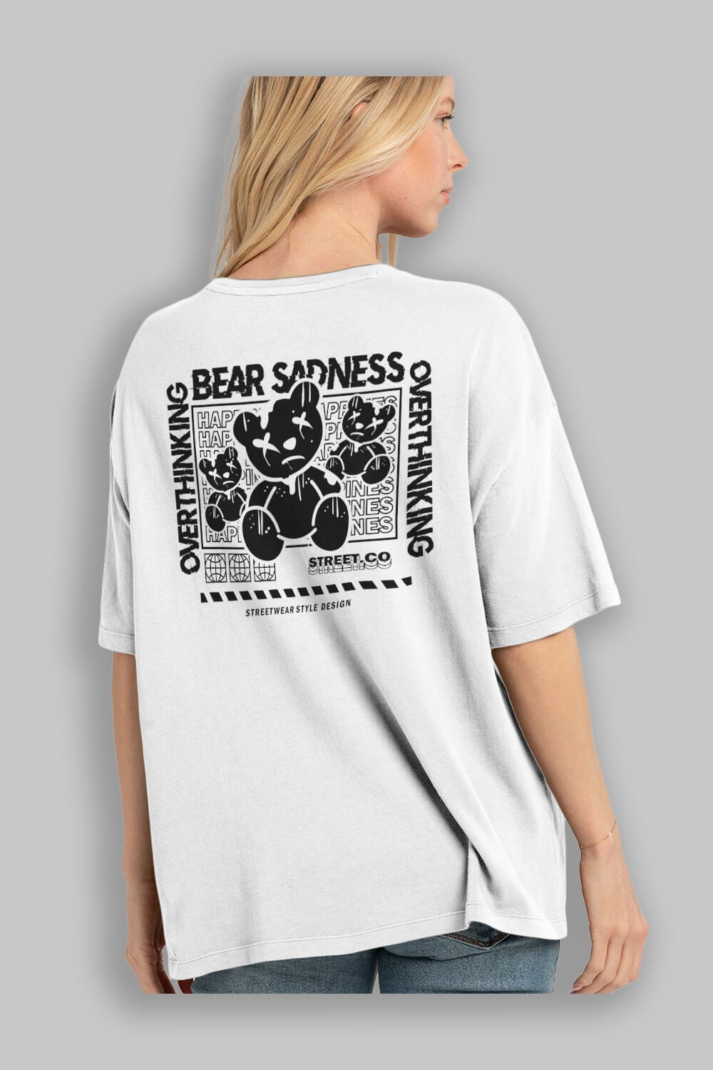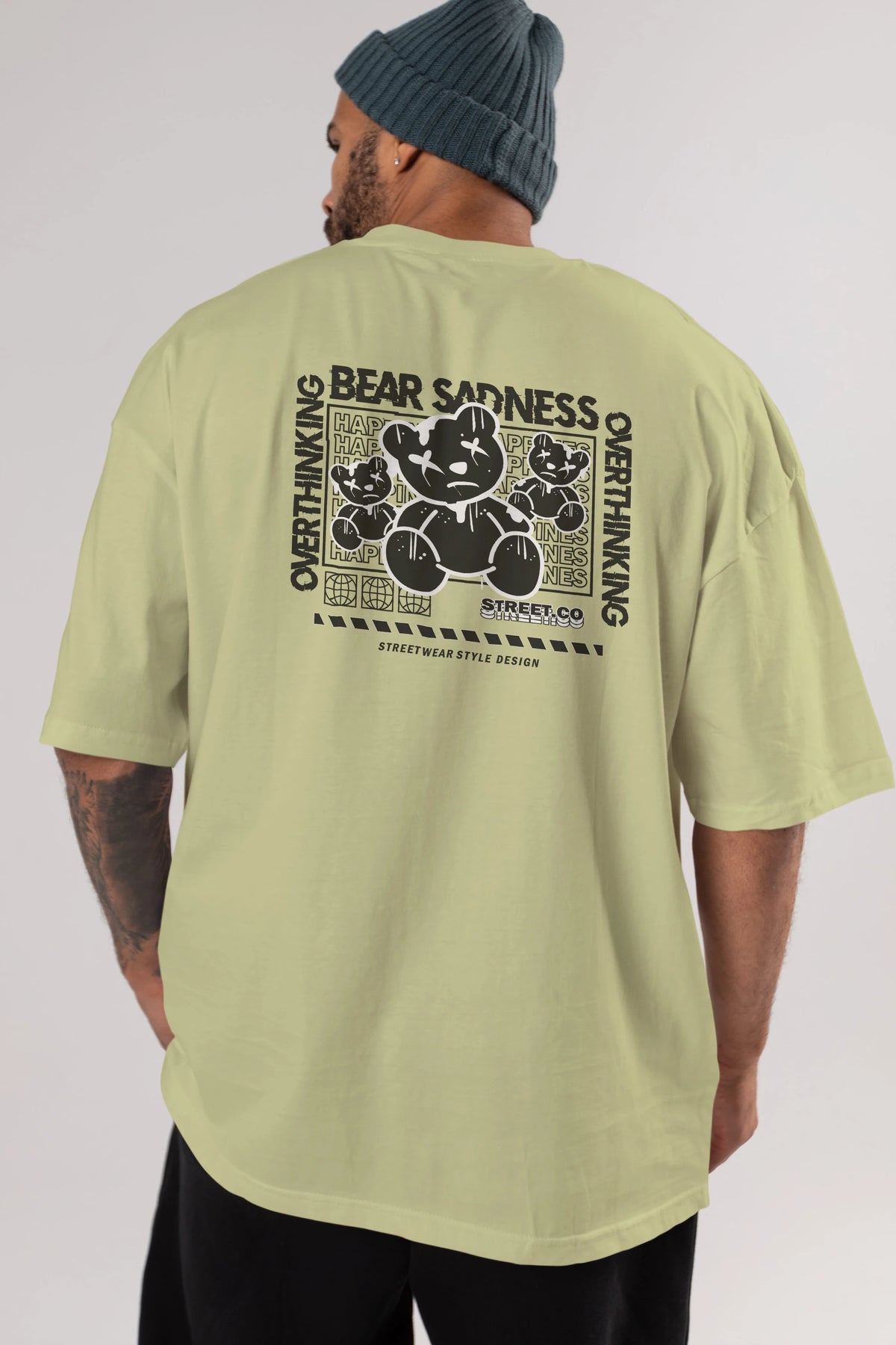 Bear Sadness 2 Arka Baskılı Oversize t-shirt Erkek Kadın Unisex