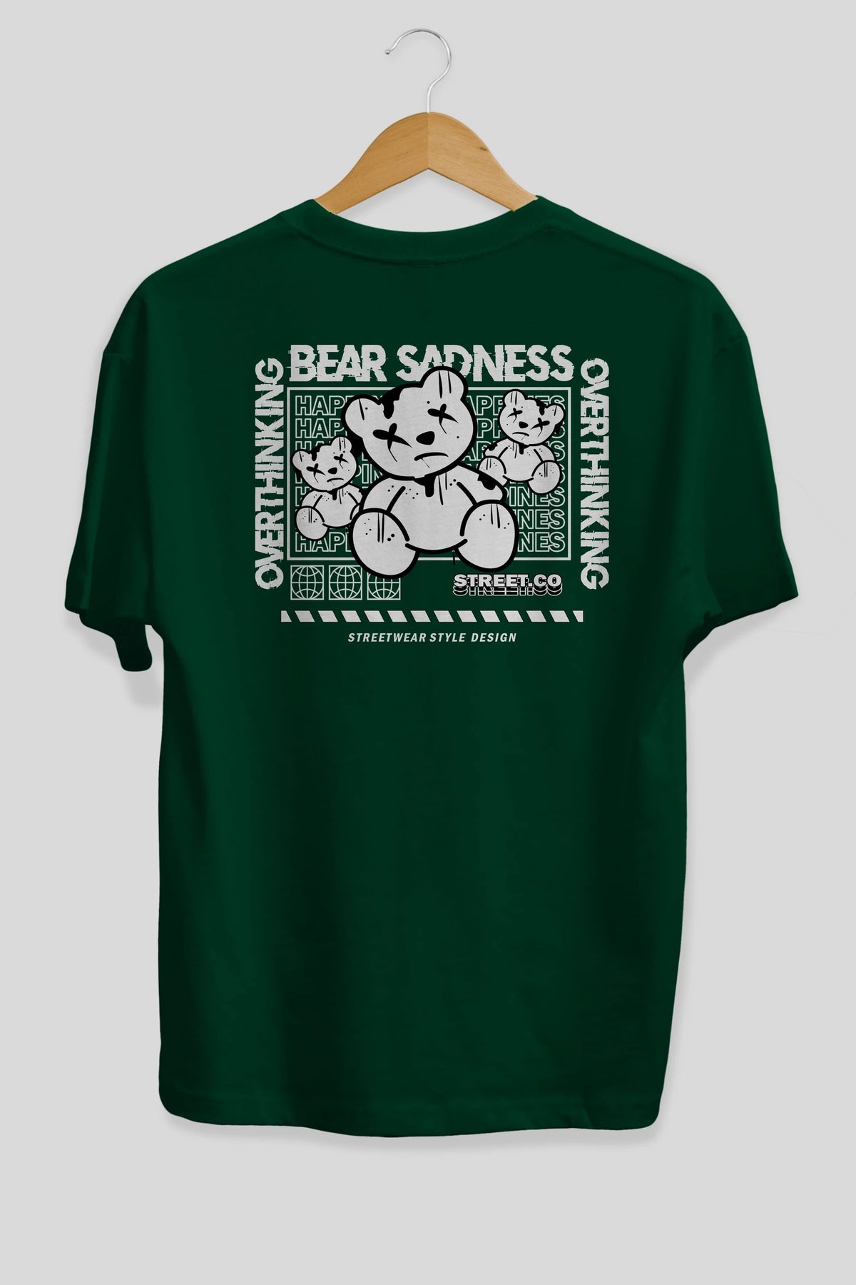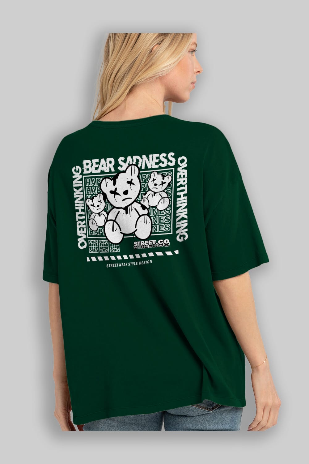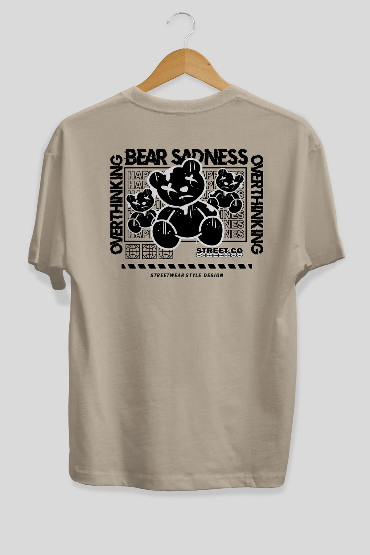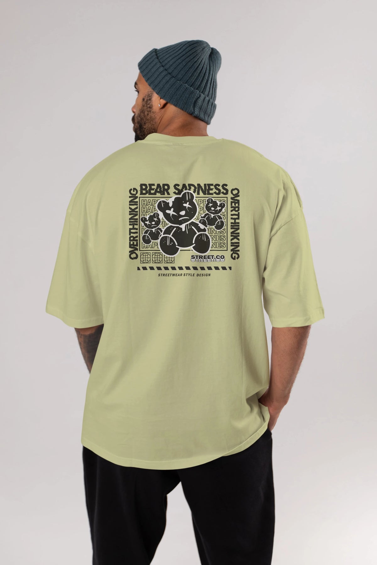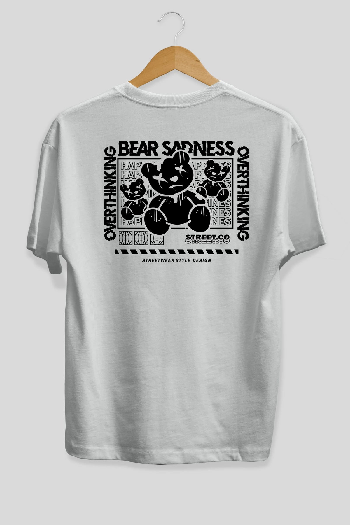 Bear Sadness 2 Arka Baskılı Oversize t-shirt Erkek Kadın Unisex