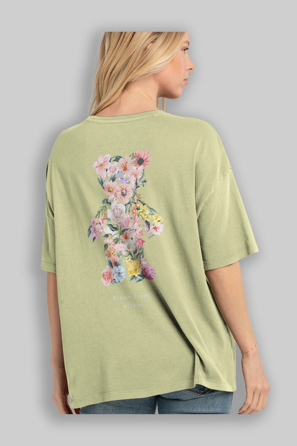 Bloom from Bear Arka Baskılı Oversize t-shirt Erkek Kadın Unisex
