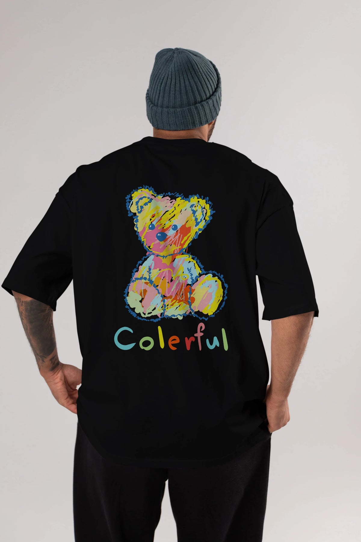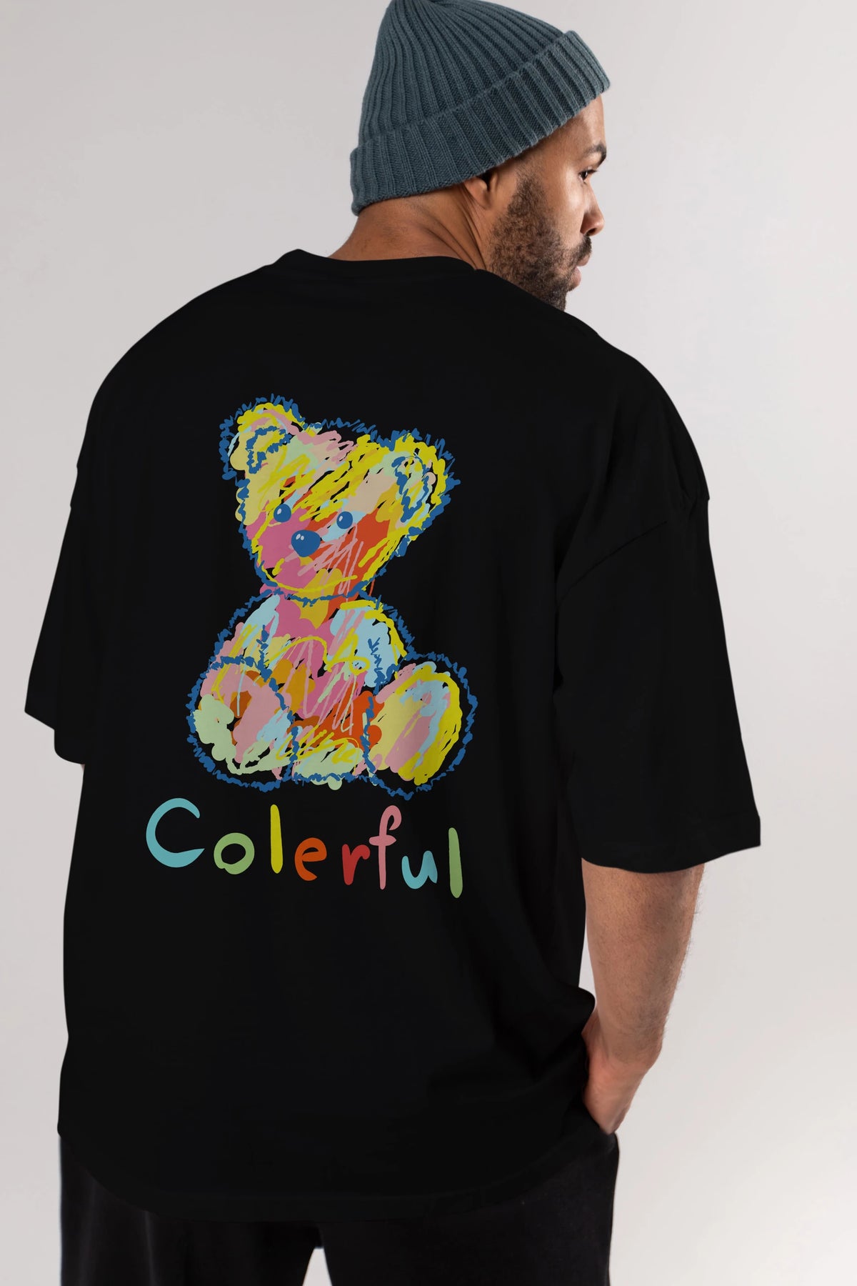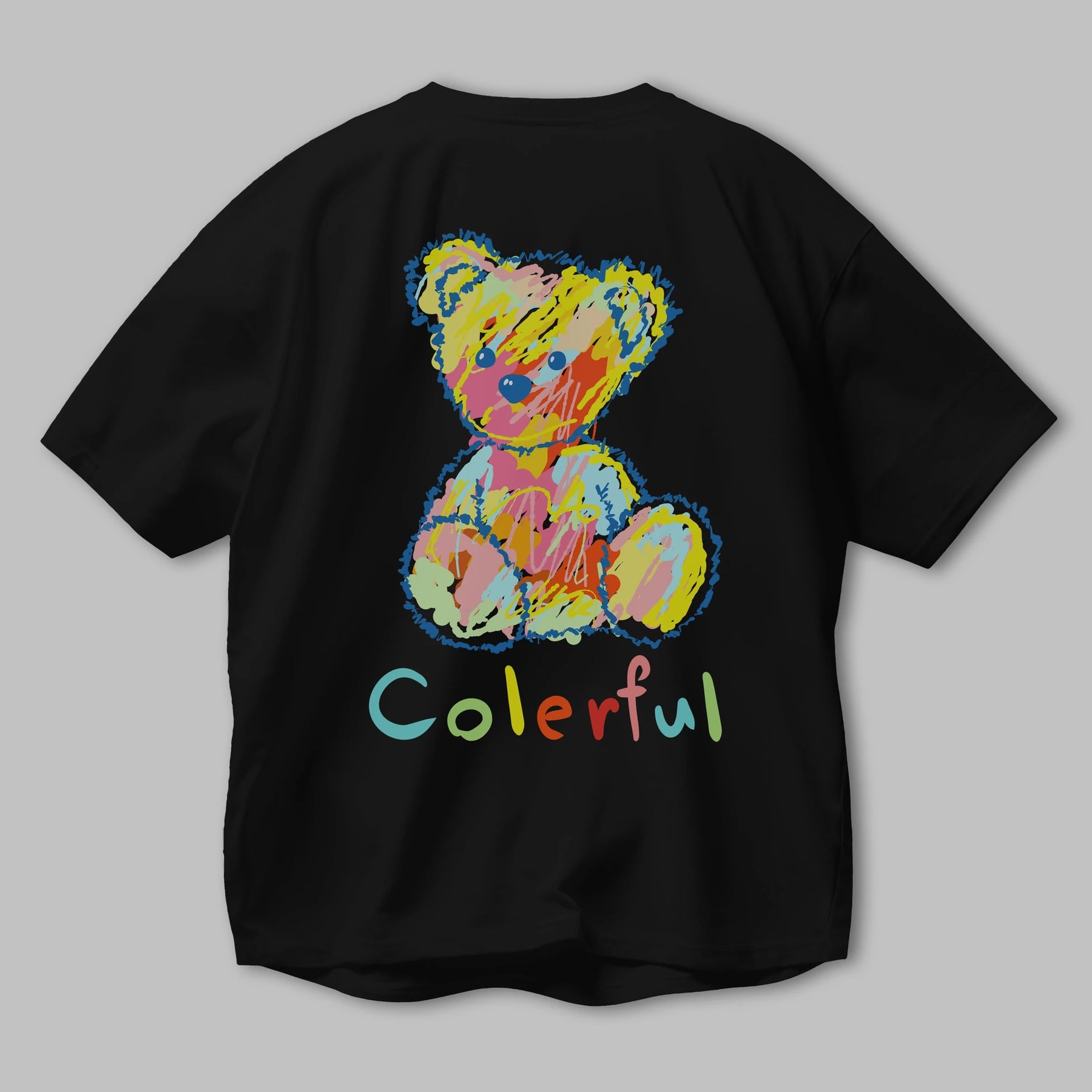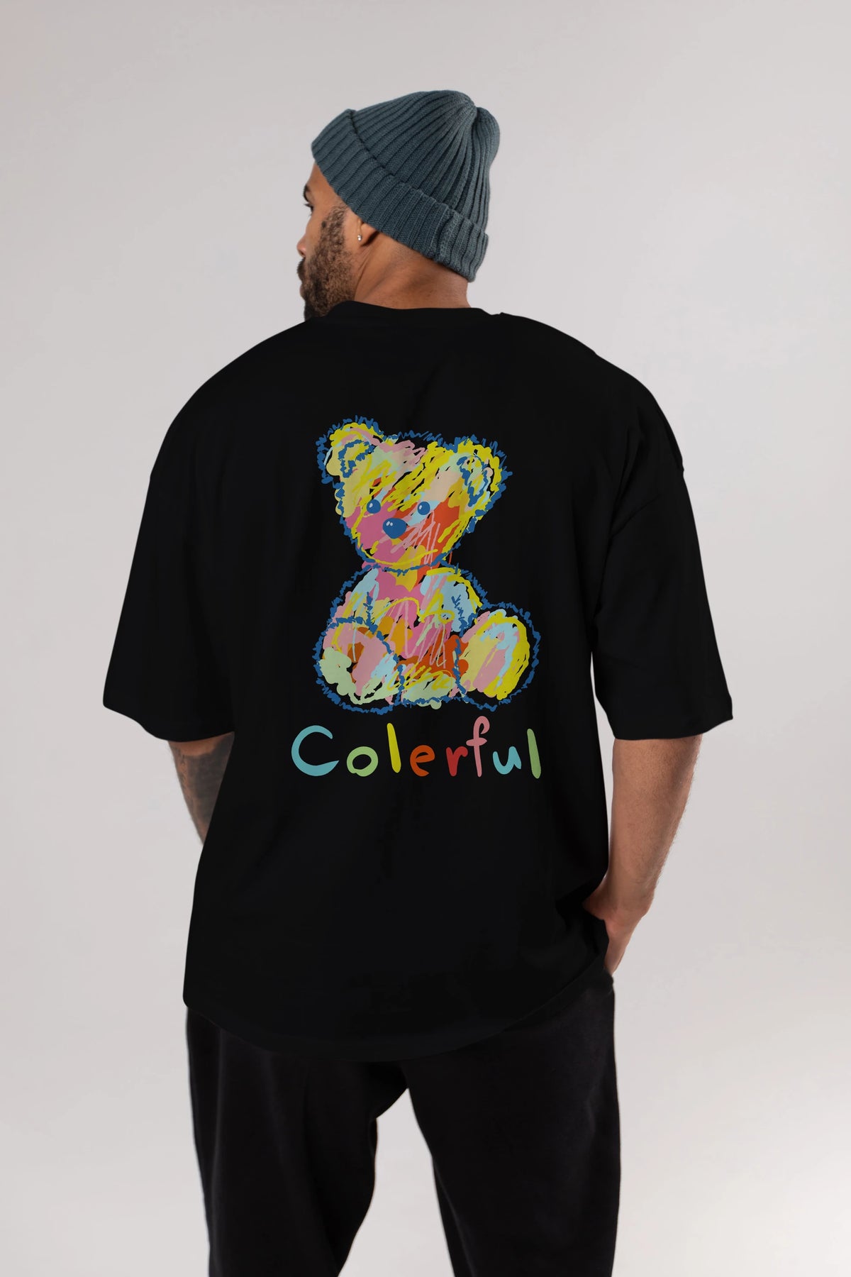 Colerful Bear Arka Baskılı Oversize t-shirt Erkek Kadın Unisex