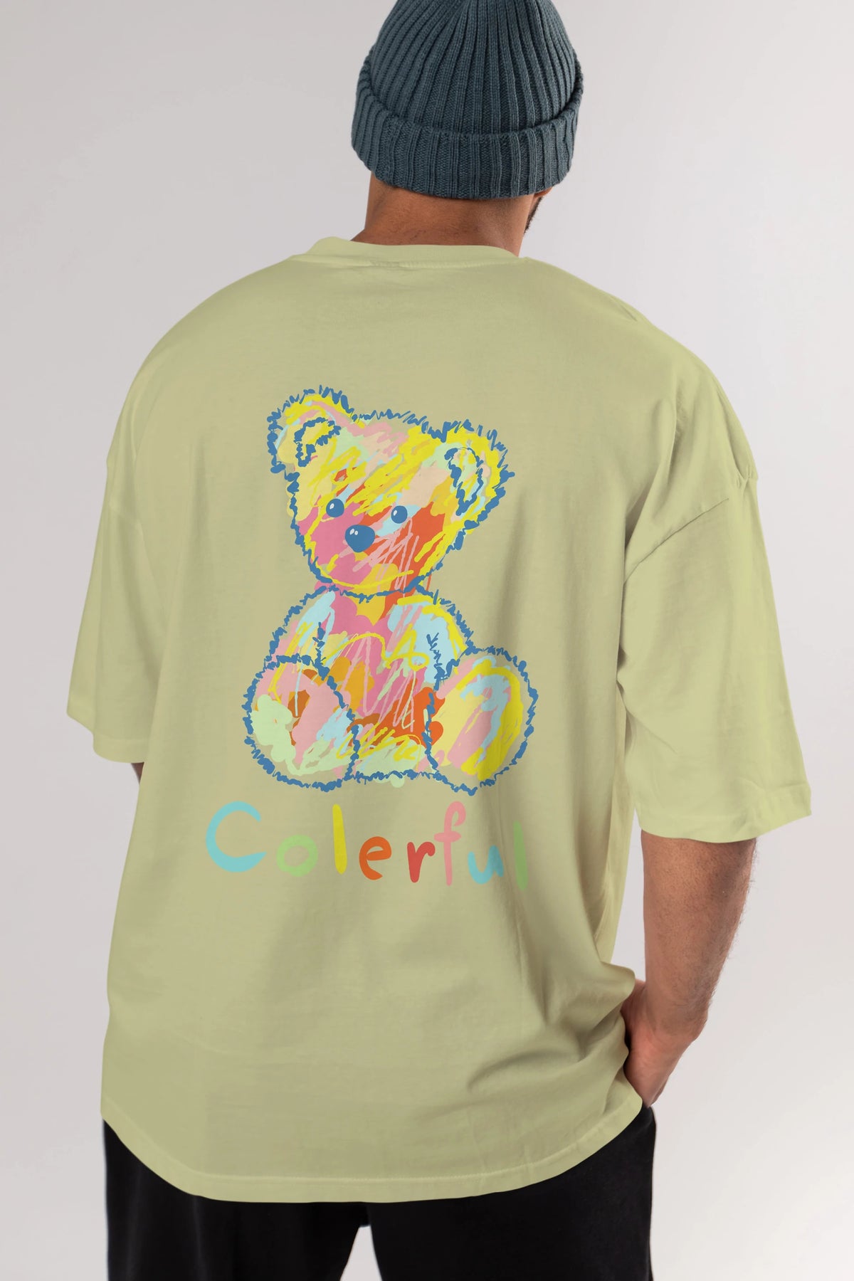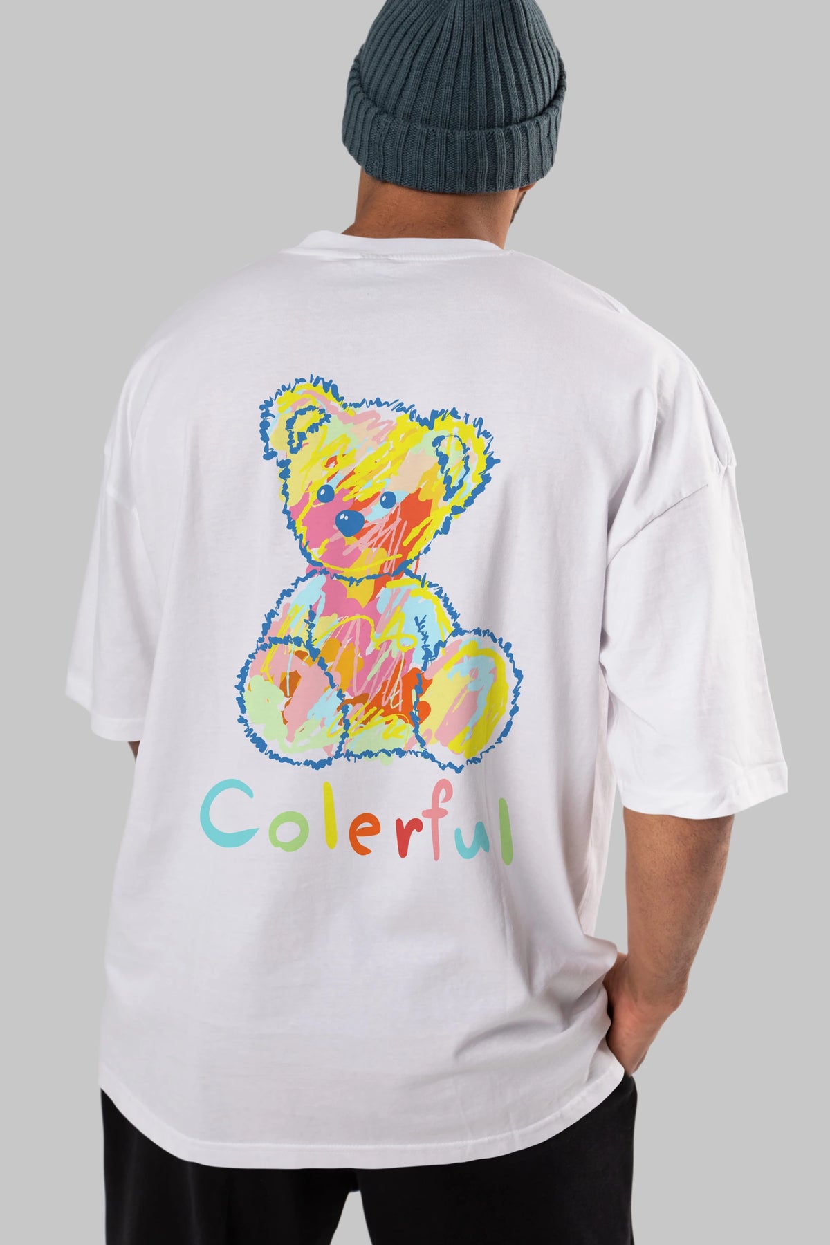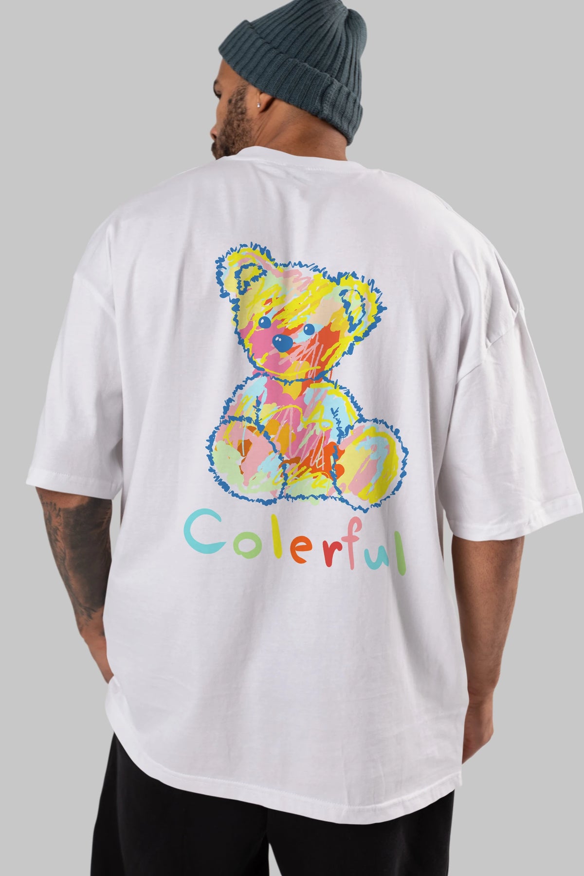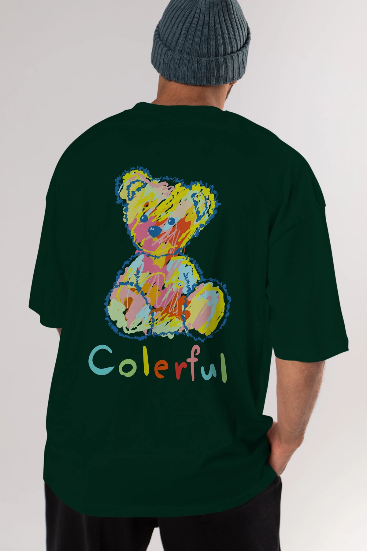 Colerful Bear Arka Baskılı Oversize t-shirt Erkek Kadın Unisex