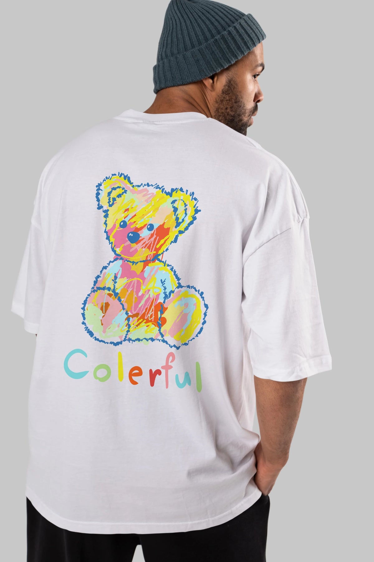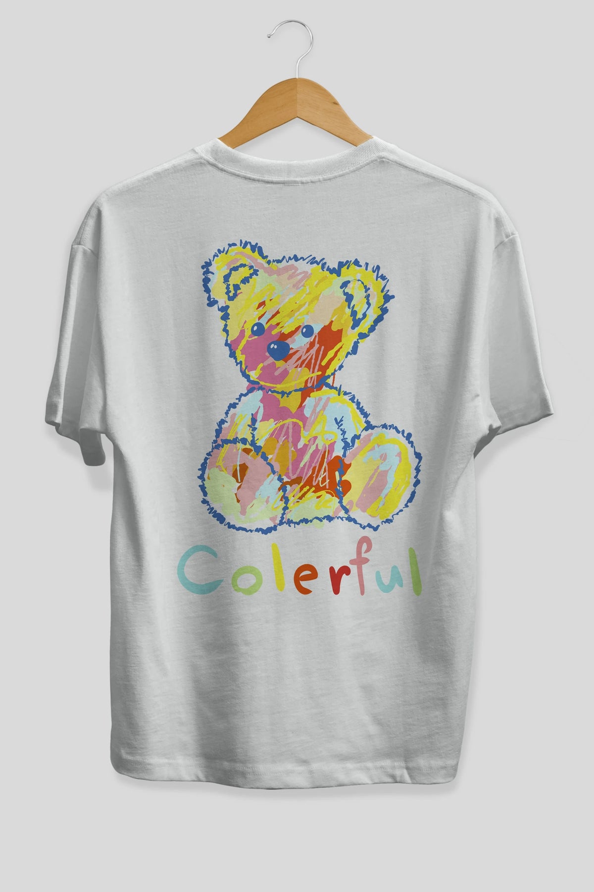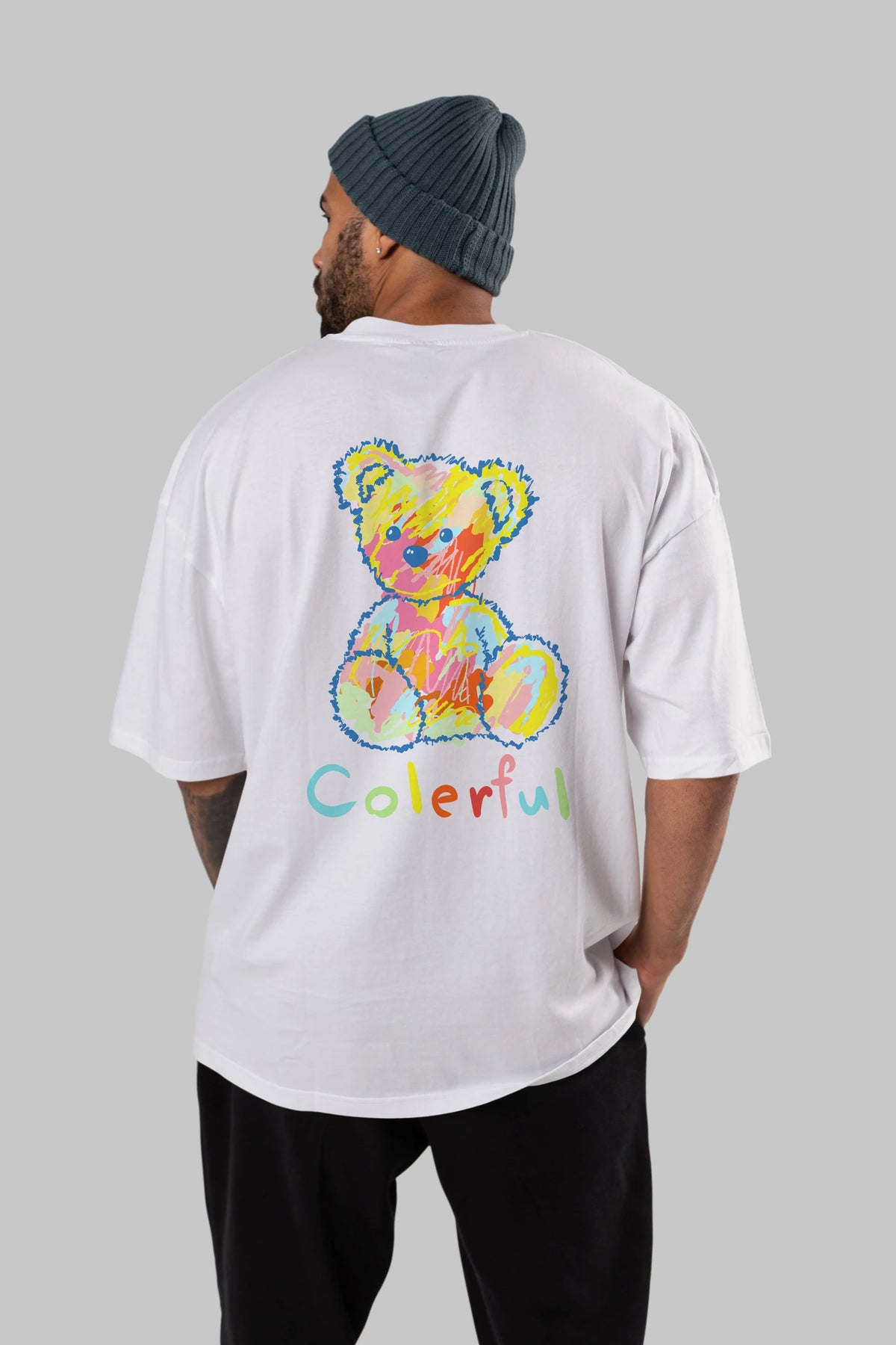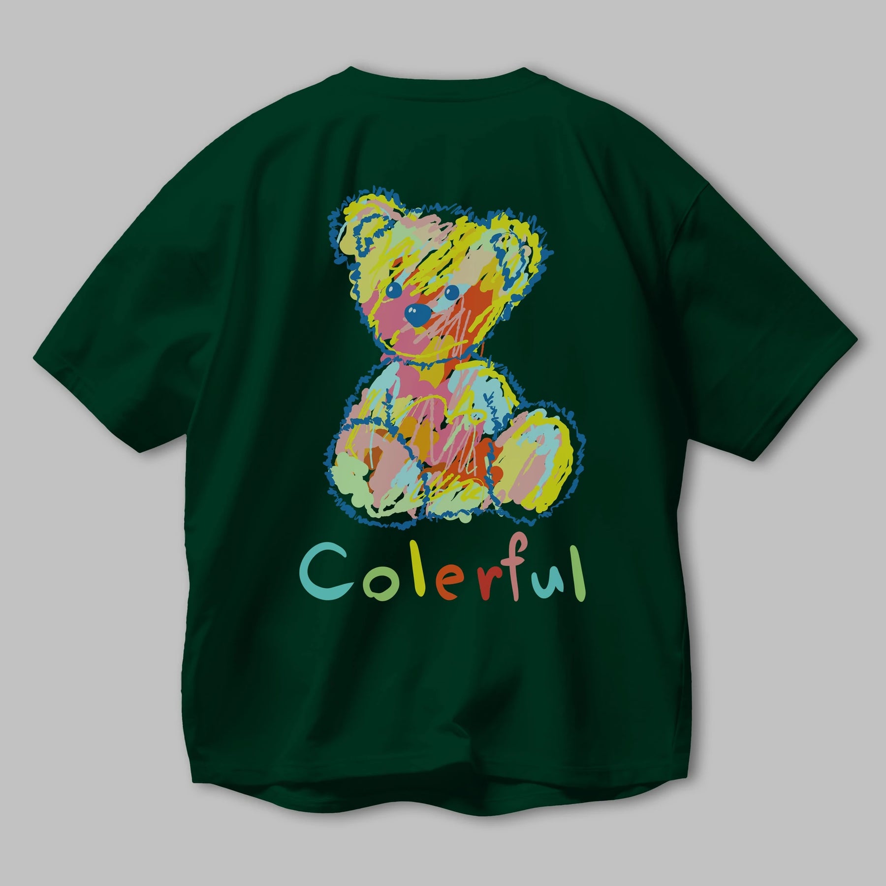 Colerful Bear Arka Baskılı Oversize t-shirt Erkek Kadın Unisex