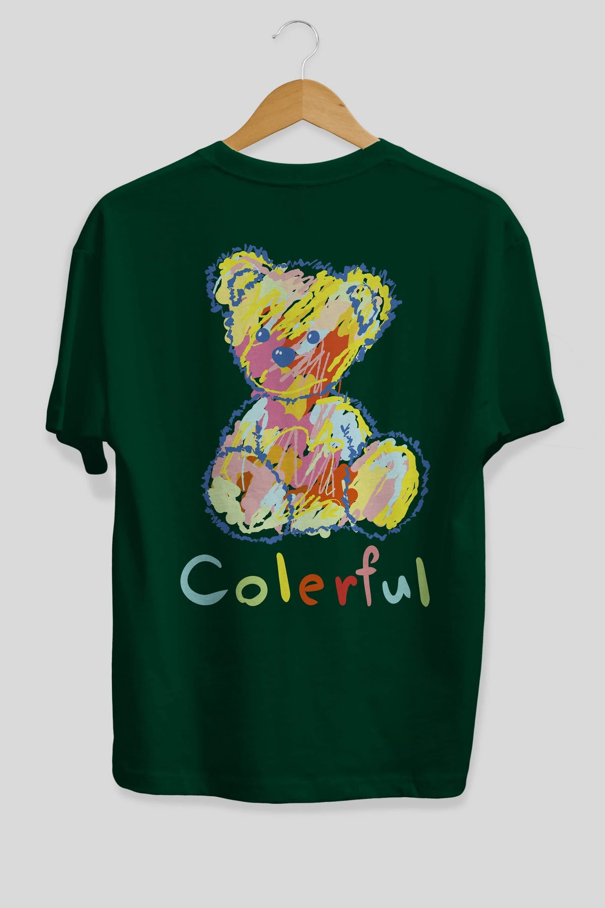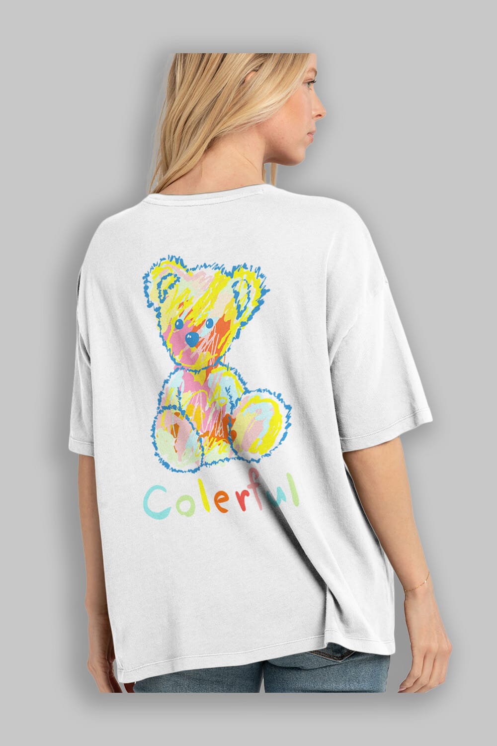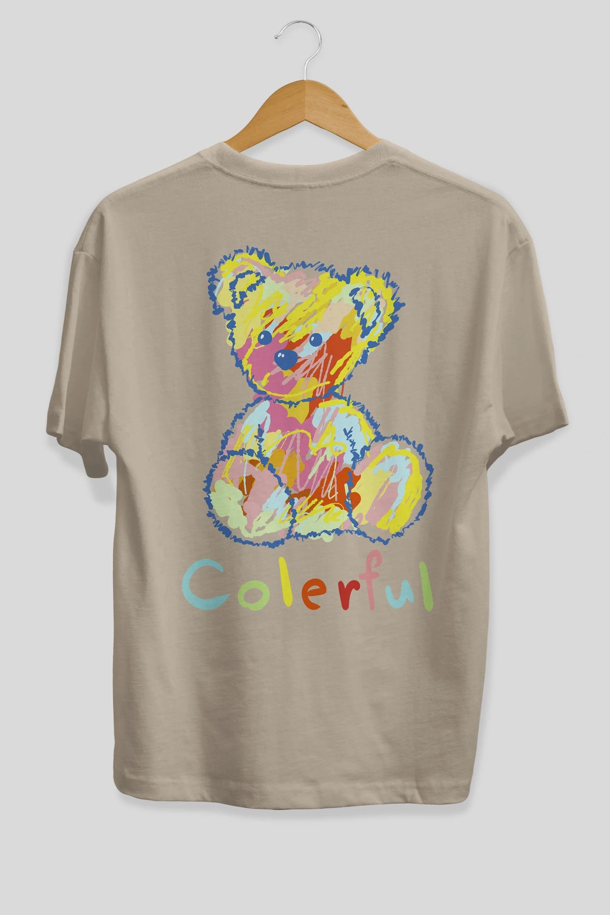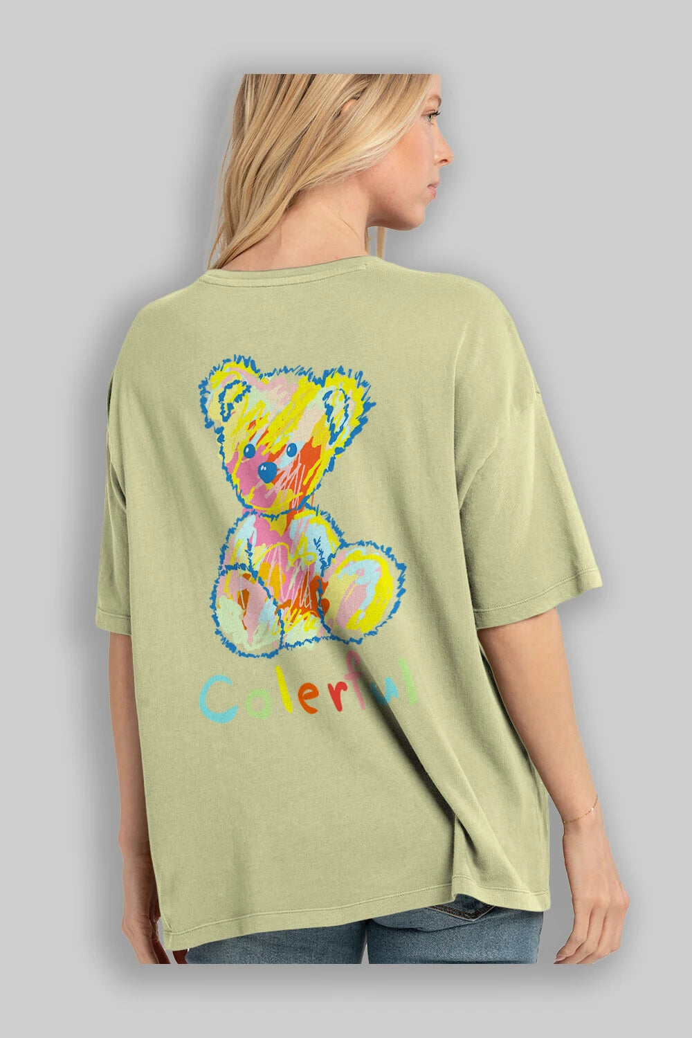 Colerful Bear Arka Baskılı Oversize t-shirt Erkek Kadın Unisex