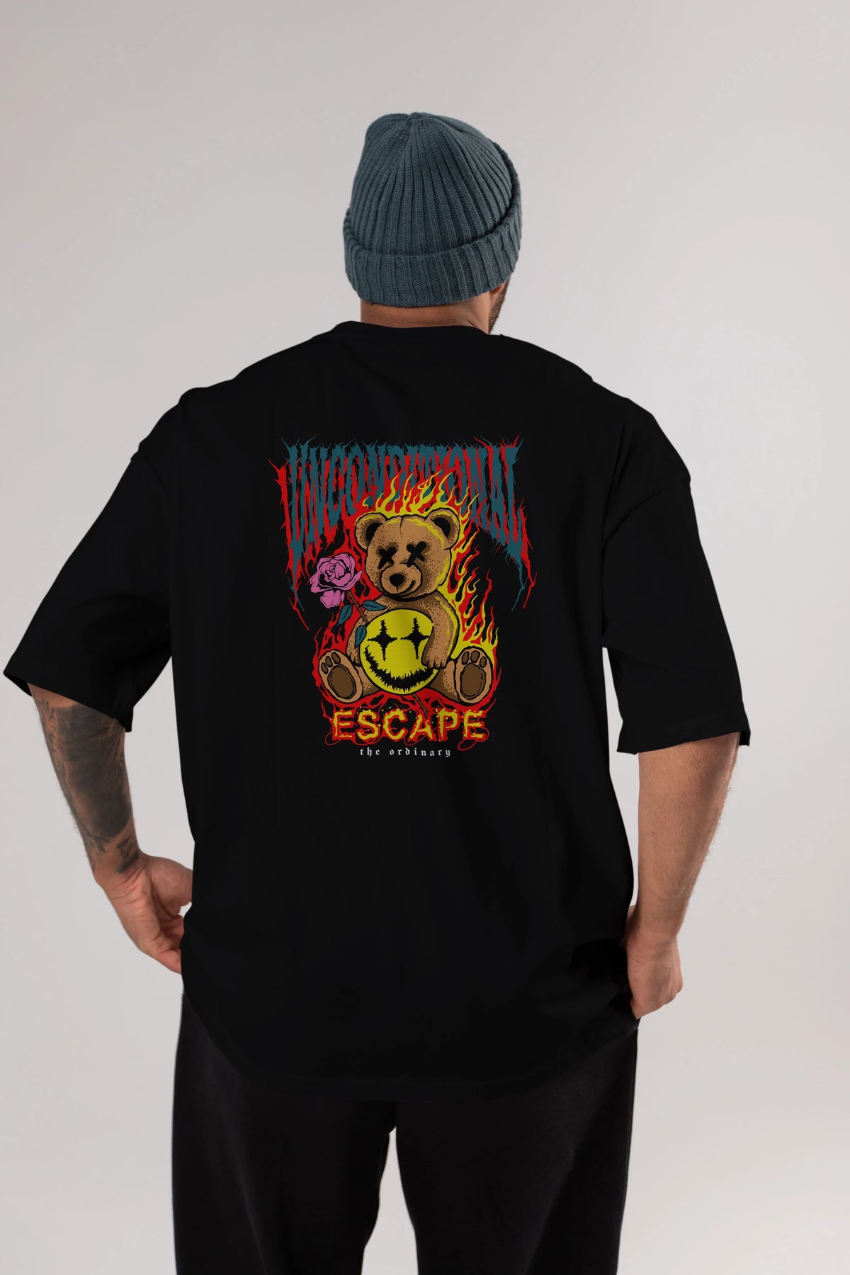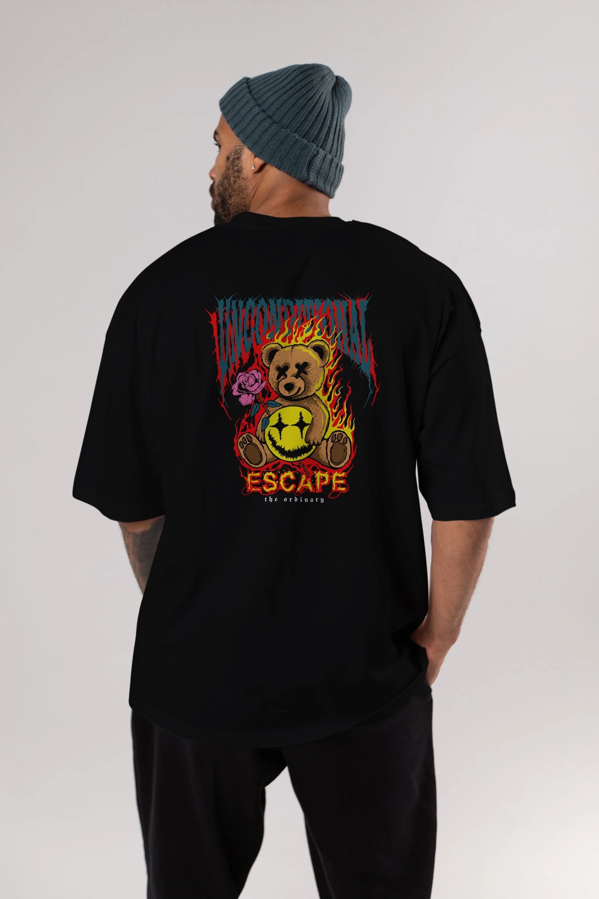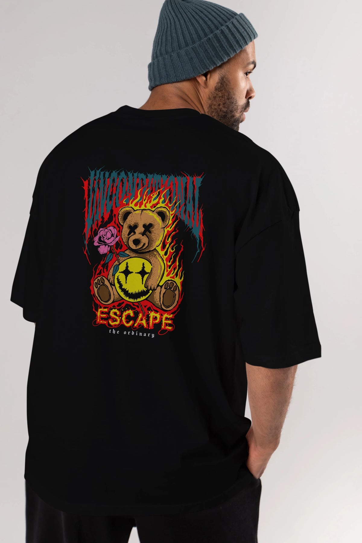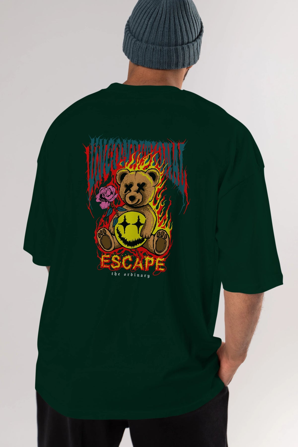 Escape Bear Arka Baskılı Oversize t-shirt Erkek Kadın Unisex