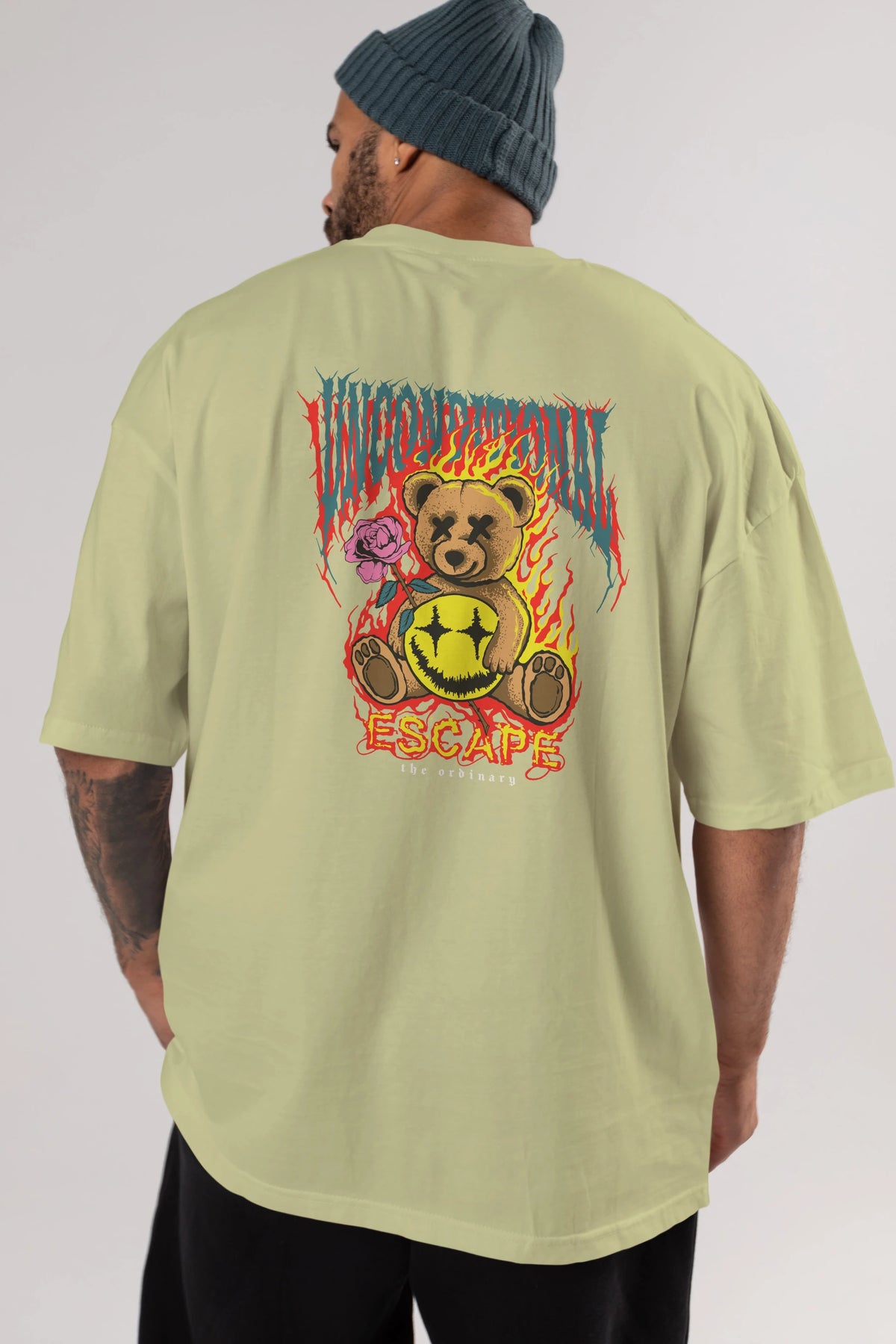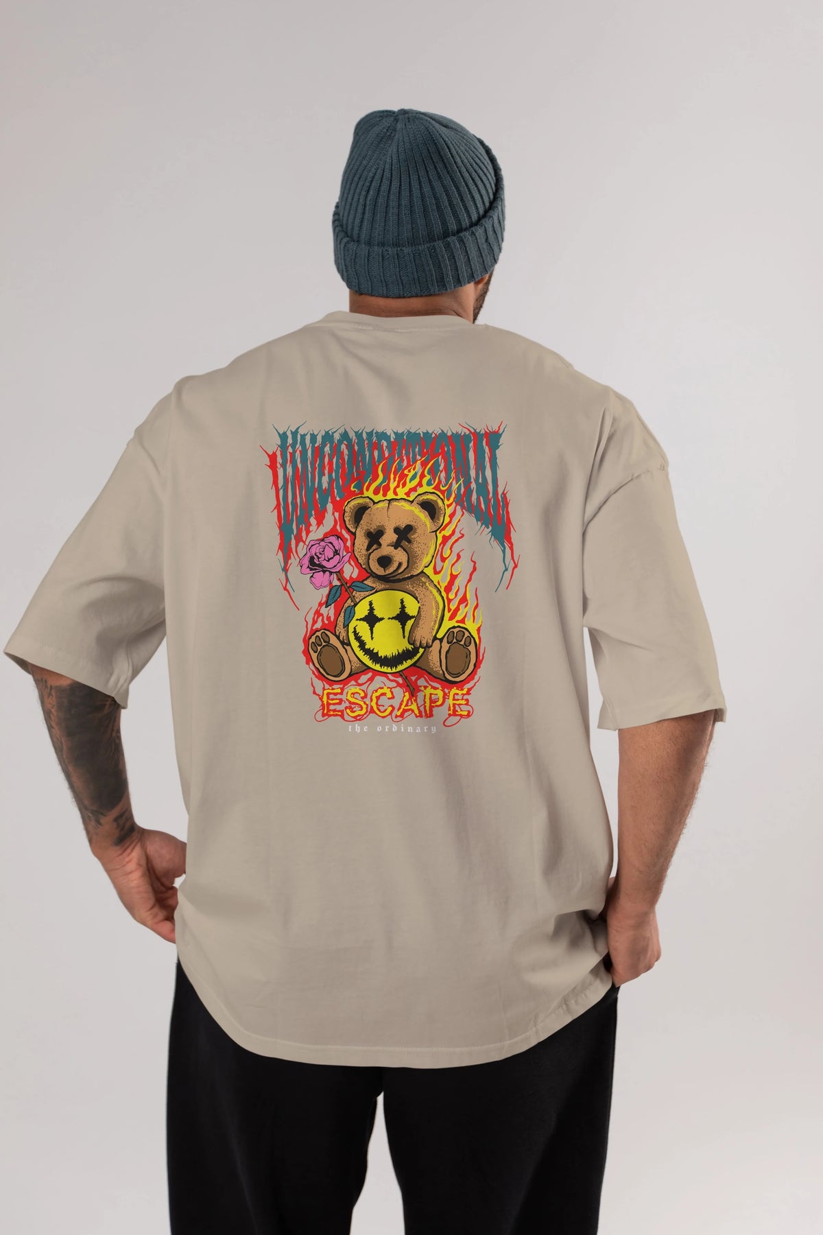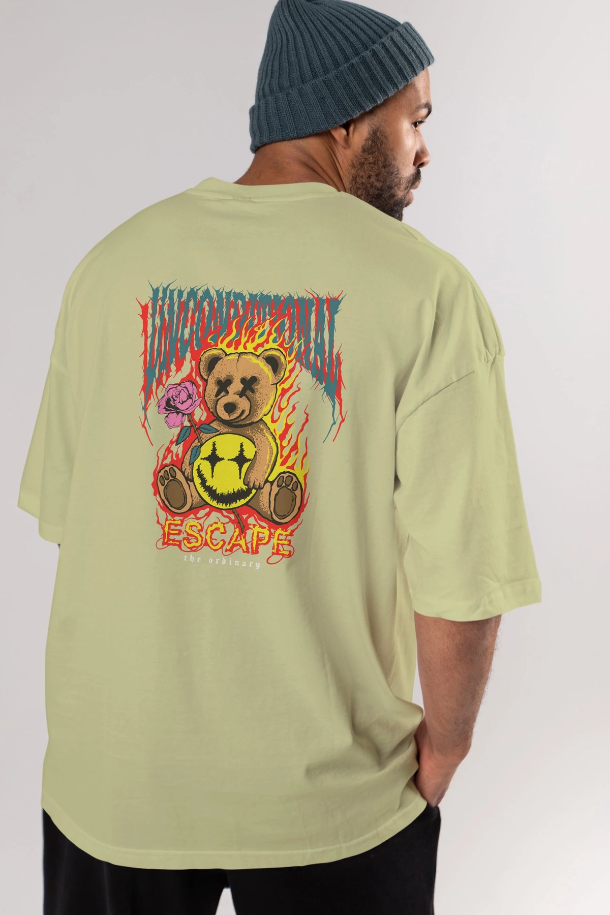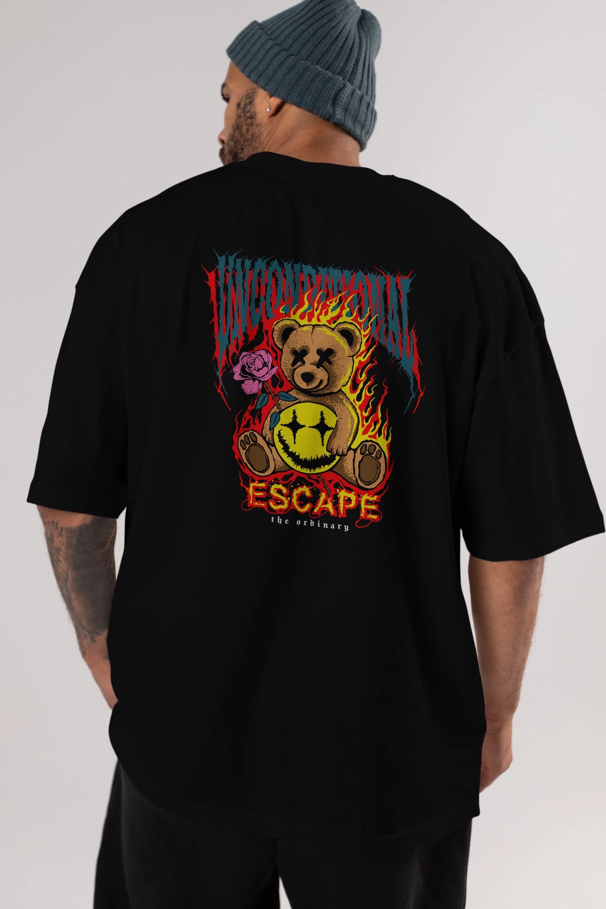 Escape Bear Arka Baskılı Oversize t-shirt Erkek Kadın Unisex