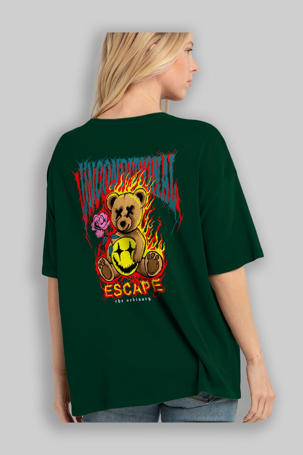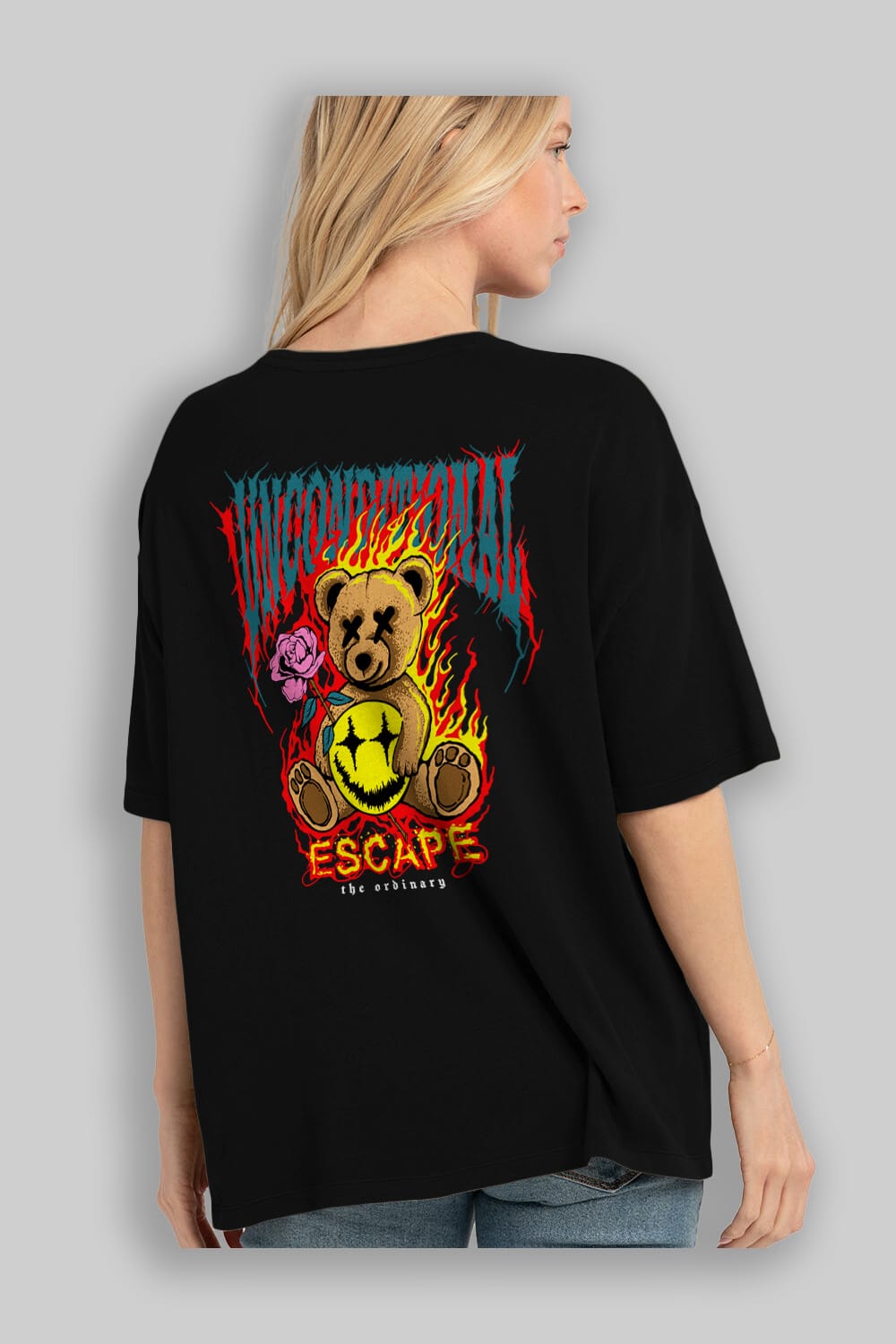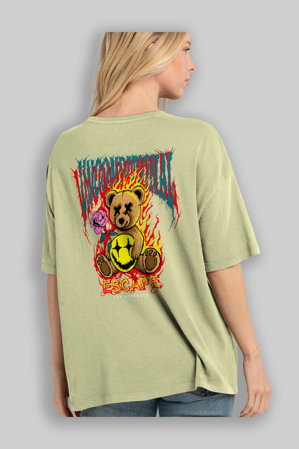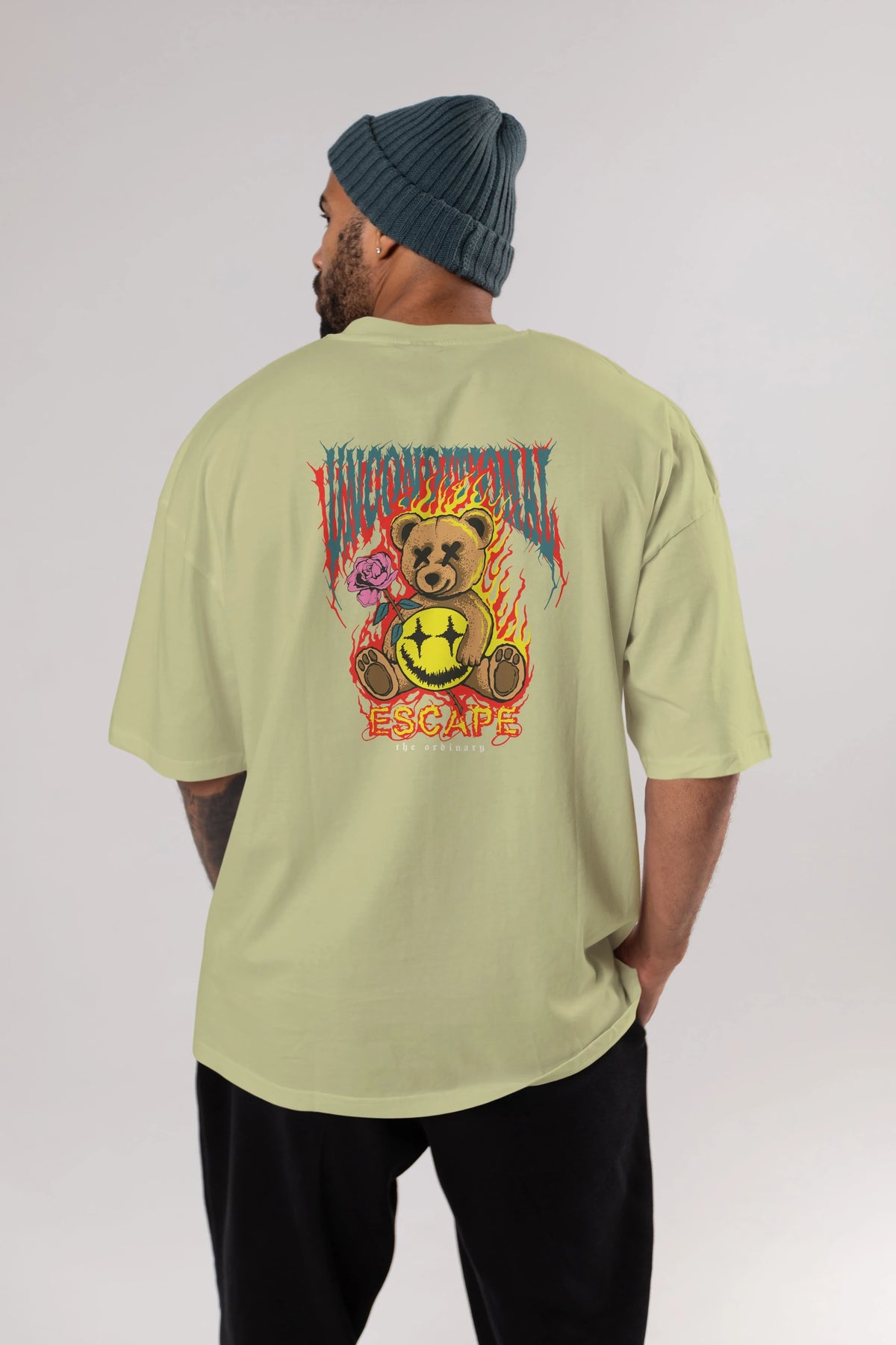 Escape Bear Arka Baskılı Oversize t-shirt Erkek Kadın Unisex