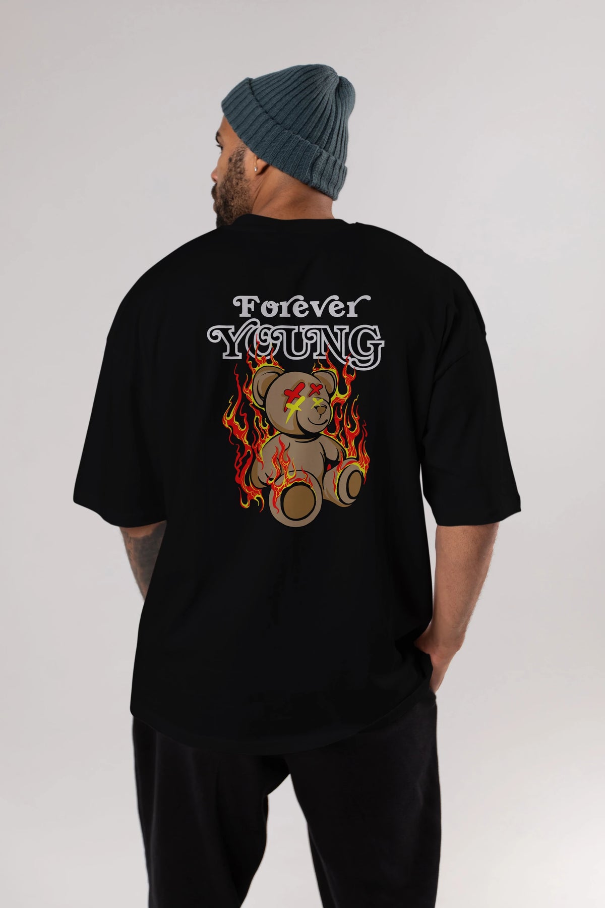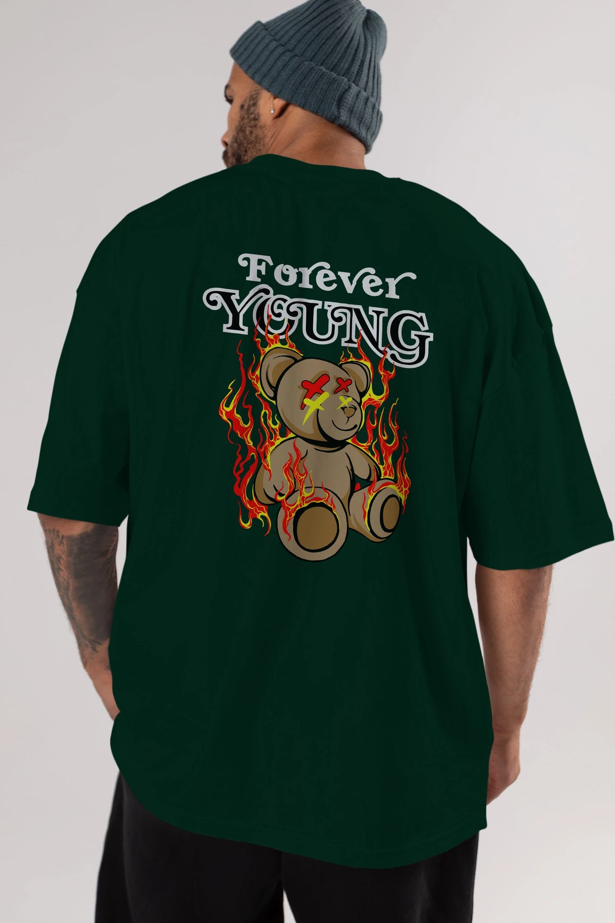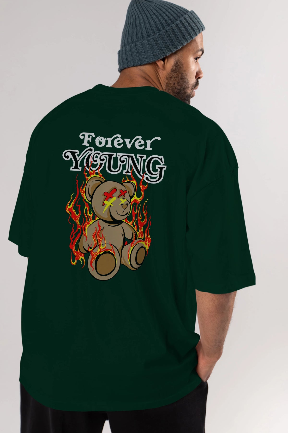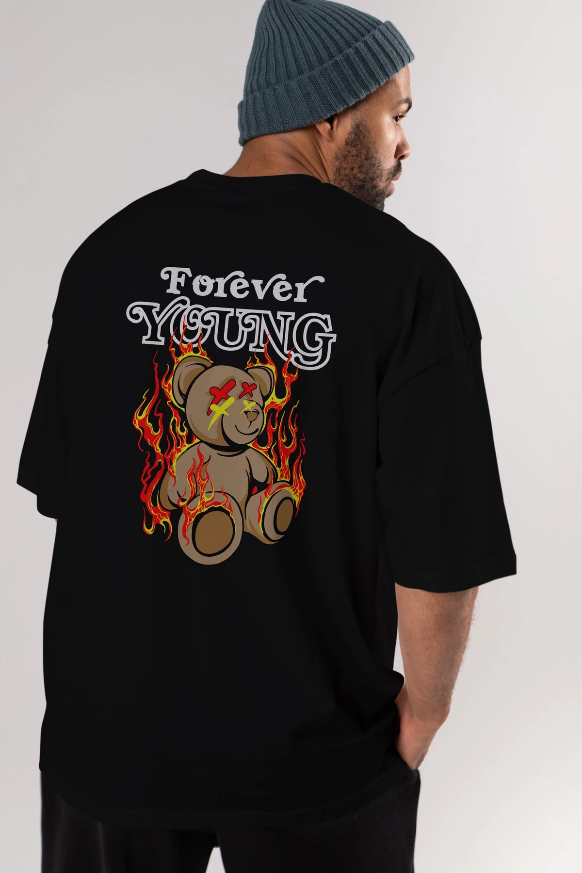 Forever Young Bear Arka Baskılı Oversize t-shirt Erkek Kadın Unisex
