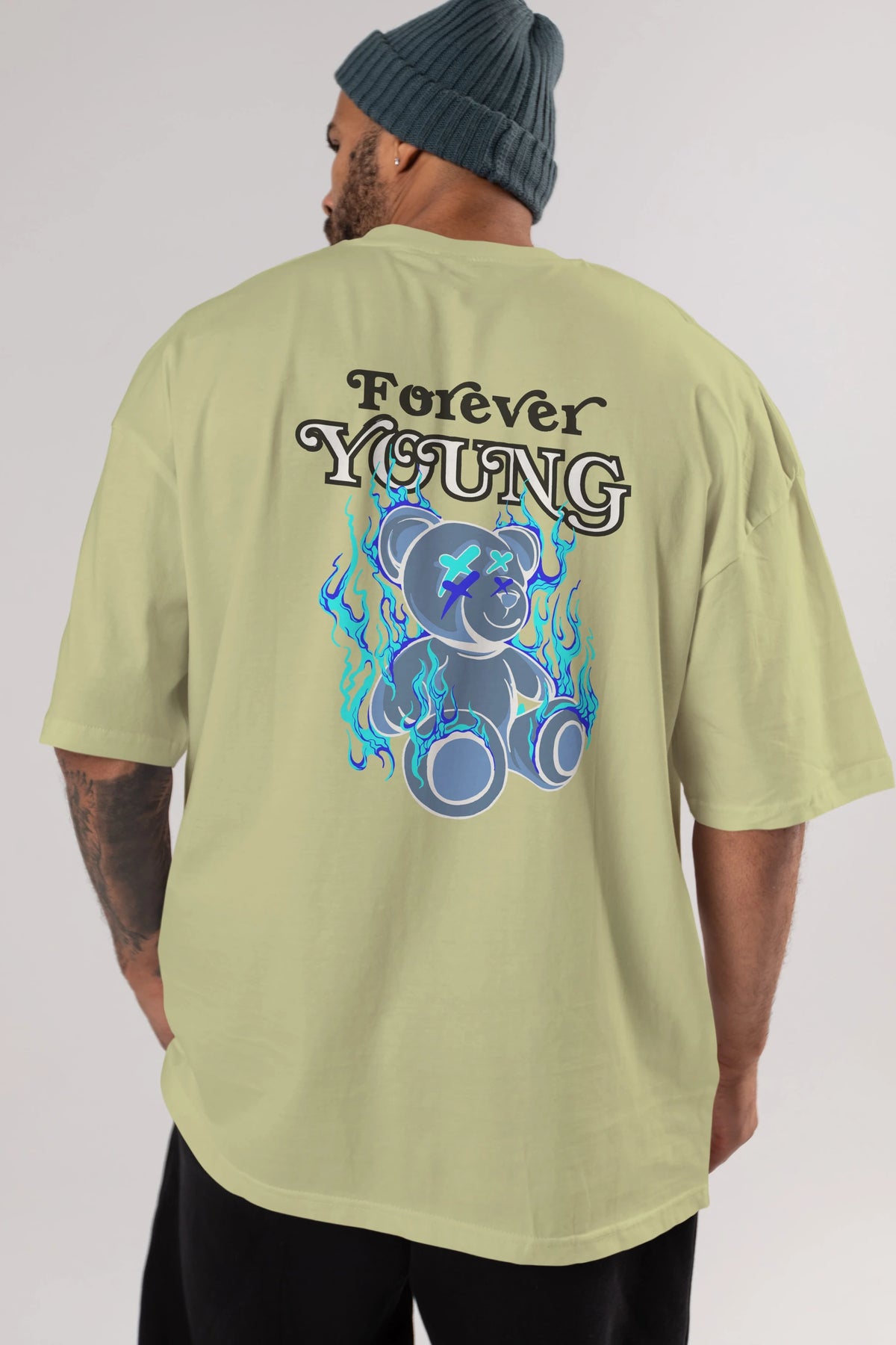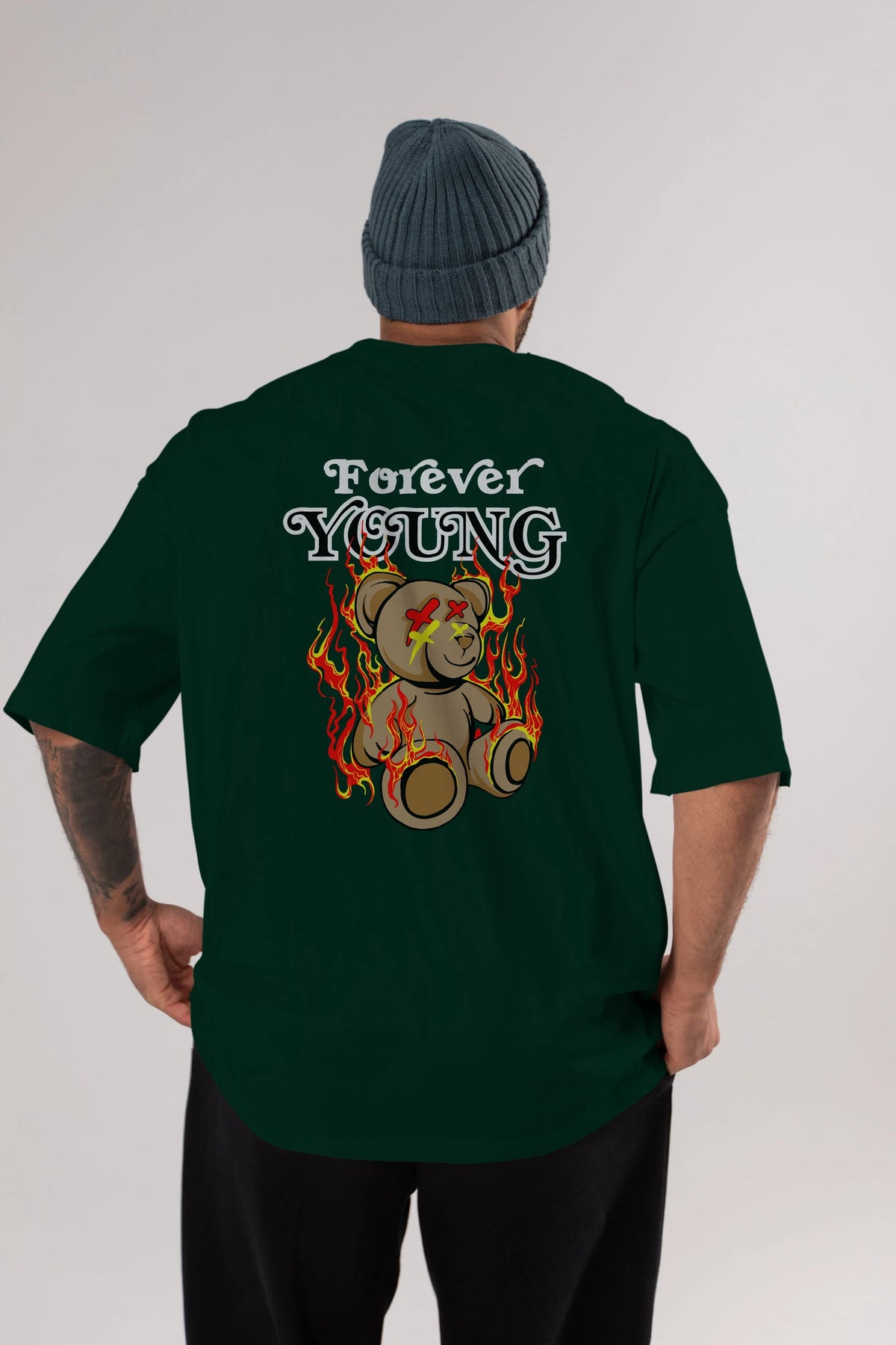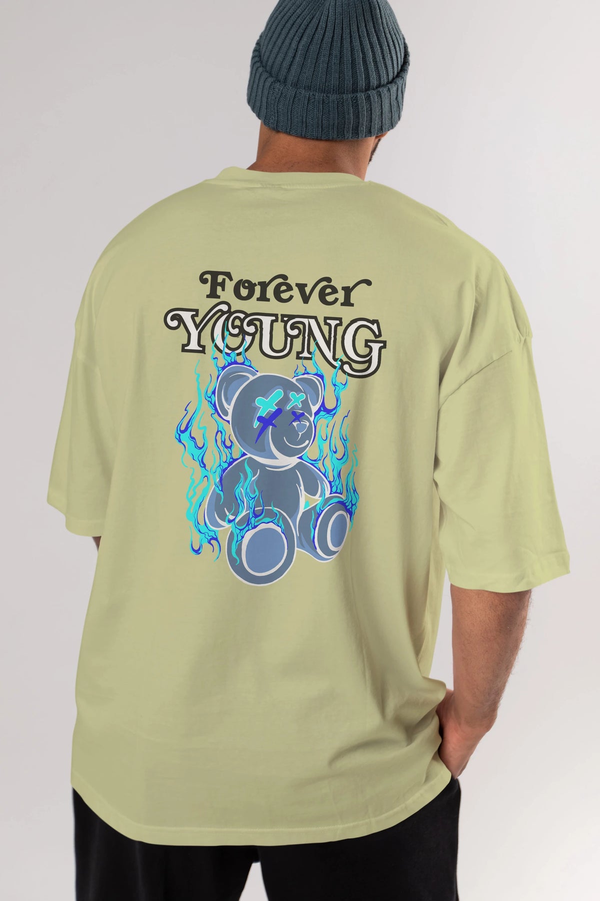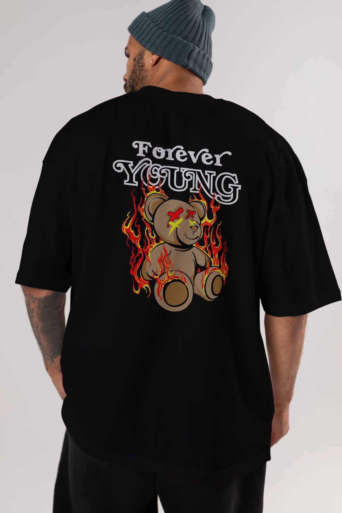Forever Young Bear Arka Baskılı Oversize t-shirt Erkek Kadın Unisex