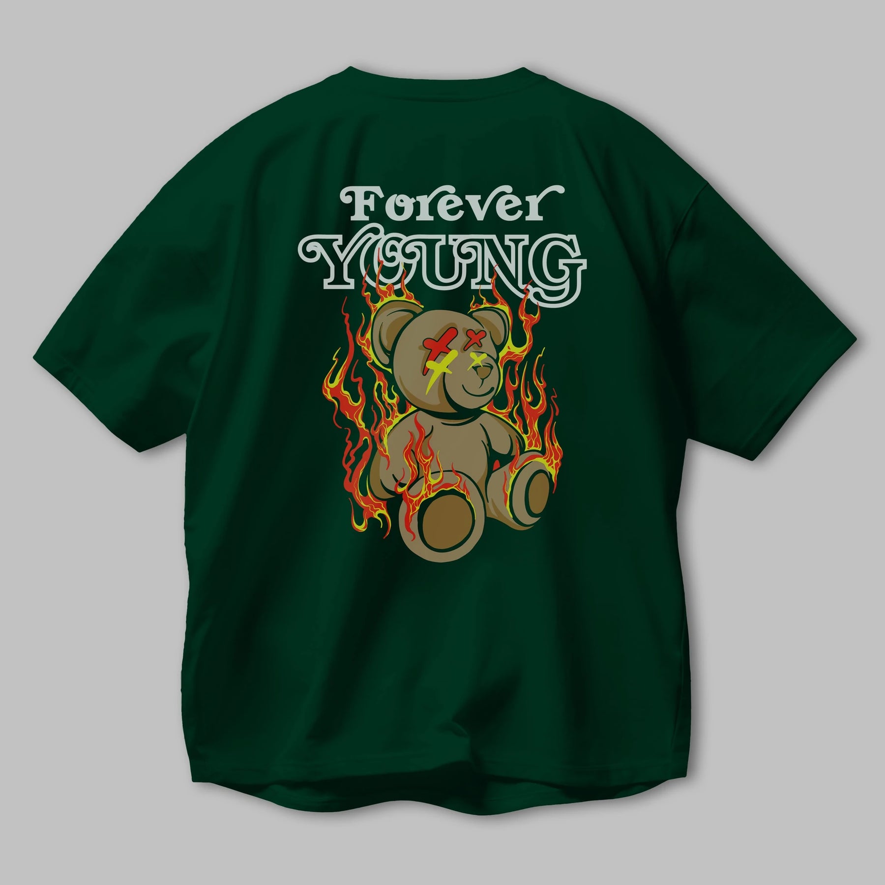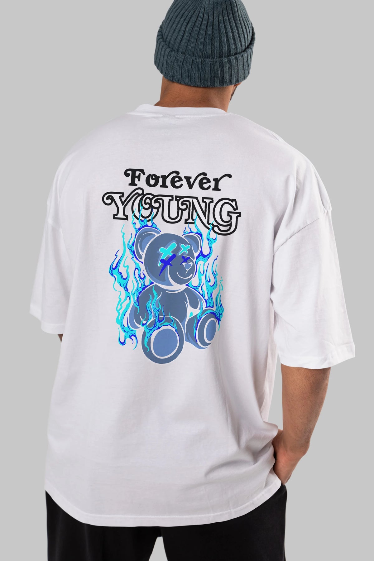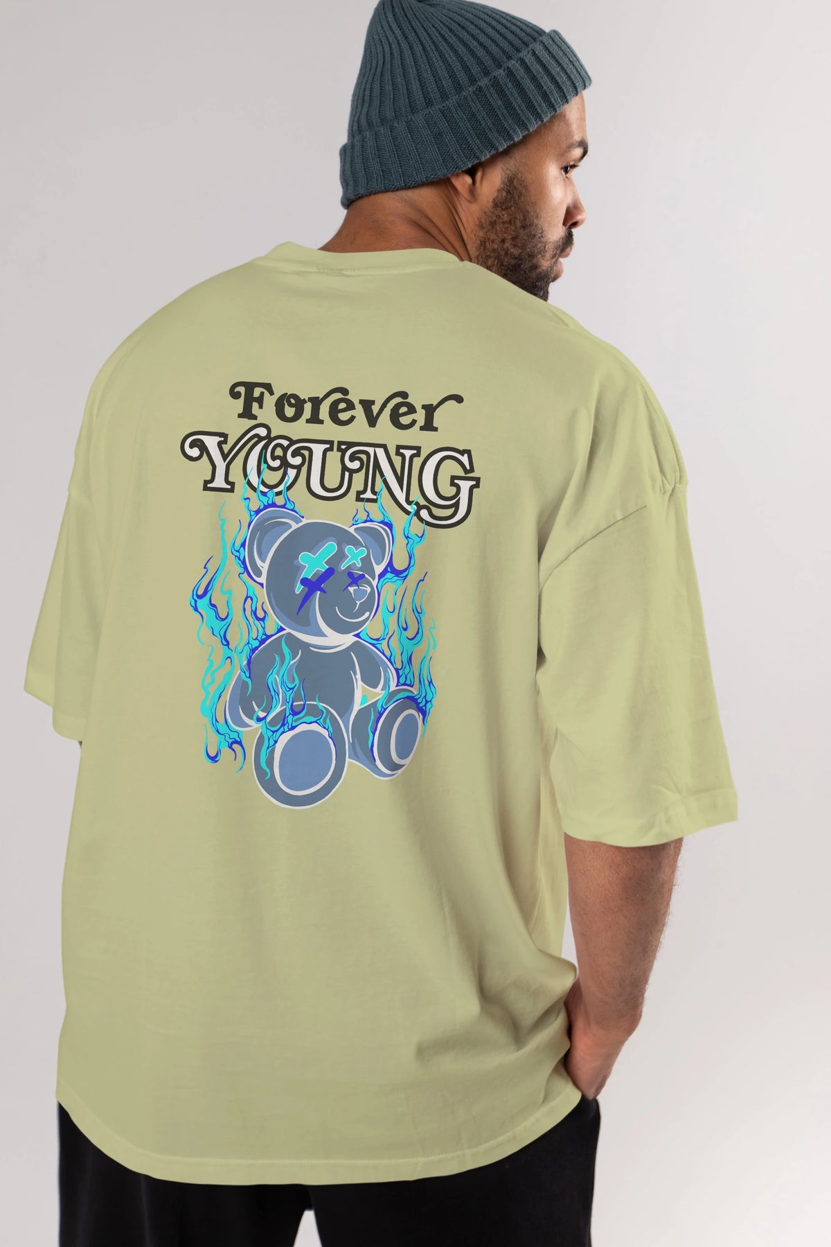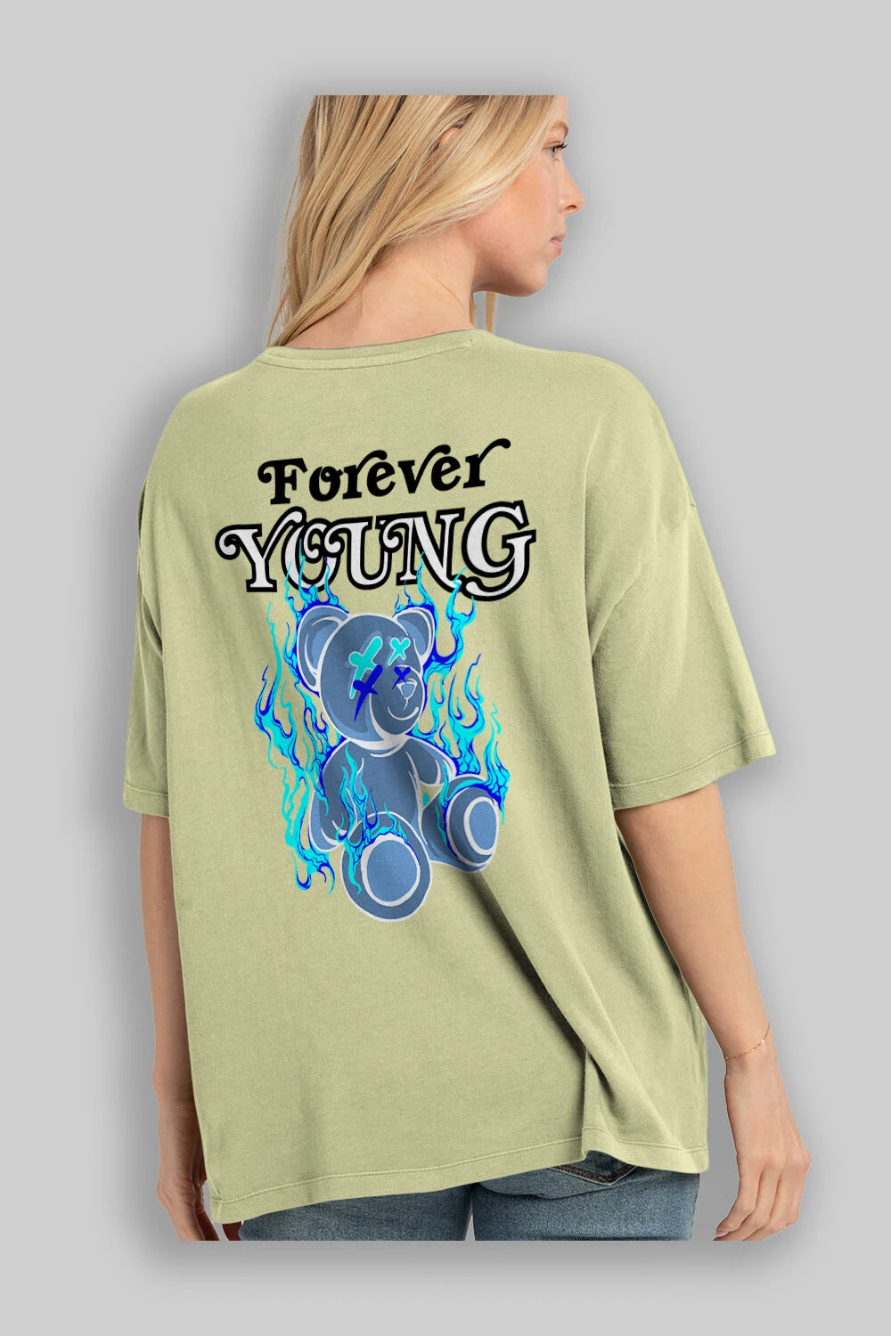 Forever Young Bear Arka Baskılı Oversize t-shirt Erkek Kadın Unisex