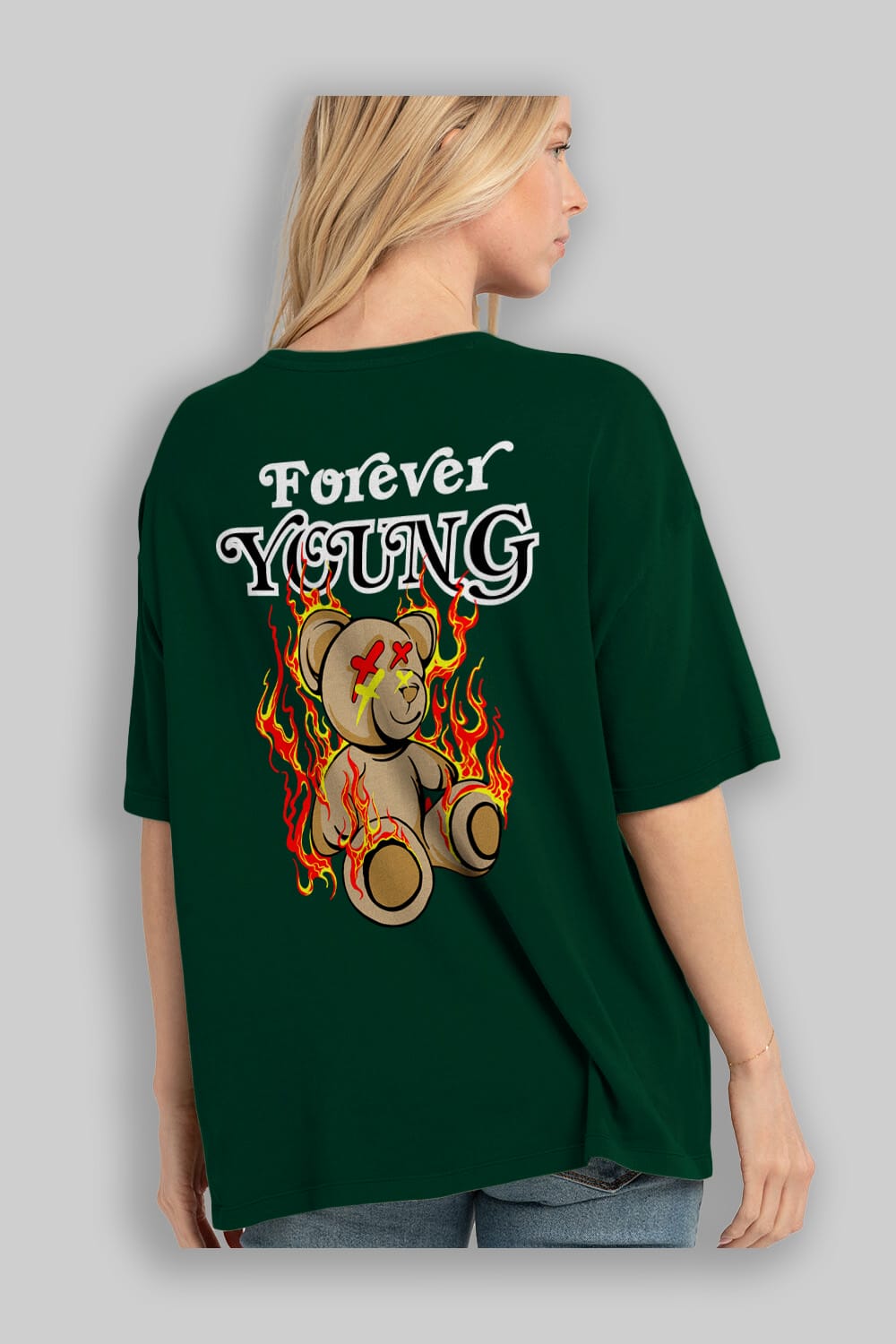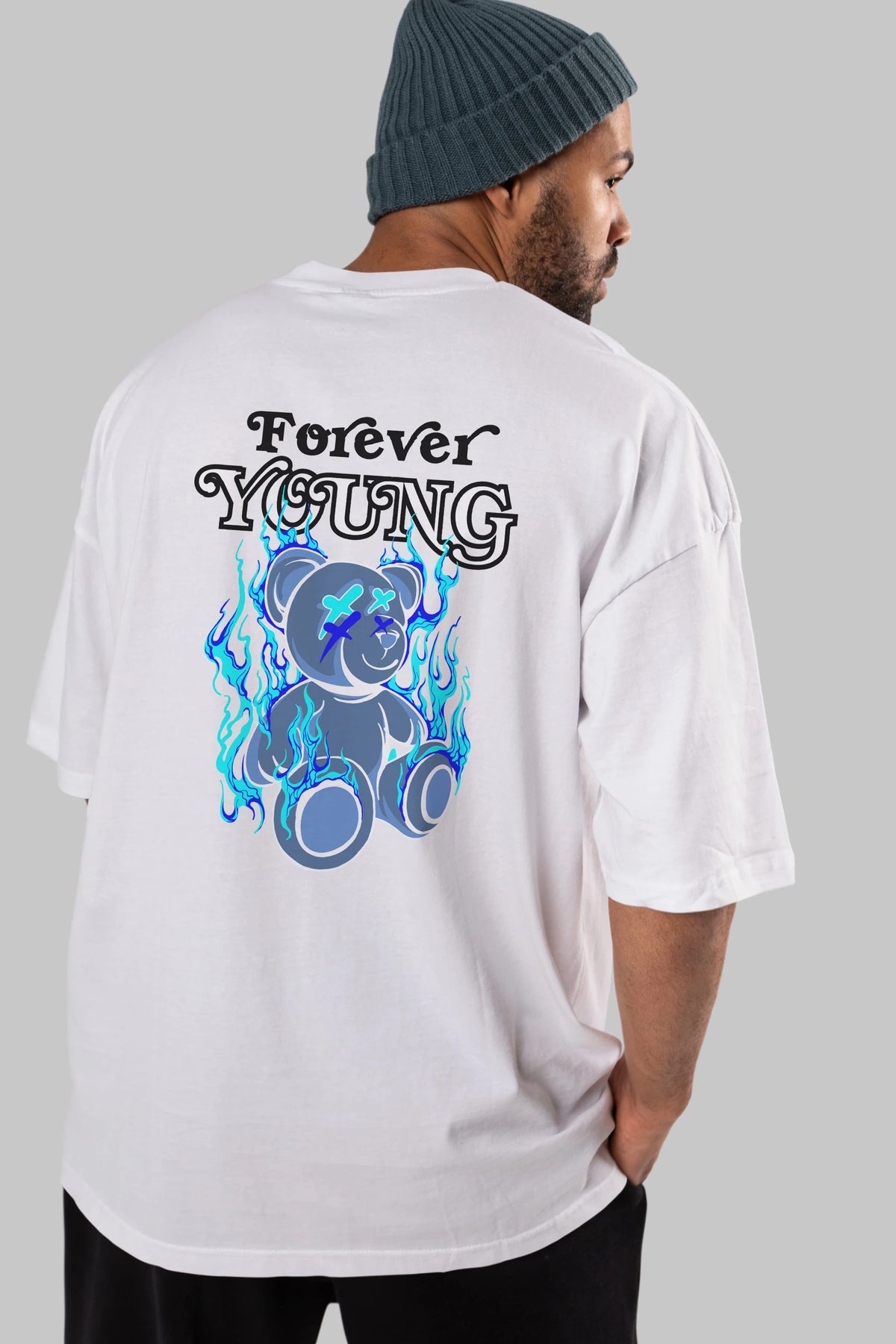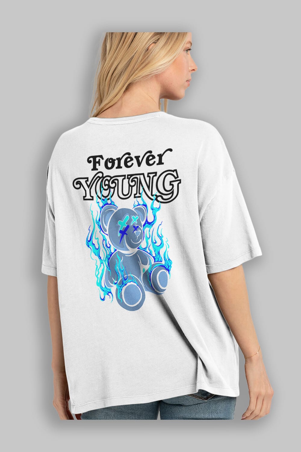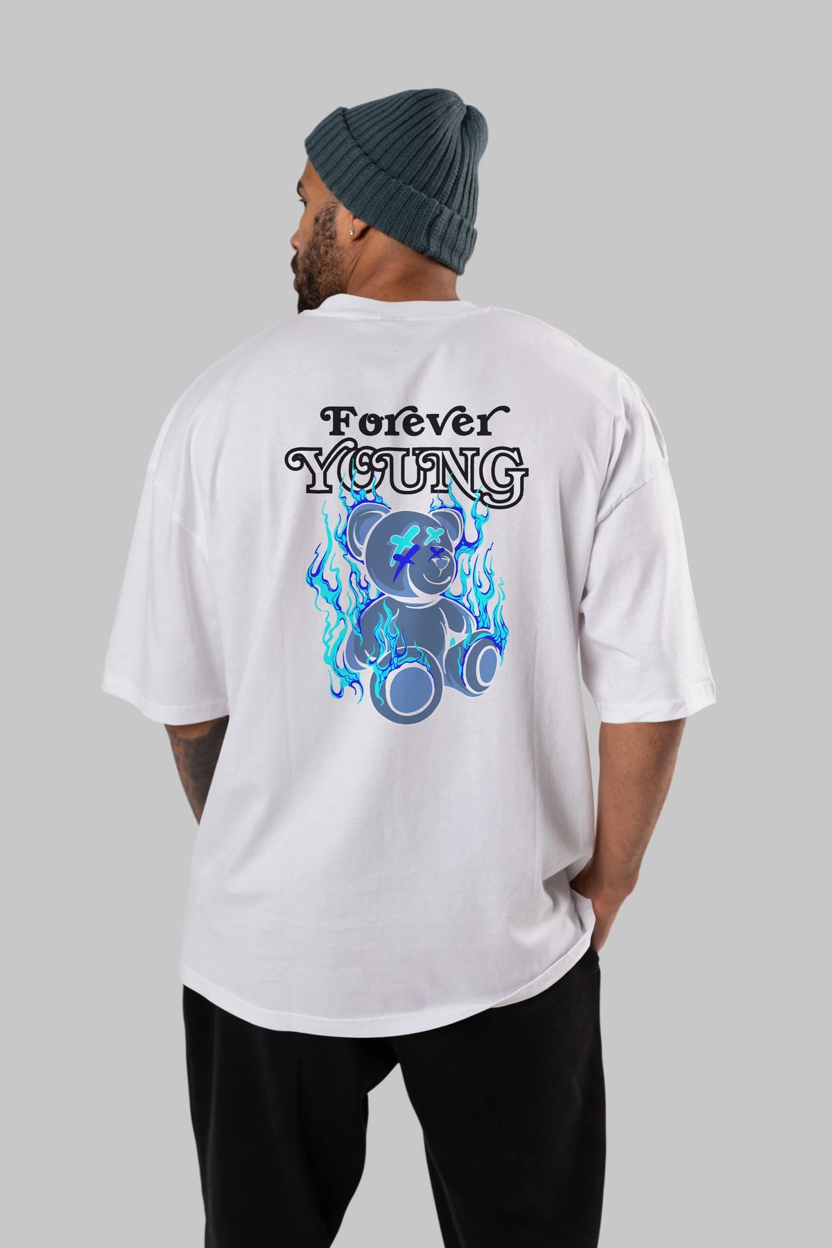 Forever Young Bear Arka Baskılı Oversize t-shirt Erkek Kadın Unisex