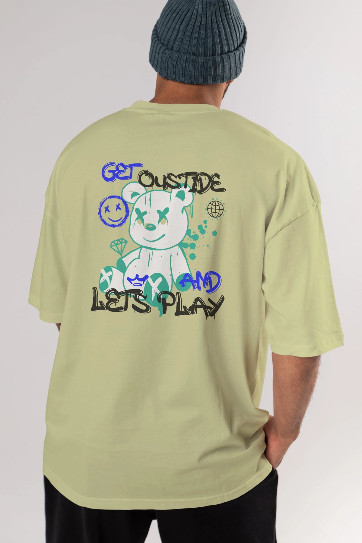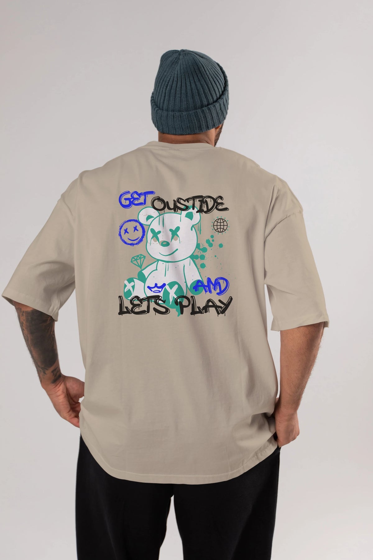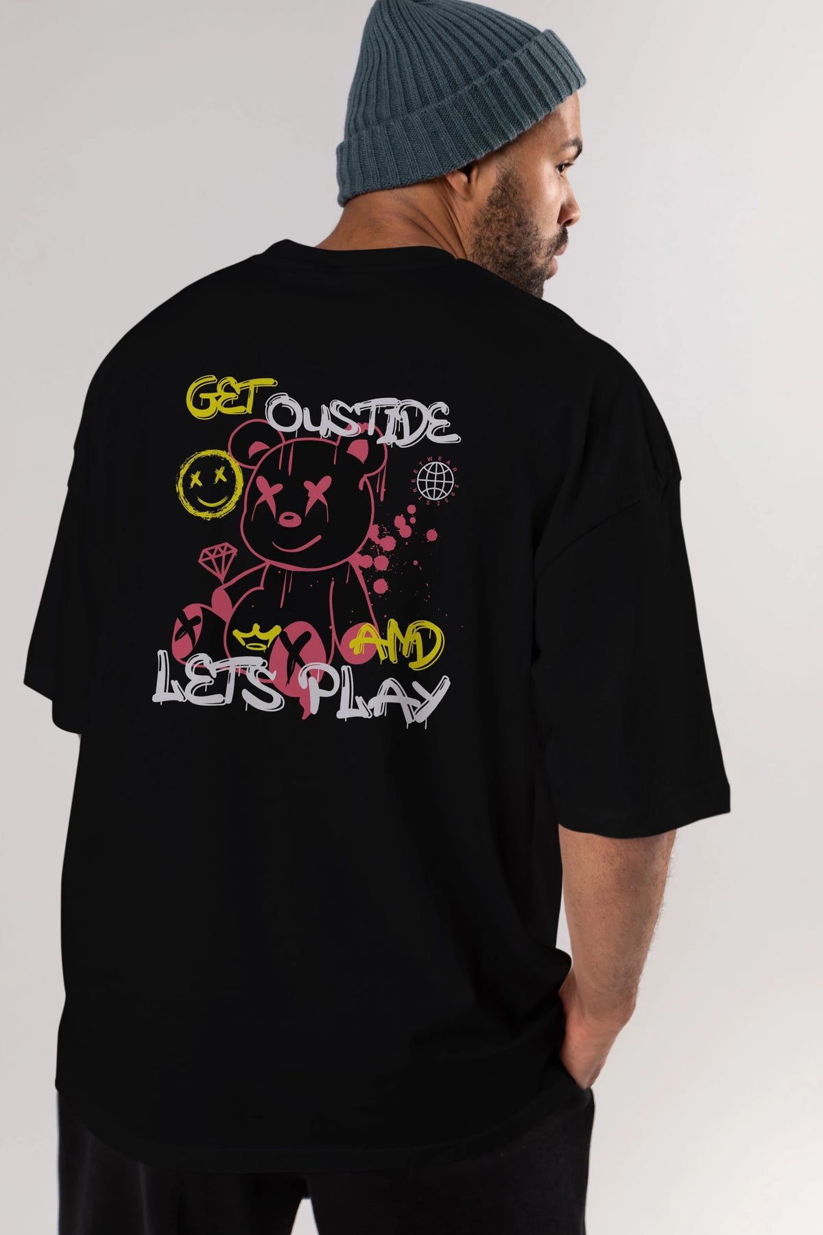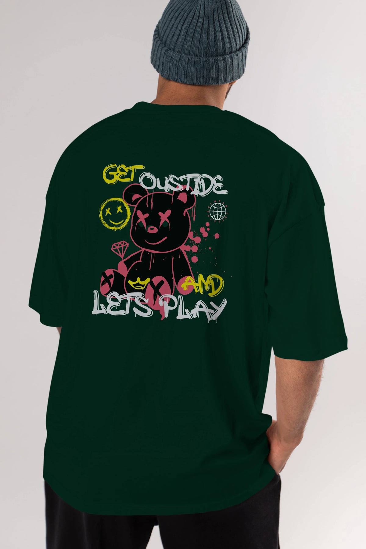 Get Outside Bear Arka Baskılı Oversize t-shirt Erkek Kadın Unisex