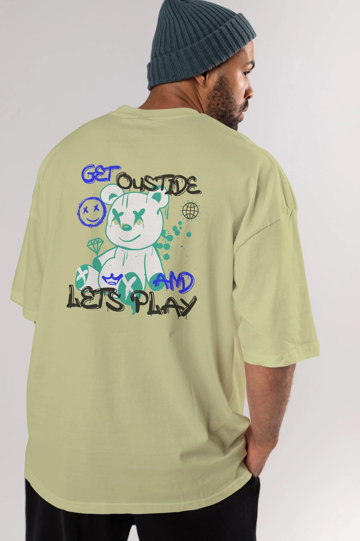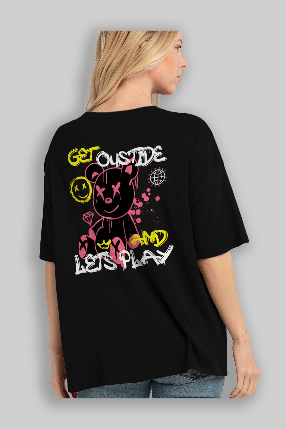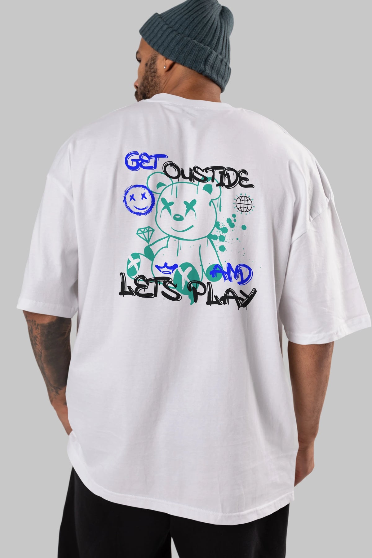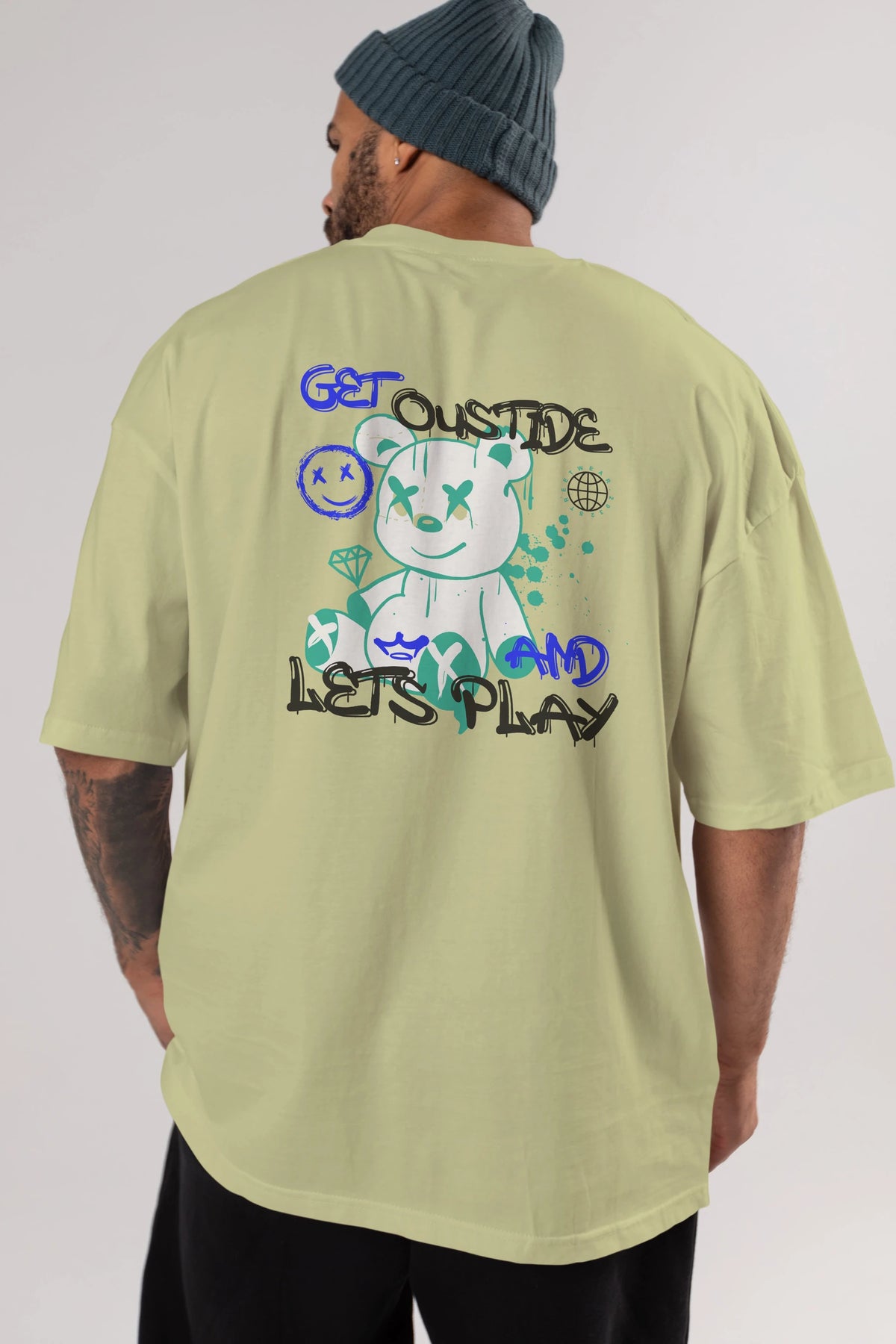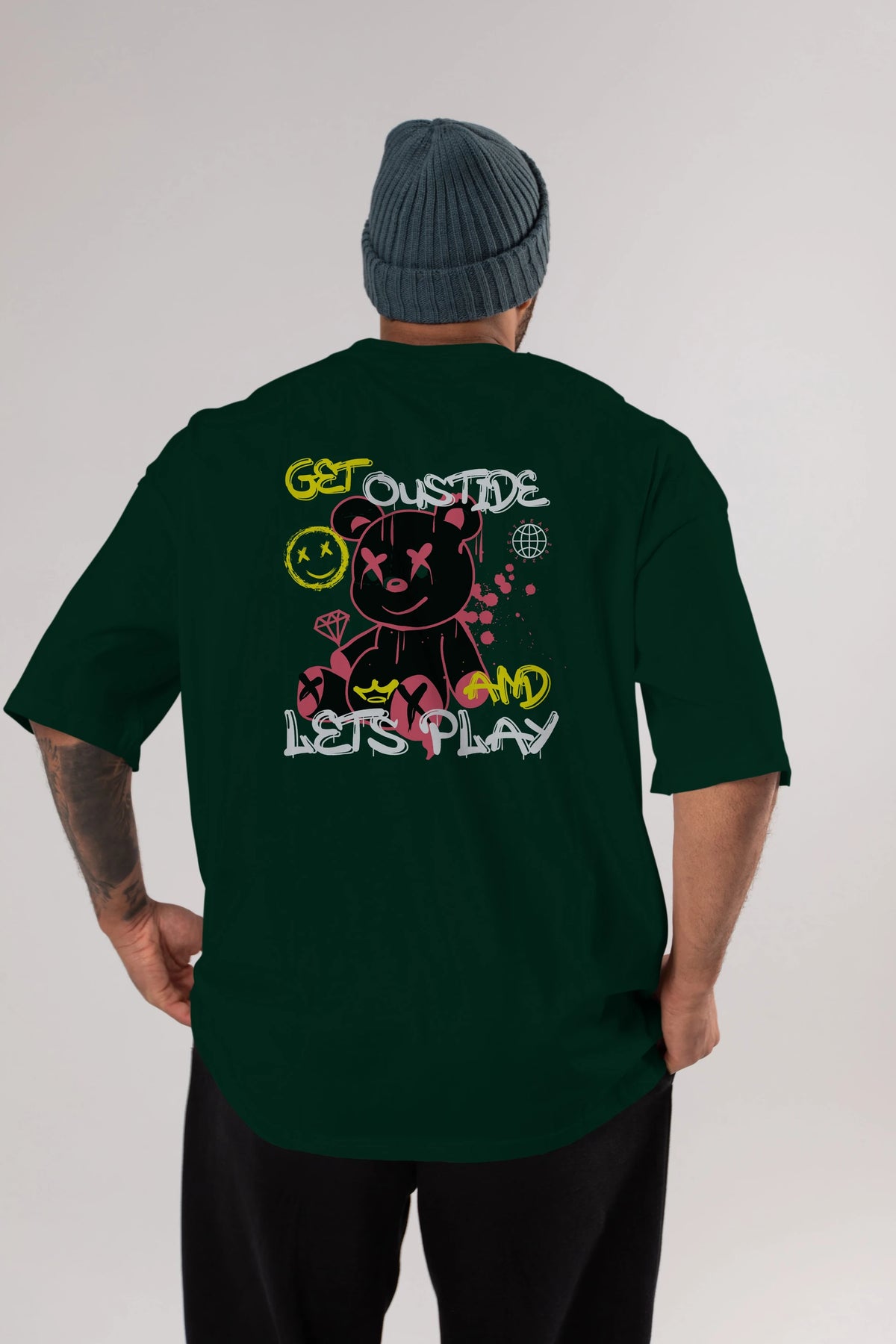 Get Outside Bear Arka Baskılı Oversize t-shirt Erkek Kadın Unisex