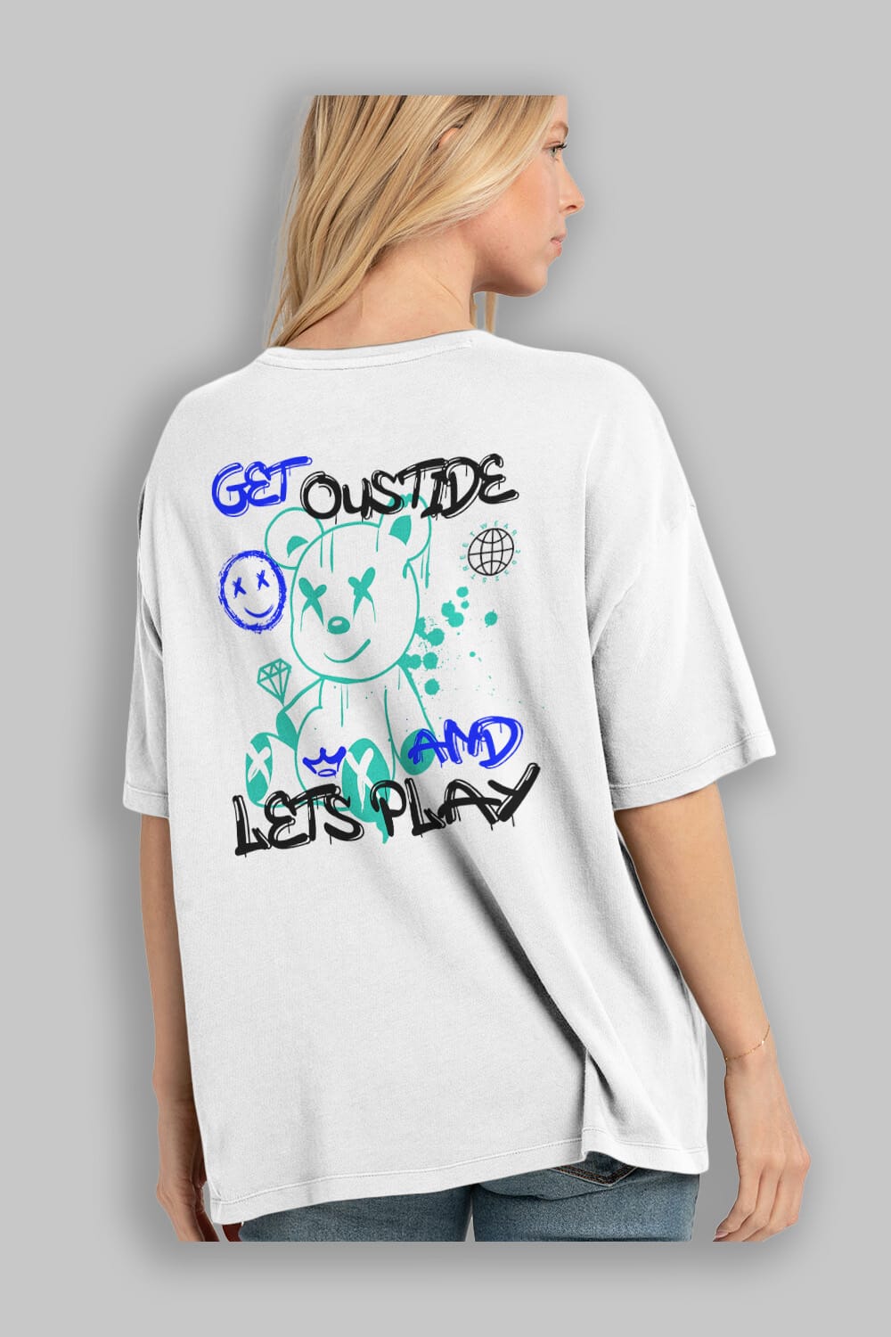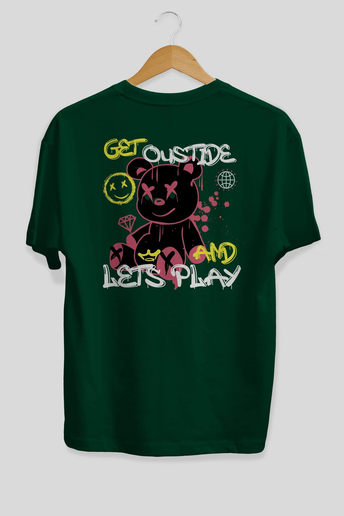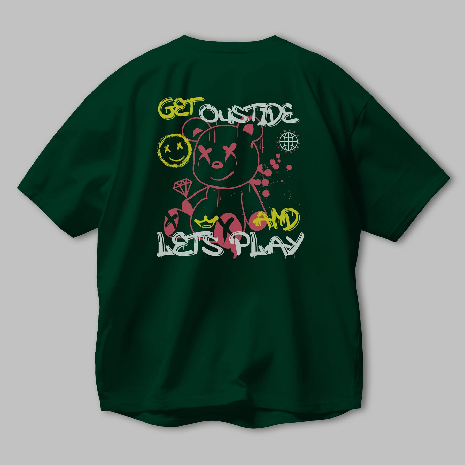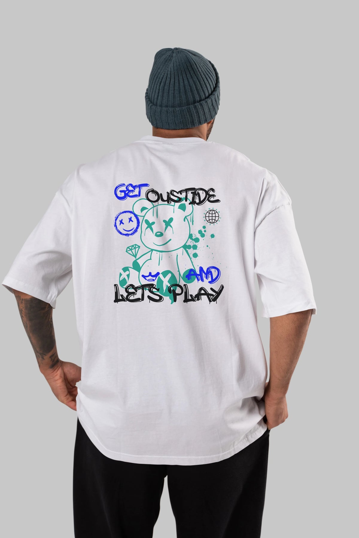 Get Outside Bear Arka Baskılı Oversize t-shirt Erkek Kadın Unisex