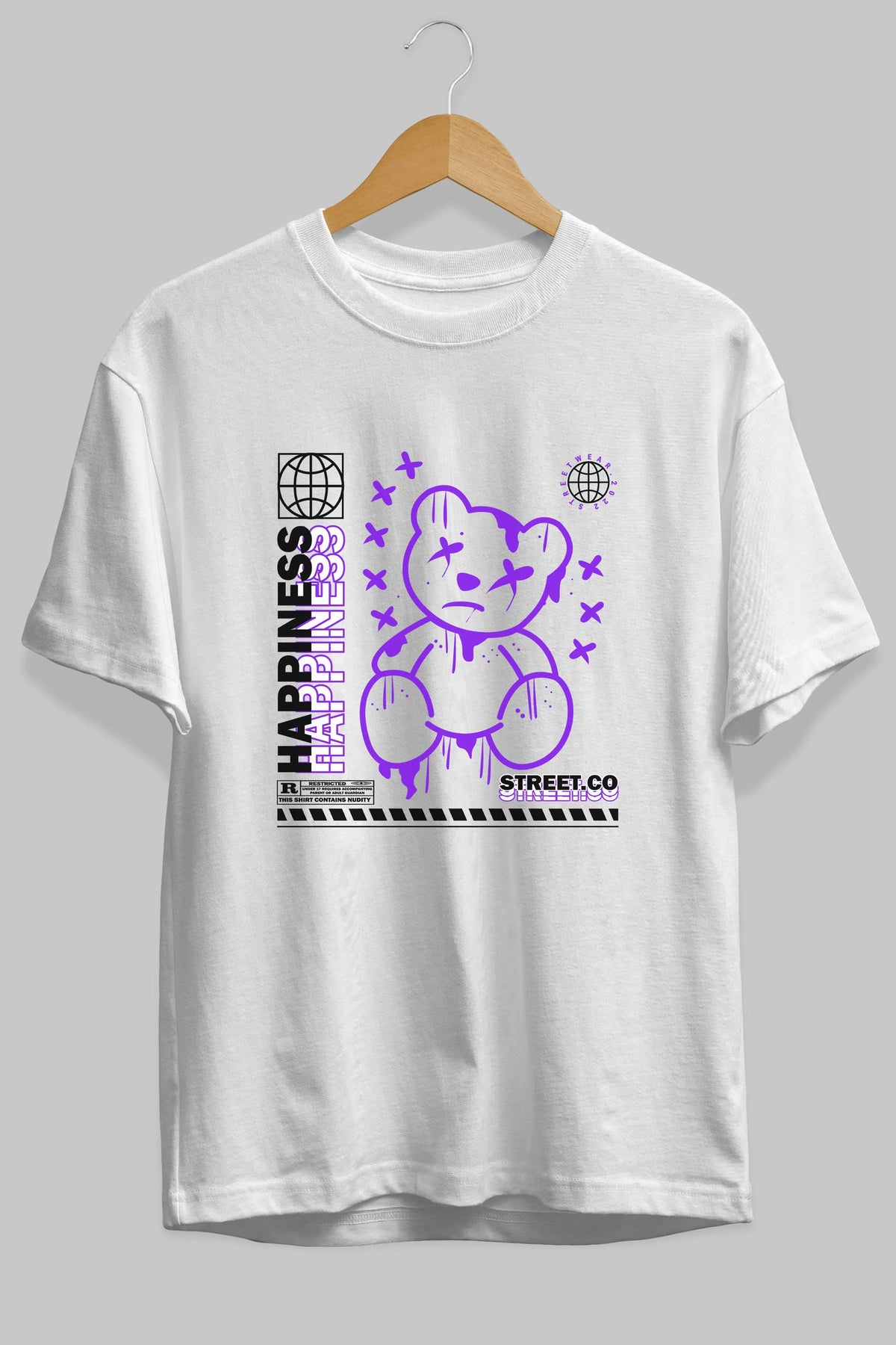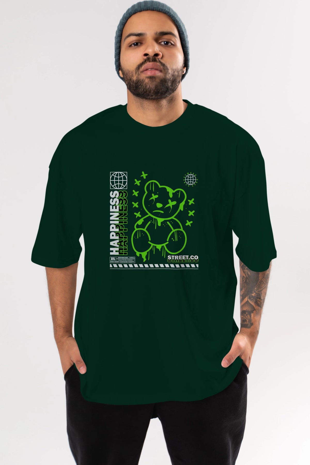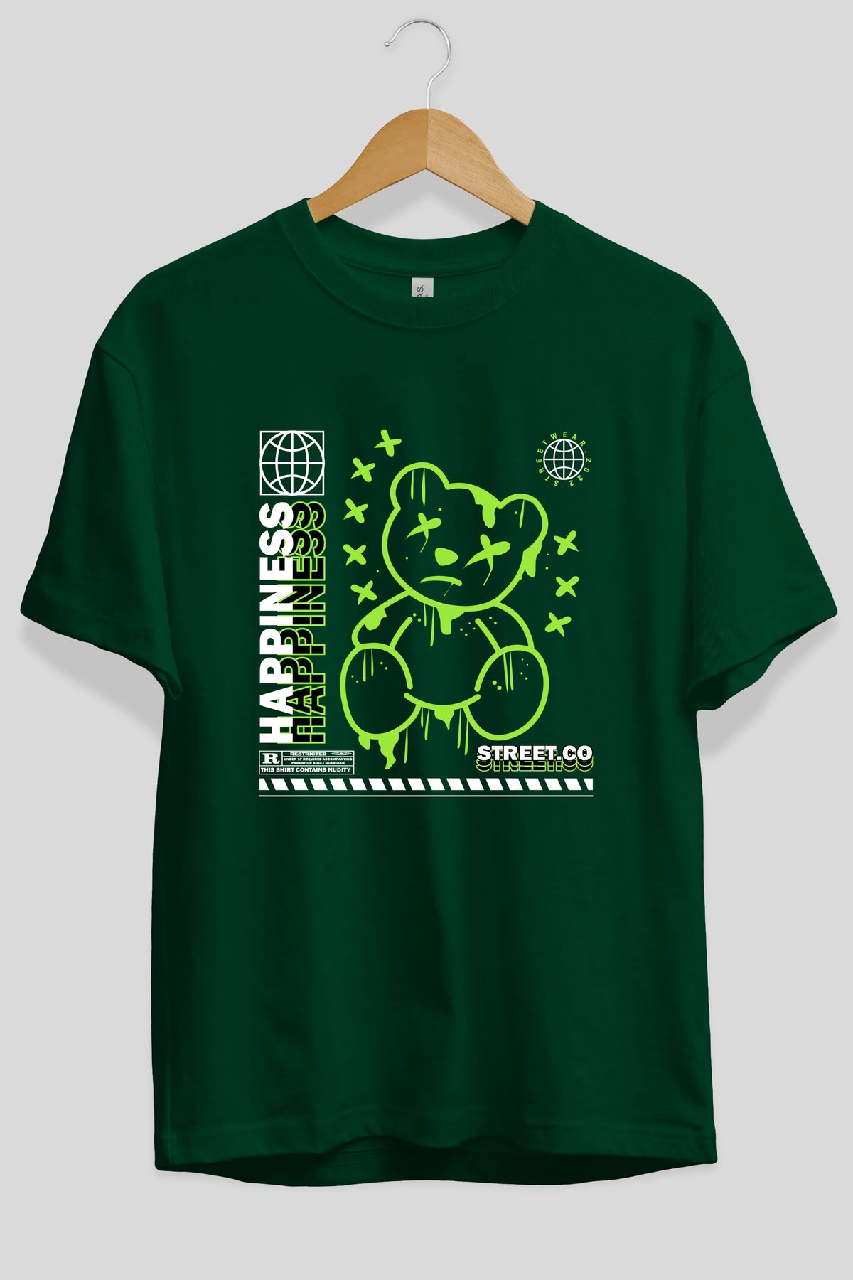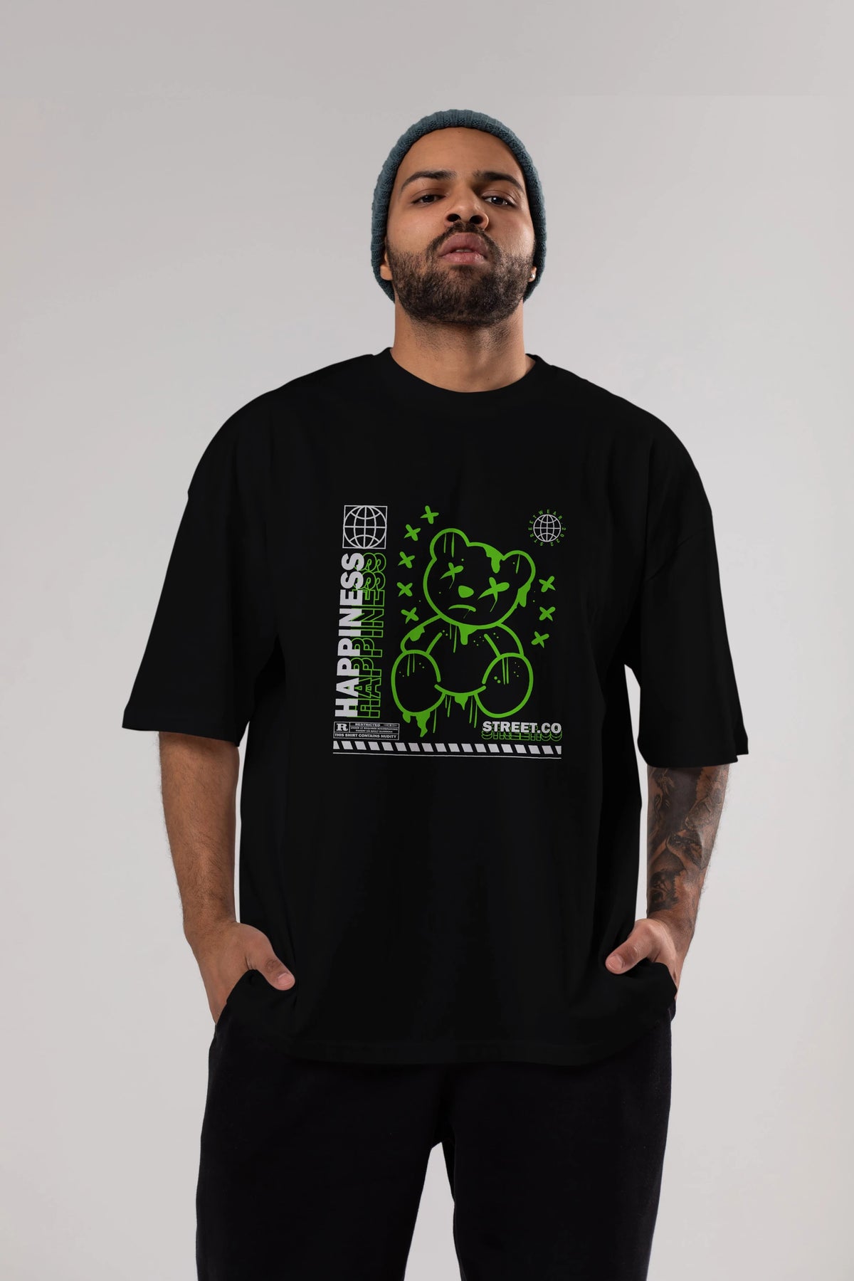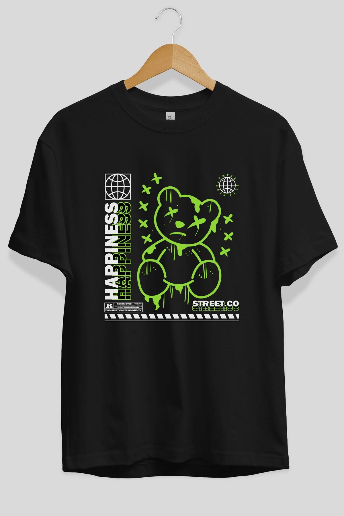 Happiness Bear 3 Ön Baskılı Oversize t-shirt Erkek Kadın Unisex