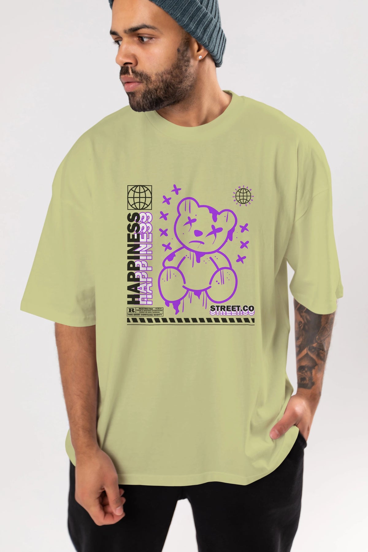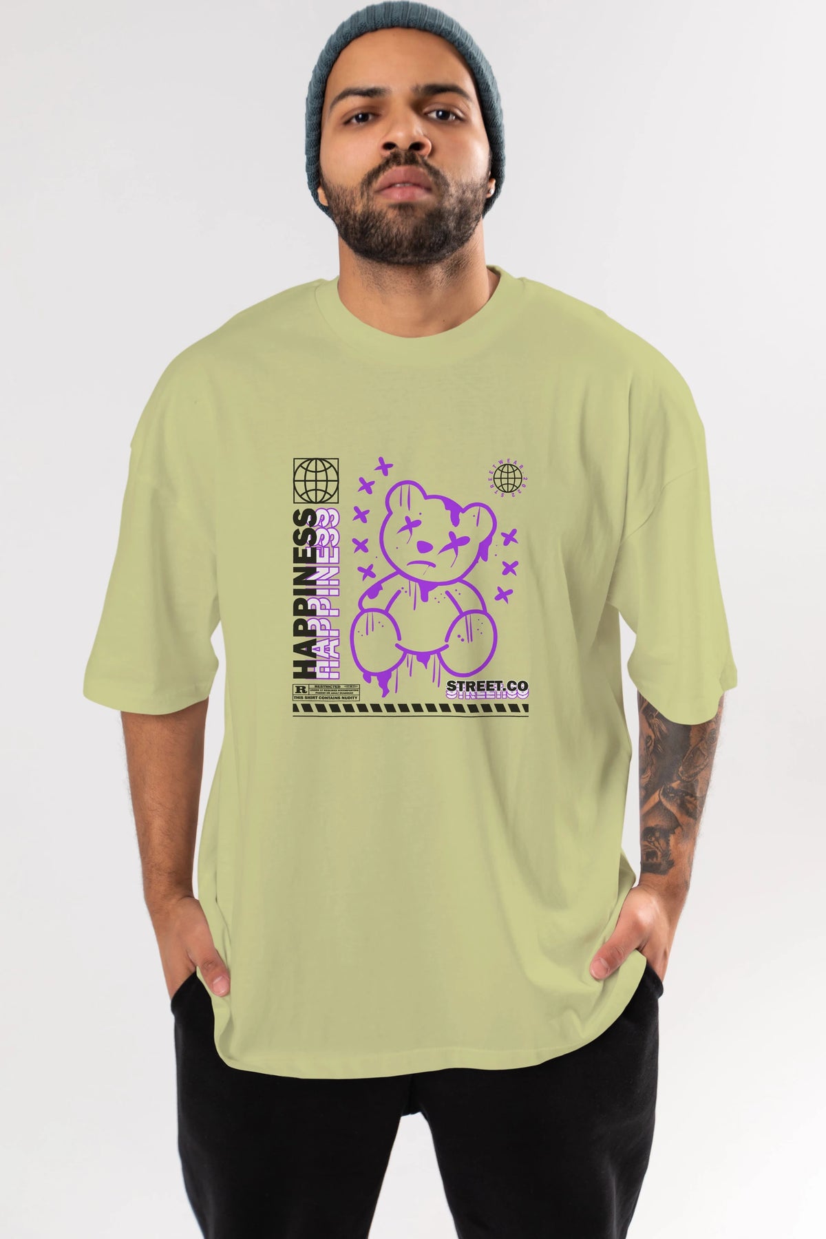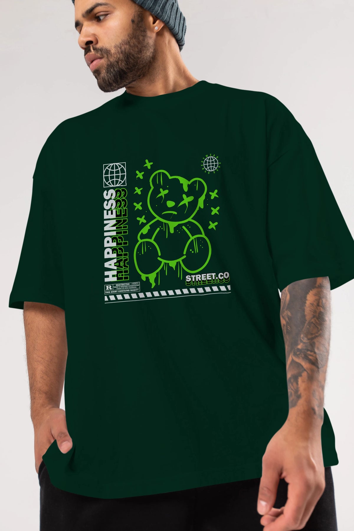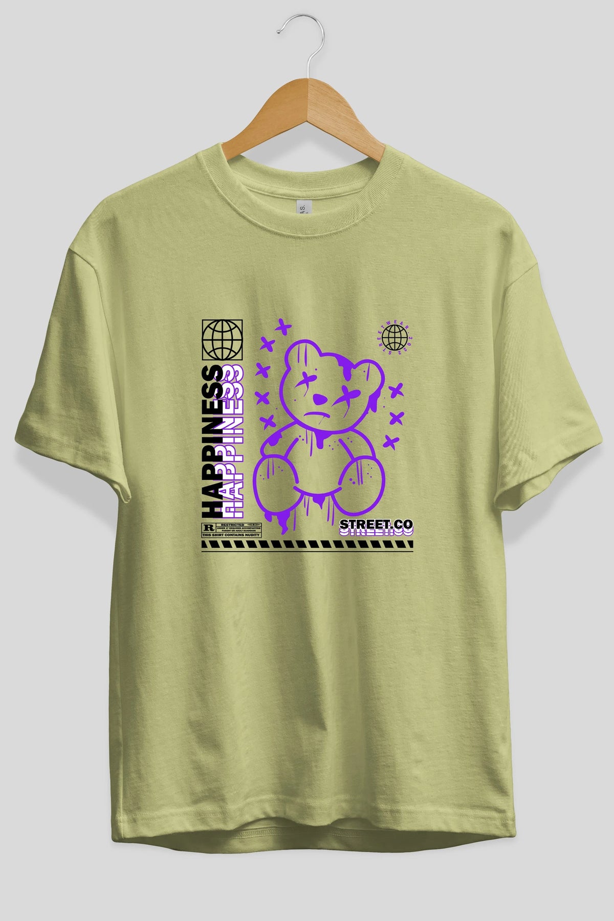 Happiness Bear 3 Ön Baskılı Oversize t-shirt Erkek Kadın Unisex