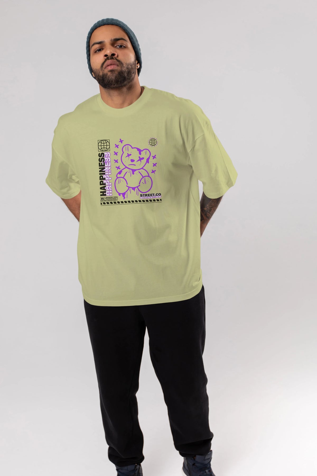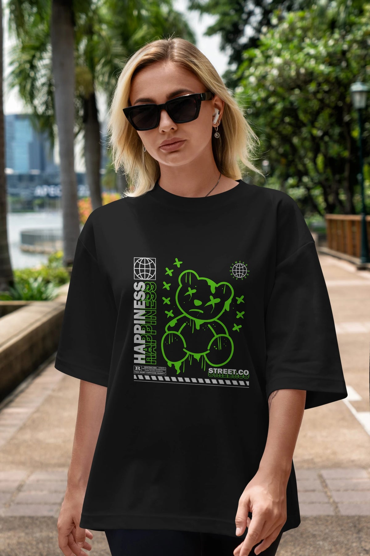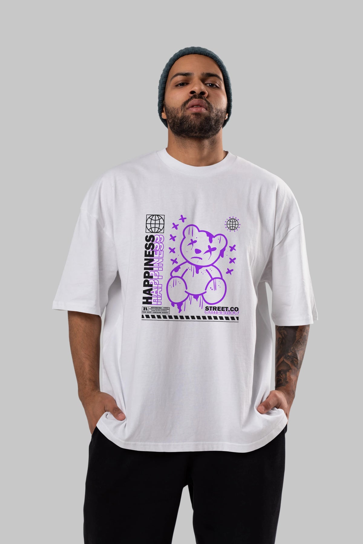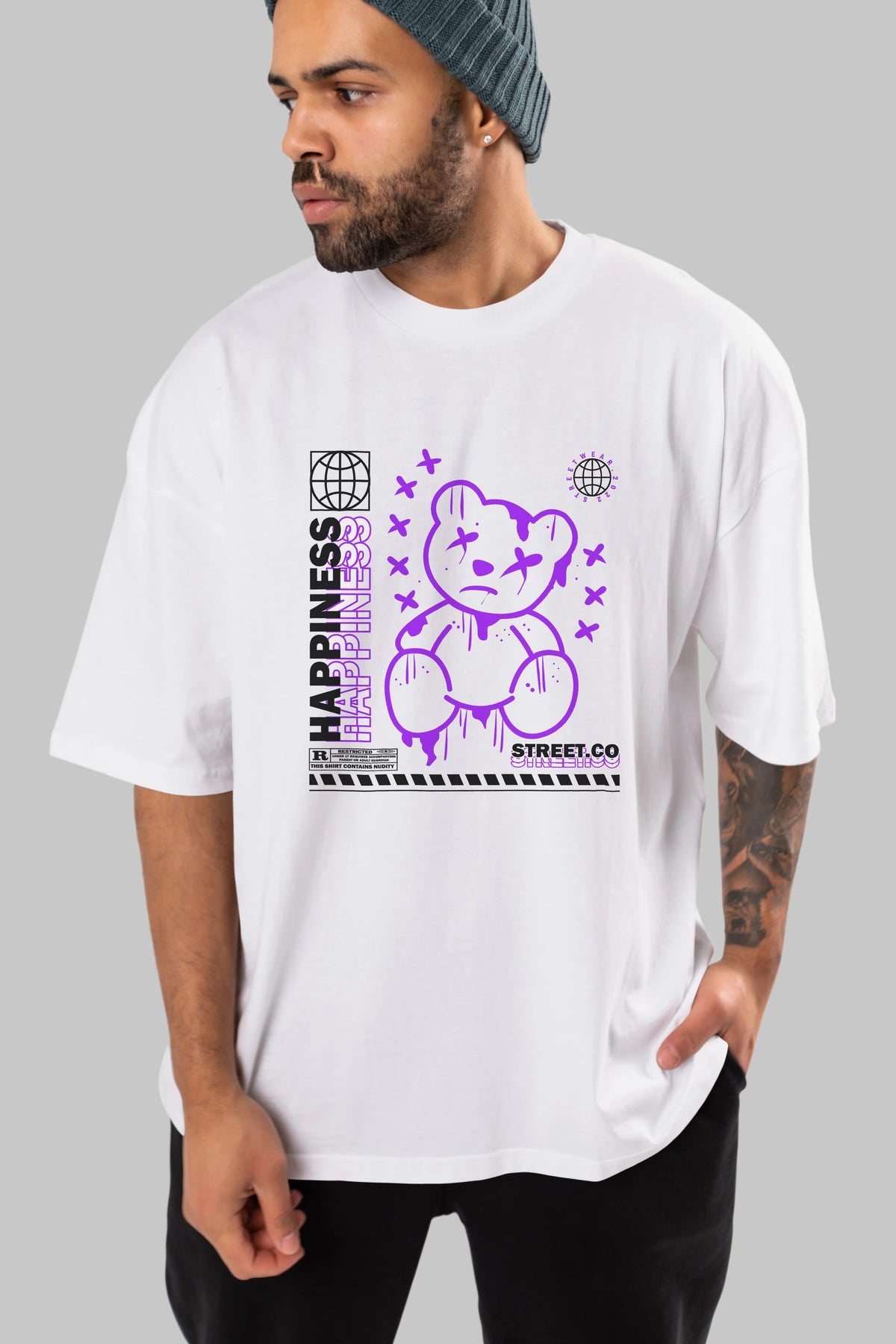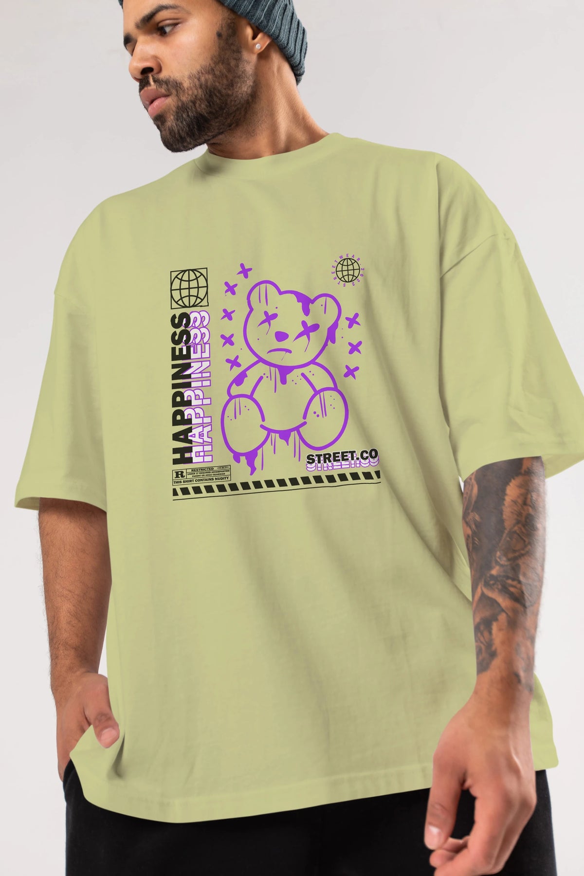 Happiness Bear 3 Ön Baskılı Oversize t-shirt Erkek Kadın Unisex