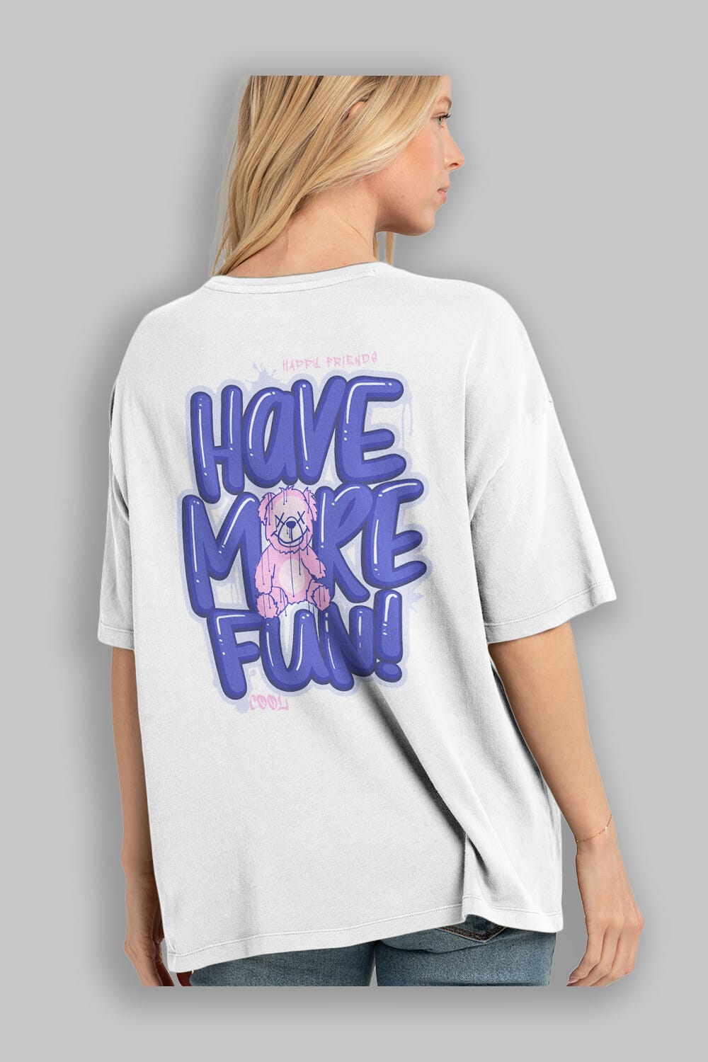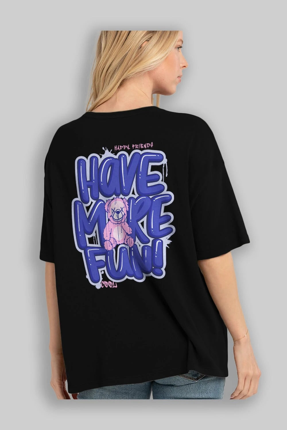 Have More Fun Bear Arka Baskılı Oversize t-shirt Erkek Kadın Unisex